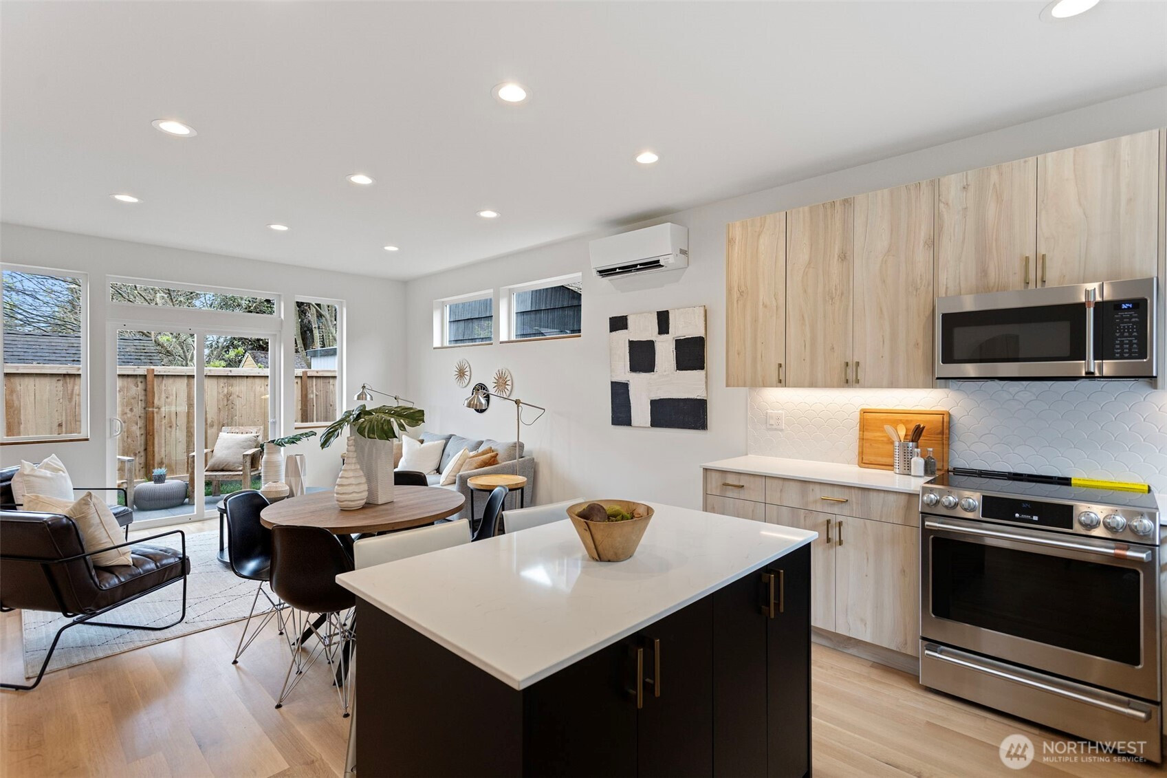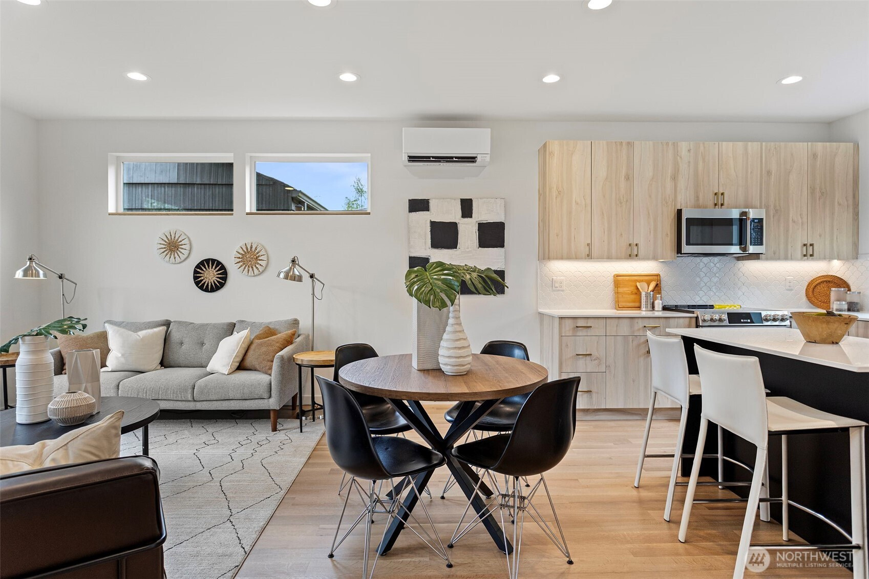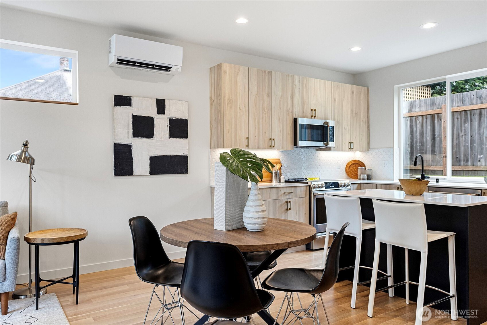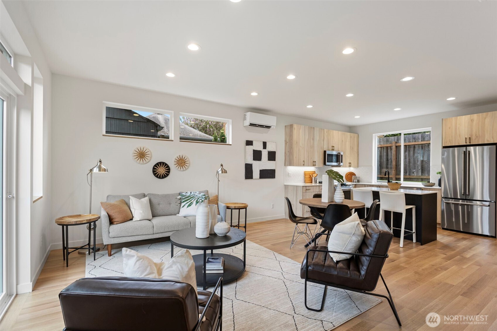(650)533-3259Modern design meets everyday functionality in this newly built home by Pivotal Homes, perfectly positioned in the heart of Loyal Heights. Offering 2 bedrooms and 2.25 baths, the layout is both efficient and inviting, with a bright, open-concept main level designed for comfortable living and easy entertaining. Vaulted ceilings and walls of full-height windows bring in abundant natural light, creating an airy feel while highlighting the warmth of real hardwood floors throughout. The kitchen is sleek and well-equipped with quality finishes, flowing seamlessly into the living and dining spaces to create a cohesive, livable environment. Upstairs, the bedrooms provide a comfortable retreat, while thoughtful features like A/C units ensure year-round comfort. Additional conveniences include dedicated parking with EV charging and a location that puts you just minutes from Ballard’s shops, restaurants, and local hotspots. A smart, stylish home that balances modern aesthetics with practical living.