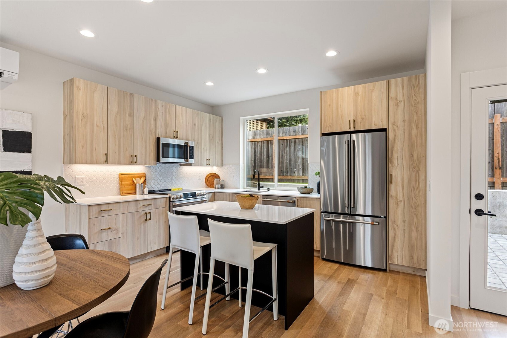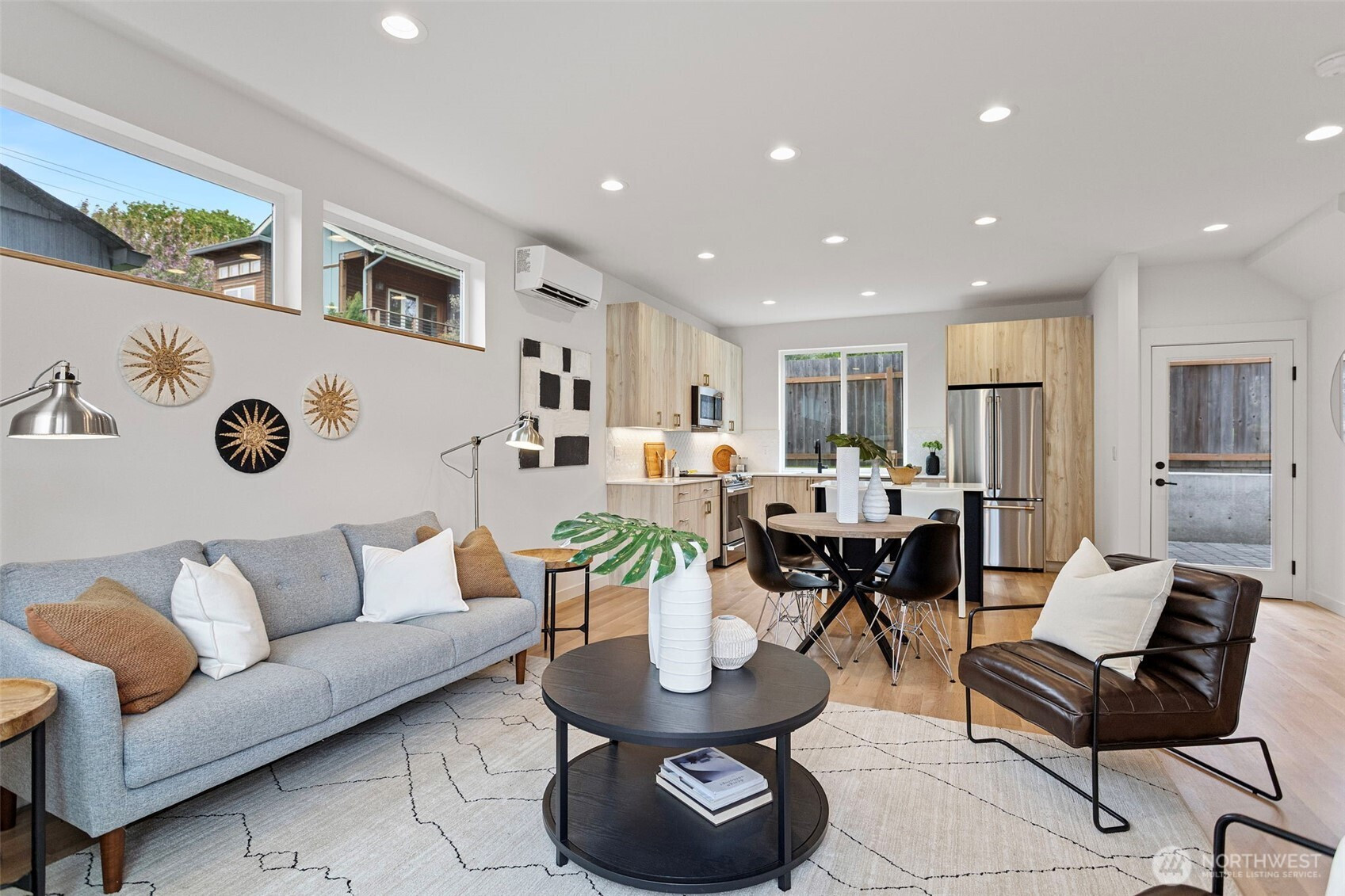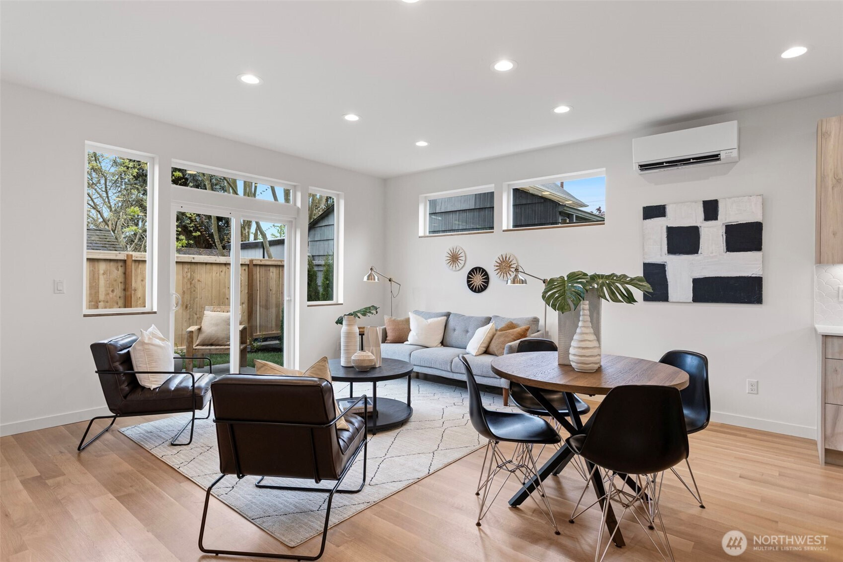 (650)533-3259Modern design meets everyday functionality in this newly built home by Pivotal Homes, perfectly positioned in the heart of Loyal Heights. Offering 2 bedrooms and 2.25 baths, the layout is both efficient and inviting, with a bright, open-concept main level designed for comfortable living and easy entertaining. Vaulted ceilings and walls of full-height windows bring in abundant natural light, creating an airy feel while highlighting the warmth of real hardwood floors throughout. The kitchen is sleek and well-equipped with quality finishes, flowing seamlessly into the living and dining spaces to create a cohesive, livable environment. Upstairs, the bedrooms provide a comfortable retreat, while thoughtful features like A/C units ensure year-round comfort. Additional conveniences include dedicated parking with EV charging and a location that puts you just minutes from Ballard’s shops, restaurants, and local hotspots. A smart, stylish home that balances modern aesthetics with practical living.