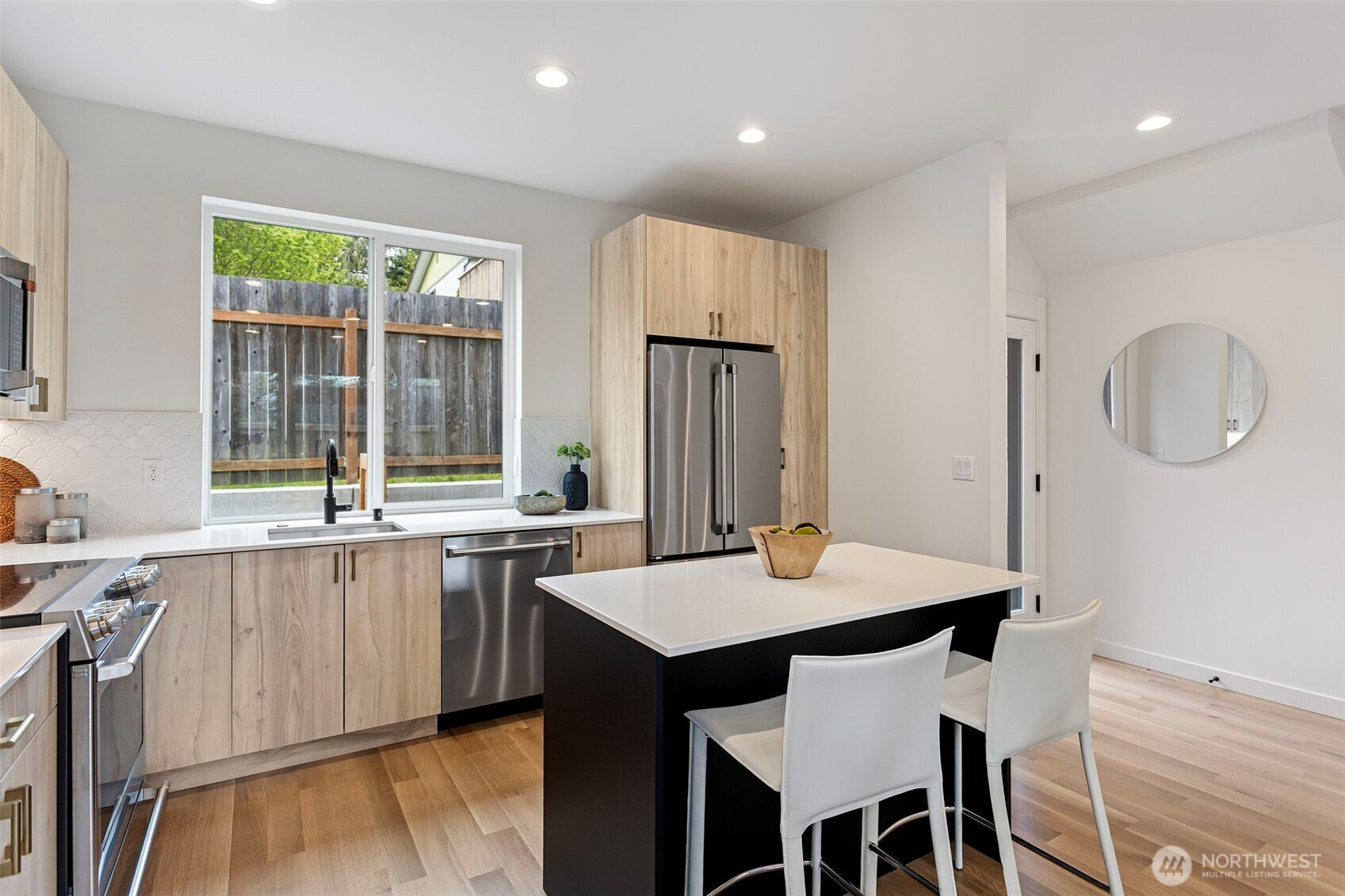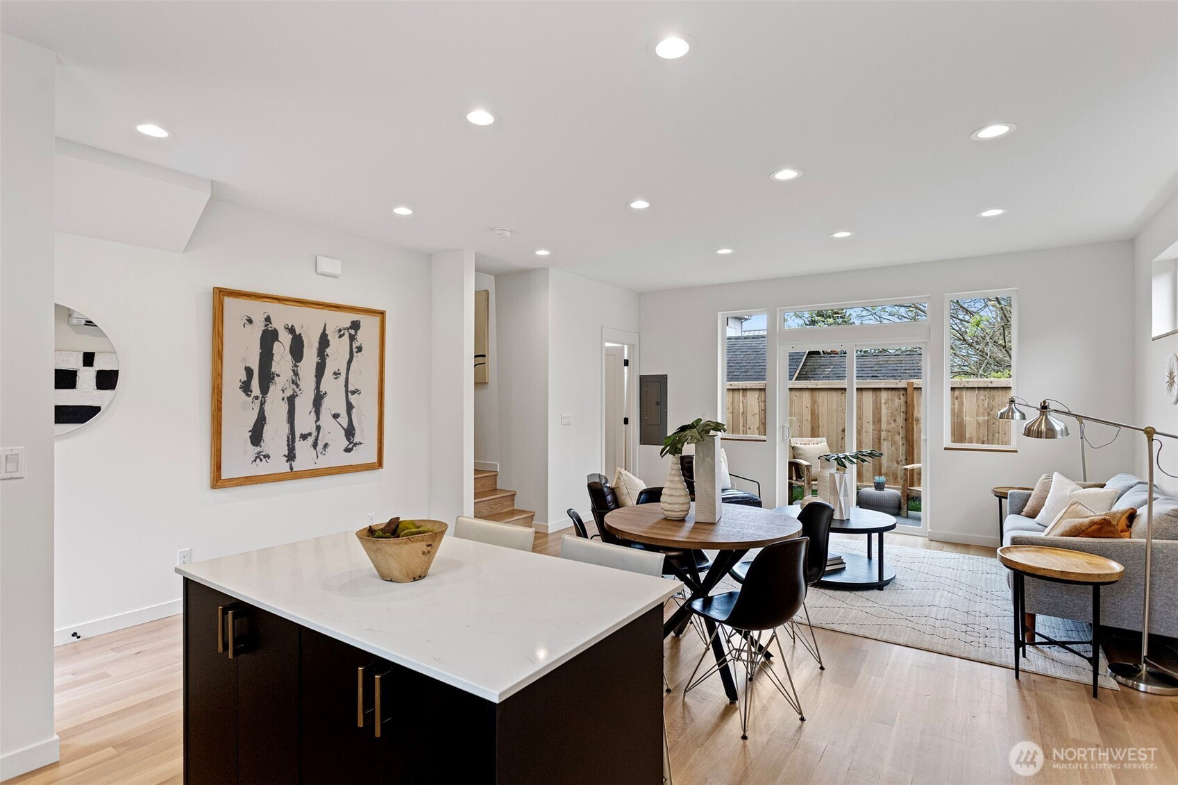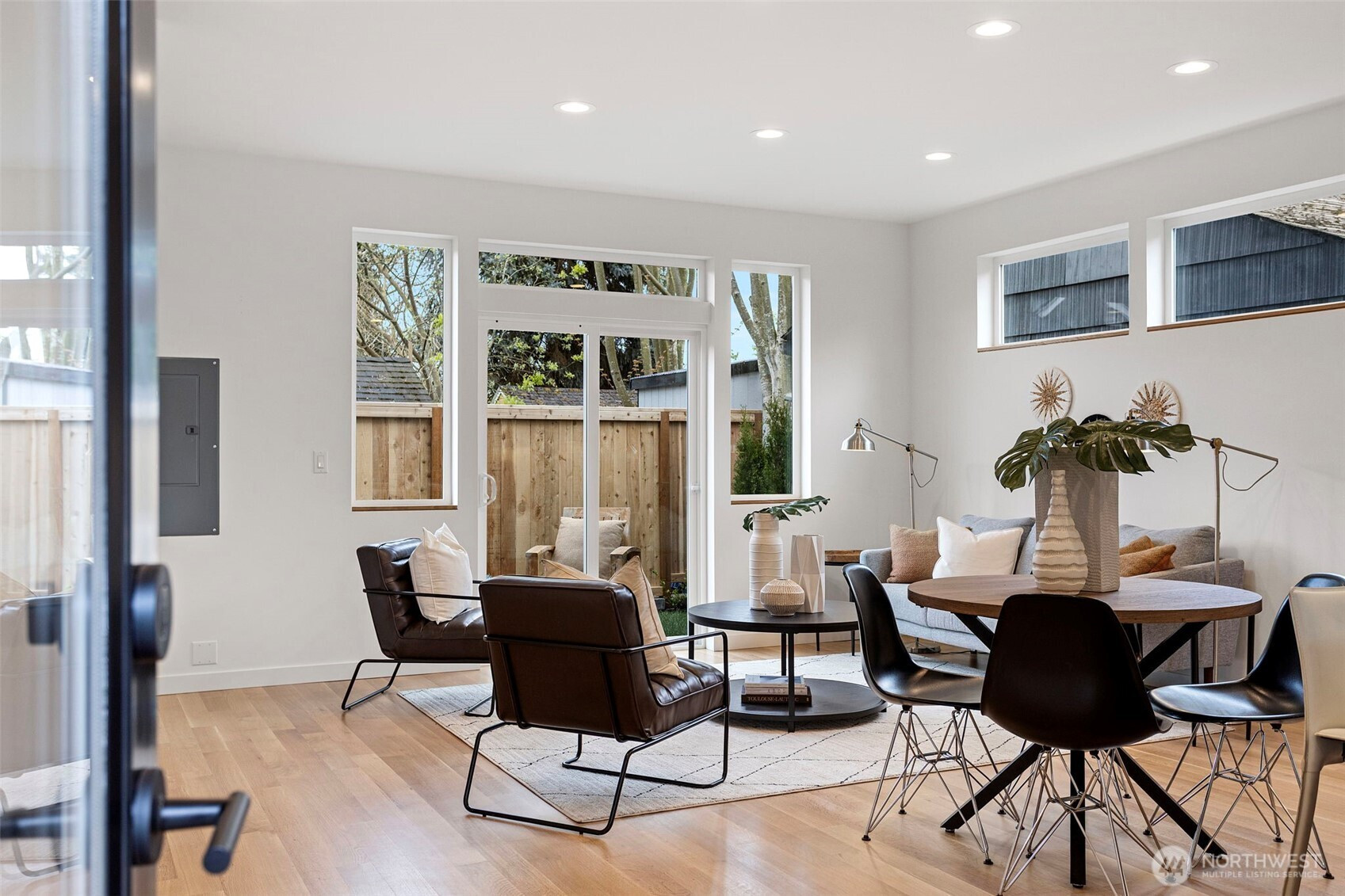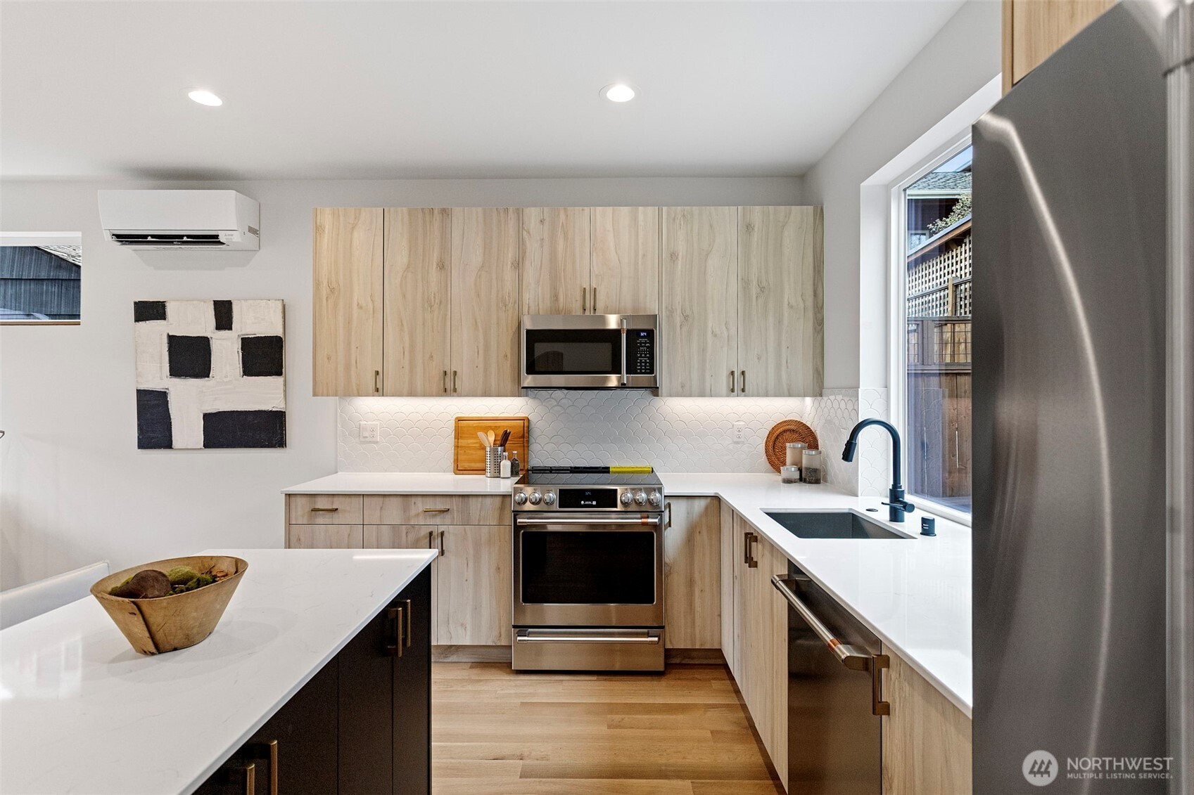 (650)533-3259Modern design meets everyday functionality in this newly built home by Pivotal Homes, perfectly positioned in the heart of Loyal Heights. Offering 2 bedrooms and 2.25 baths, the layout is both efficient and inviting, with a bright, open-concept main level designed for comfortable living and easy entertaining. Vaulted ceilings and walls of full-height windows bring in abundant natural light, creating an airy feel while highlighting the warmth of real hardwood floors throughout. The kitchen is sleek and well-equipped with quality finishes, flowing seamlessly into the living and dining spaces to create a cohesive, livable environment. Upstairs, the bedrooms provide a comfortable retreat, while thoughtful features like A/C units ensure year-round comfort. Additional conveniences include dedicated parking with EV charging and a location that puts you just minutes from Ballard’s shops, restaurants, and local hotspots. A smart, stylish home that balances modern aesthetics with practical living.