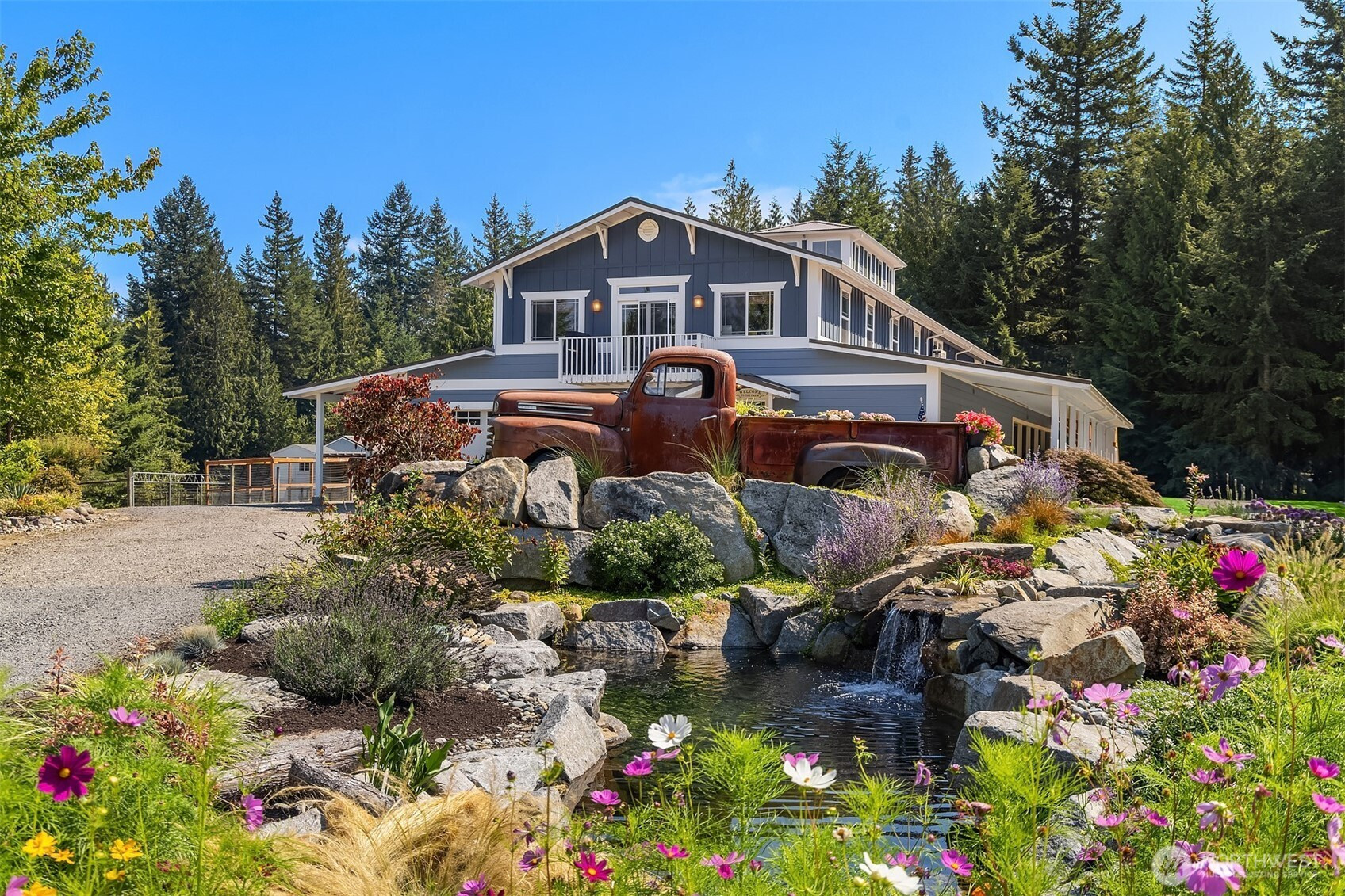 (650)533-3259Some farms speak to your soul - their images linger deep within you as if you've lived there many lifetimes ago. It's all so familiar - a beautiful wrought iron gate opens to a sanctuary where you can unplug and reconnect to what is truly important. This farm gently whispers "you're home now". Whether you dream of a thriving hobby farm for your horses, goats and chickens, or simply crave a sequestered buffer from the world, this farm delivers on 20 acres of pristine Fall City land. The spacious 5-bedroom home offers flexibility for everyone, including an entry level guest ensuite and a generous bonus room on the main level for fun game nights! All features have been lovingly updated with finishes that align perfectly with the balance of the farm. After a day in the garden, relax by the charming vintage truck water feature or watch the sun go down from the unique clerestory lookout eagles nest room. This estate is fully equipped for your passions, featuring a massive garage with workshop space, a chicken coop, barn, additional stalls, and even a treehouse. Enjoy total rural seclusion without sacrificing access - you're just minutes away from Fall City or Snoqualmie and a quick jaunt to I-90. 6 stall barn permit in place and ready to go with the county. Pre-inspected for peace of mind and award-winning Snoqualmie Valley School District.