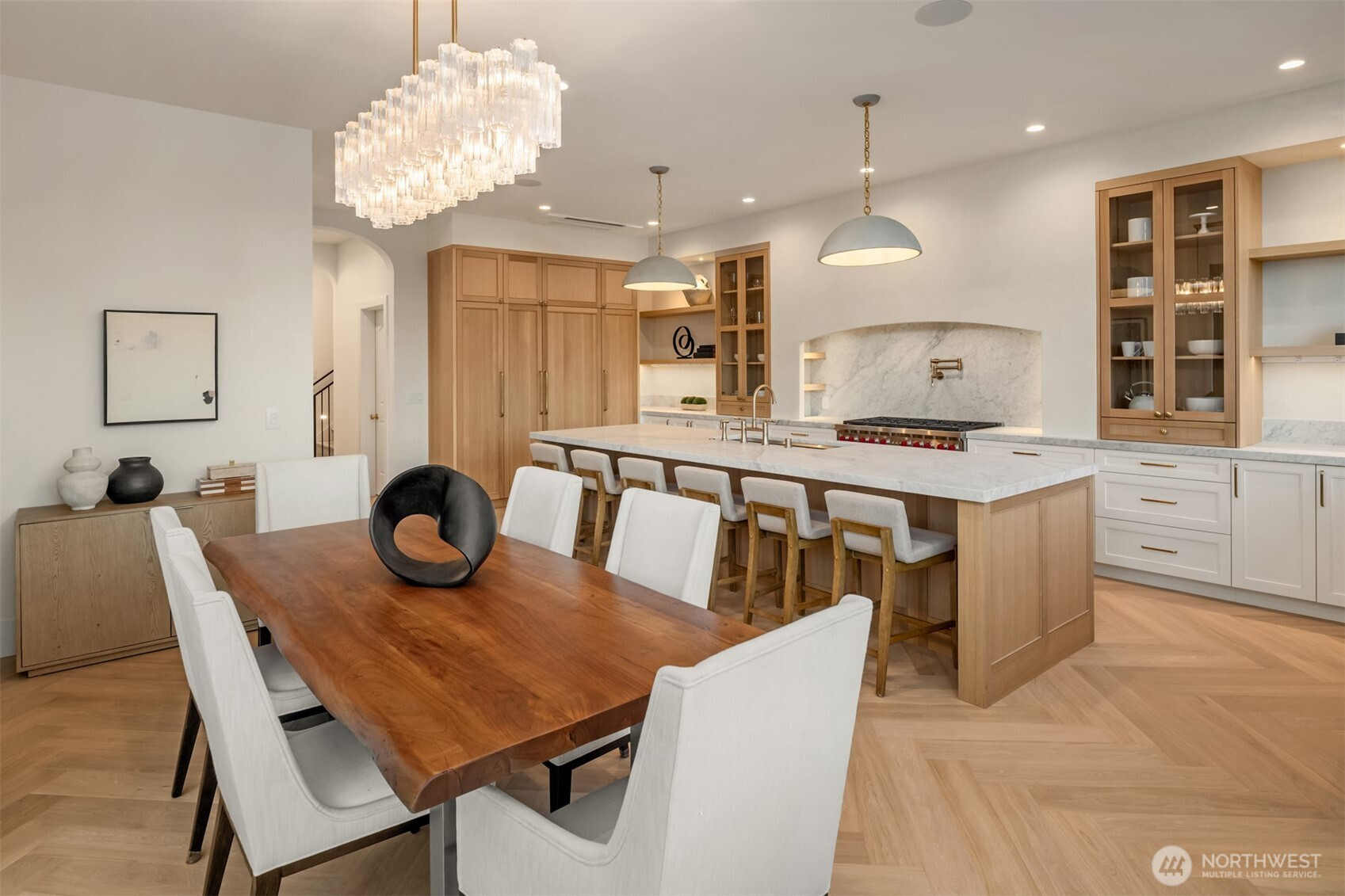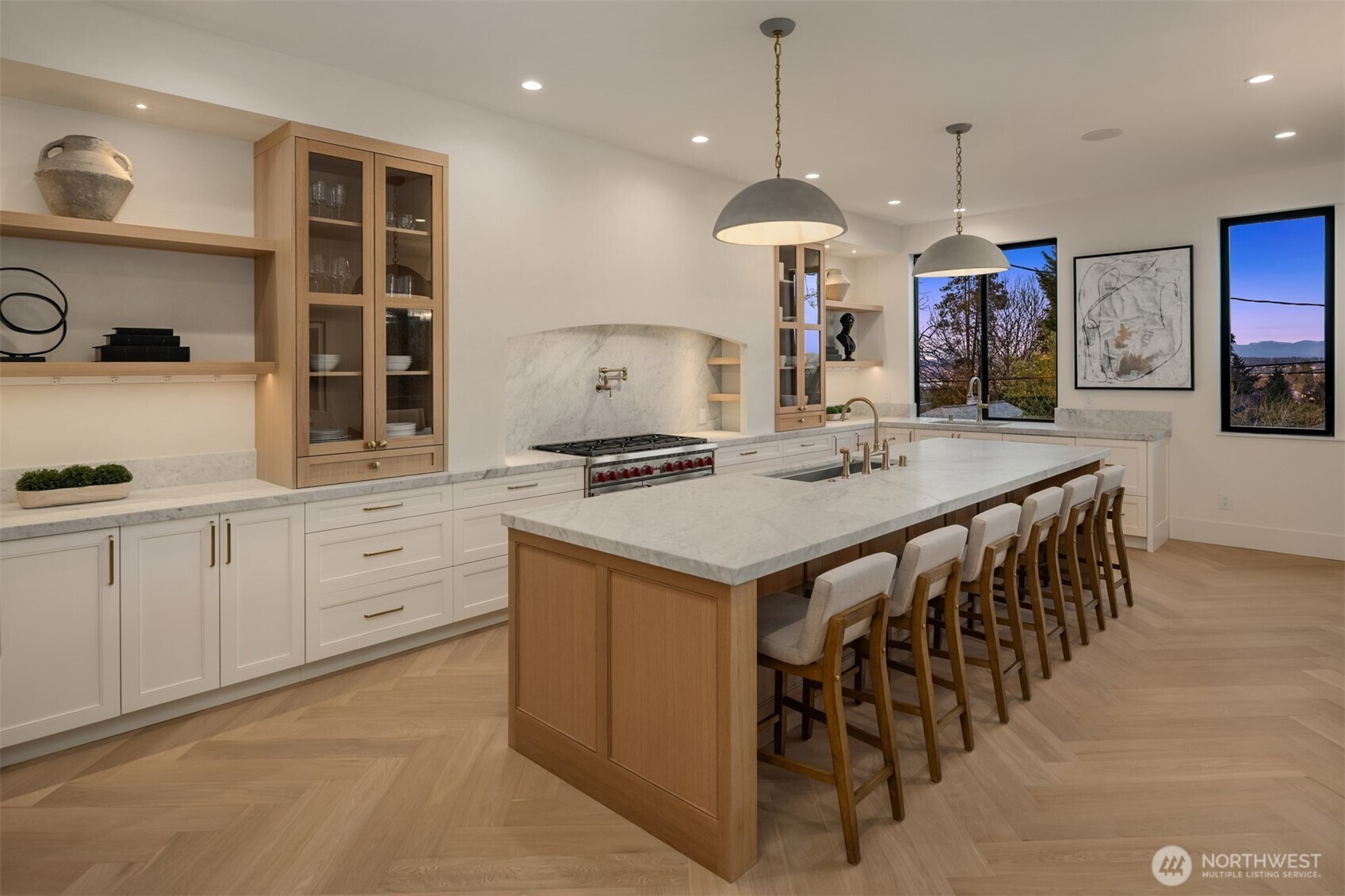 (650)533-3259Exceptional European-inspired design + timeless craftsmanship highlight this new 5BR build in North Capitol Hill. Desirable location on a tree-lined street with residences of architectural distinction. Views of Lake Washington + Cascades add drama to captivating interior spaces that feature 10-ft. ceilings. High-end custom finishes throughout with impeccable attention to detail. Herringbone-patterned hardwoods + arched passageways feature as curated design elements. Chef’s kitchen boasts integrated best-in-class appliances by Wolf, Liebherr, Bosch + Fischer and Paykel, as well as marble surfaces. Exquisite outdoor deck + fenced yard expands entertainment options. Luxe primary suite with soaking tub, heated bath floors + expansive walk-in closet. Bright lower level includes additional living space plus full ADU with separate kitchen + bedroom. Perfect for guests or multi-generational living. Attached two-car garage with EV charger and close to best amenities of Capitol Hill.