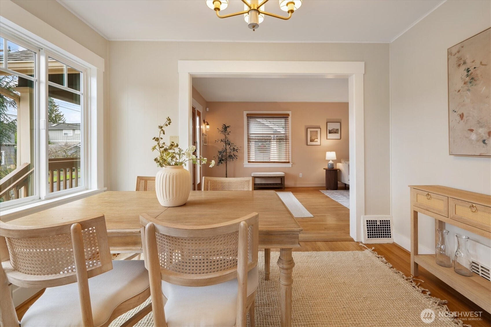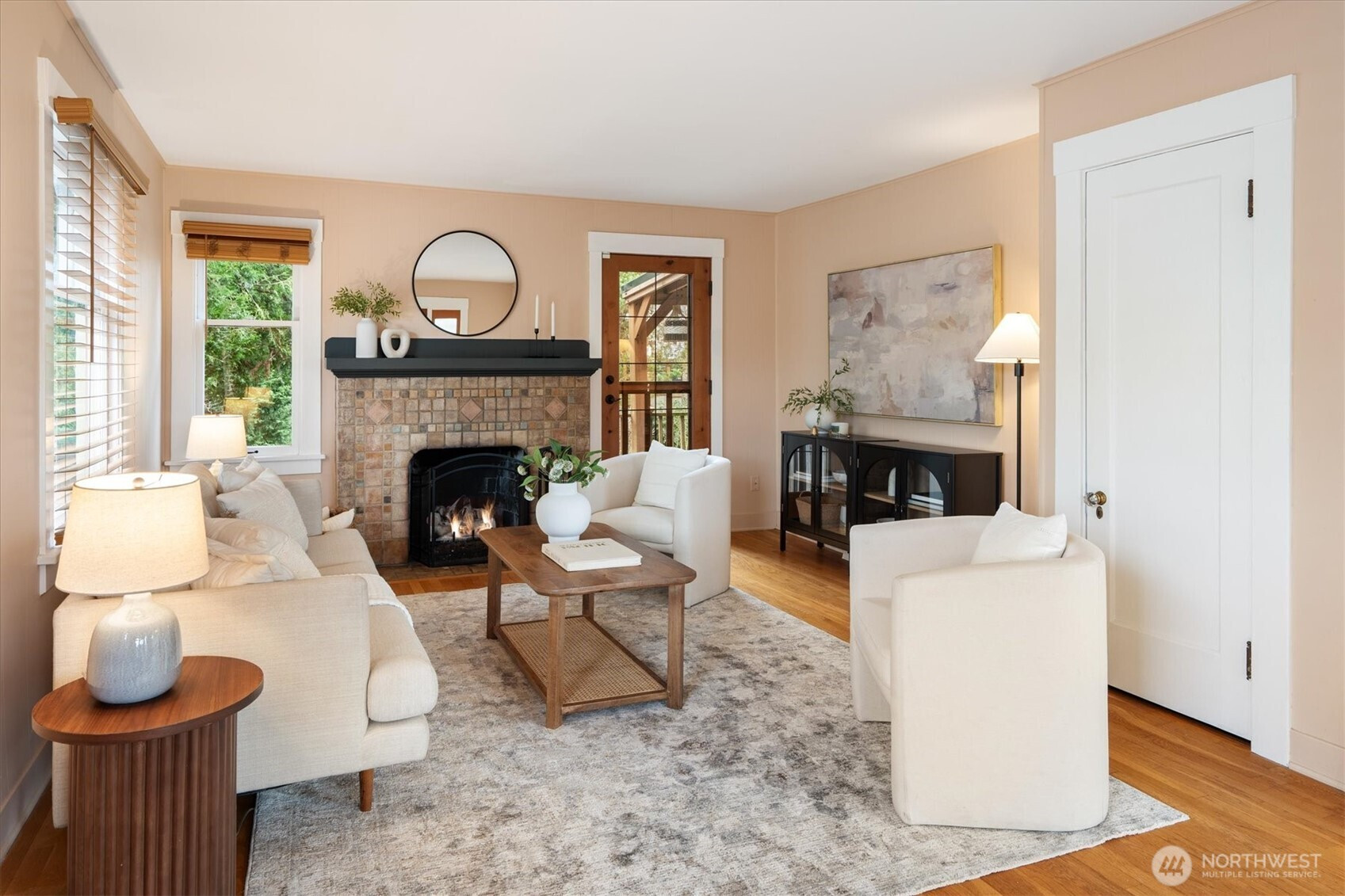 (650)533-3259Classic 1926 Craftsman charm meets modern living. Enjoy front porch vibes & elegant fenced South facing courtyard. Enter into a spacious, open living room w/ gas Batchelder fireplace & seamless flow to a fully fenced, private backyard featuring large deck & pergola—perfect for evenings outdoors. The main floor includes a sunny dining room, kitchen with updated appliances, bedroom, full bath & walk-in closet. Upstairs, two additional bedrooms include serene primary with en suite. Lower level offers a fourth bedroom (great for home office), bathroom, plus versatile bonus space for guests or game day. Thoughtful updates include solar panels, a new roof, and updated furnace, water heater, and electrical panel. Attached garage plus off-street parking. All just minutes from Green Lake and the vibrant cafés and restaurants of the Greenwood/Phinney neighborhood. Home and sewer inspections available.