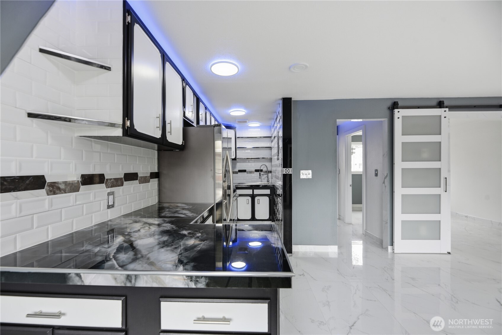 (650)533-3259Over the top, light & bright, custom craftsman one bedroom, one bath top floor corner condo. Exquisite Carrera marble flooring. In-floor radiant heat. Every surface has been meticulously updated. The kitchen features marble counters, subway tile backsplash, stainless appliances, custom lighting including soffit lighting. Large living room with beautiful contrasting marble fireplace, new windows throughout. Primary suite with barn door access to living room to highlight the expansive space, in-suite washer/dryer, primary bath with custom chrome fixtures & extensive detailed tile. Deck off entry. One car reserved parking. Easy access to shops, parks, restaurants, freeways, bus line & light rail. Quaint complex, low HOA fees, no rental cap!