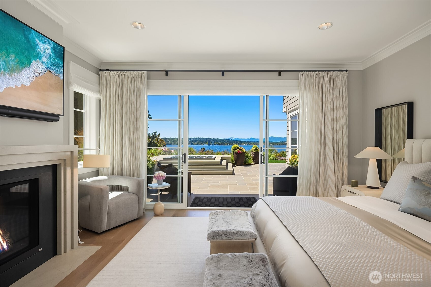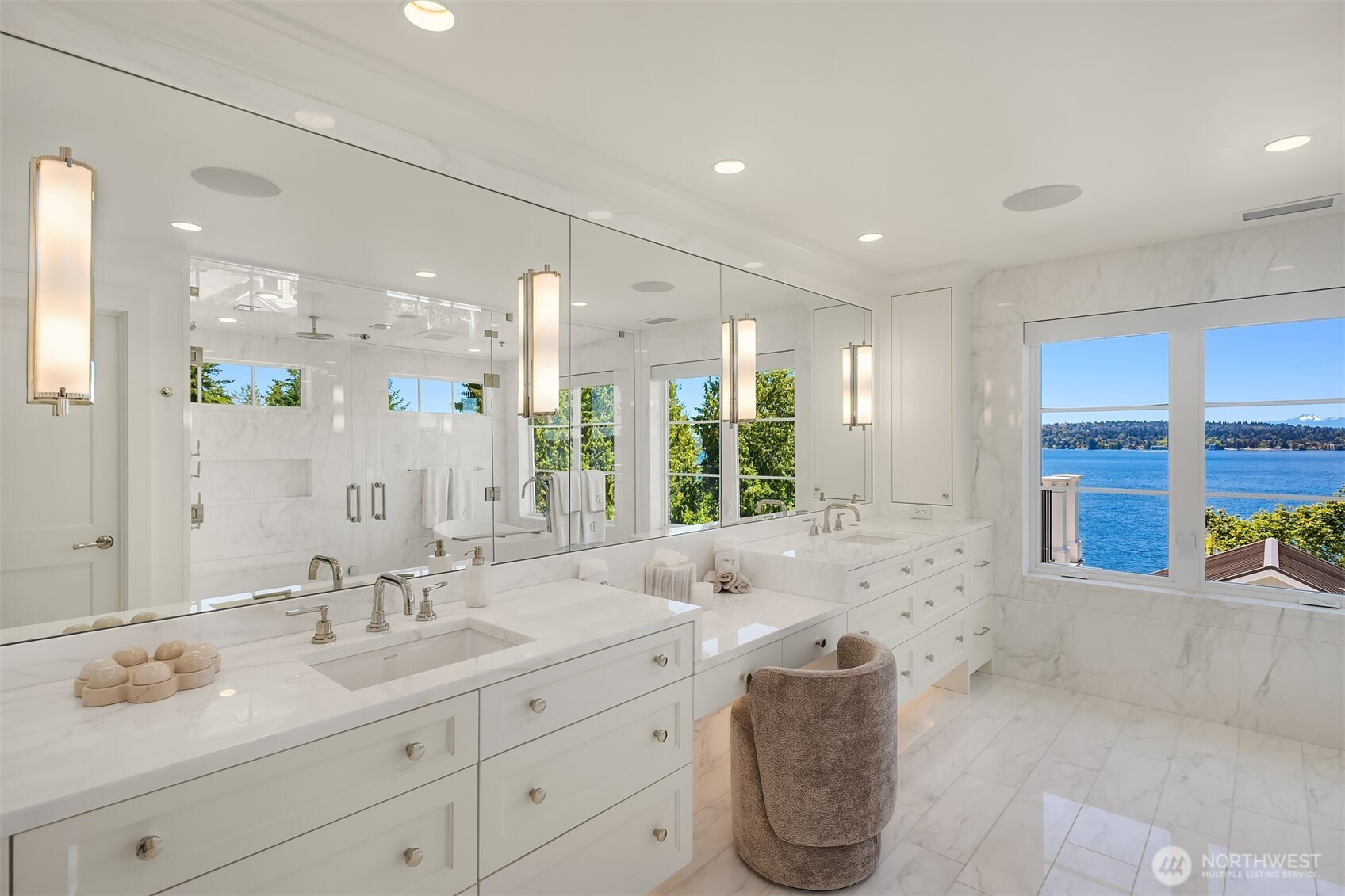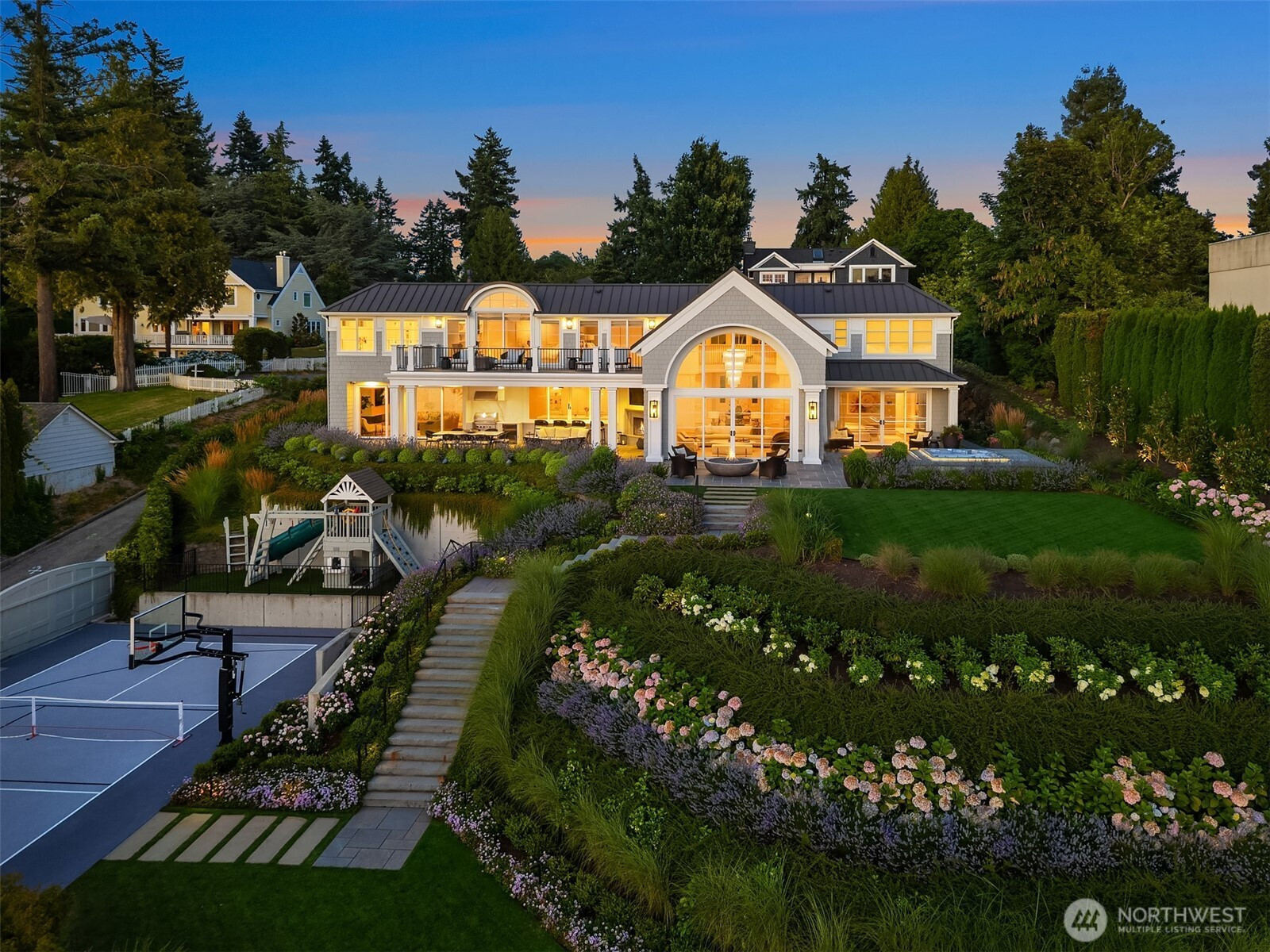 (650)533-3259Proudly perched at the end of a quiet lane on Medina’s prestigious Gold Coast, this gorgeous Hamptons style residence sits on a large nearly one-acre lot and offers sweeping views. Enjoy a front-row panorama of Seattle, Lake Washington and glorious sunsets. Inside, the home was built to perfection sparing no expense, incorporating luxurious finishes creating a classic and timeless design that has been featured in AD and Portrait magazines. Enjoy a range of amenities including a sport court/pickleball court, gym, rec room, home office and guesthouse. Lush gardens, option for a pool, additional accessory buildings & endless views create the ultimate private retreat and Medina paradise. Shared waterfront, dock and moorage.
