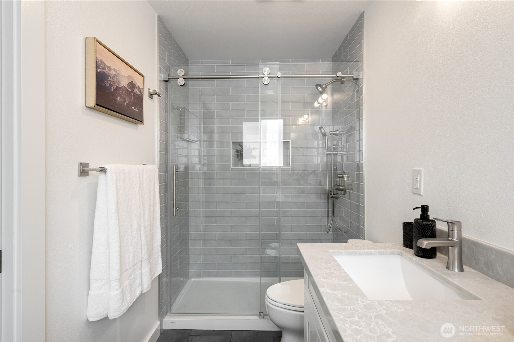 (650)533-3259Ideally located on a sunny and private corner lot in the Wedgewood neighborhood, this turnkey, contemporary craftsman styled home just received a thoughtful and comprehensive renovation. The main floor of this comfortable home offers a large updated kitchen with ample work and storage spaces, dining room, living area, powder room, coat closet and laundry room. The second level offers two bedrooms plus a large primary bedroom suite with all surfaces updated in both bathrooms + new tile and paint. The second floor also offers a large den with vaulted ceilings, sky lights and a wood burning fire place. Additional features include a covered deck off of the front of the house, fenced level yard, attached two car garage + off street parking for two more vehicles. . Oak hardwoods, A/C, insulated windows, inspected systems, vetted and ready for the next owners. Walking distance to amenities and shopping on 35th Ave NE and just blocks to View Ridge Playfield.