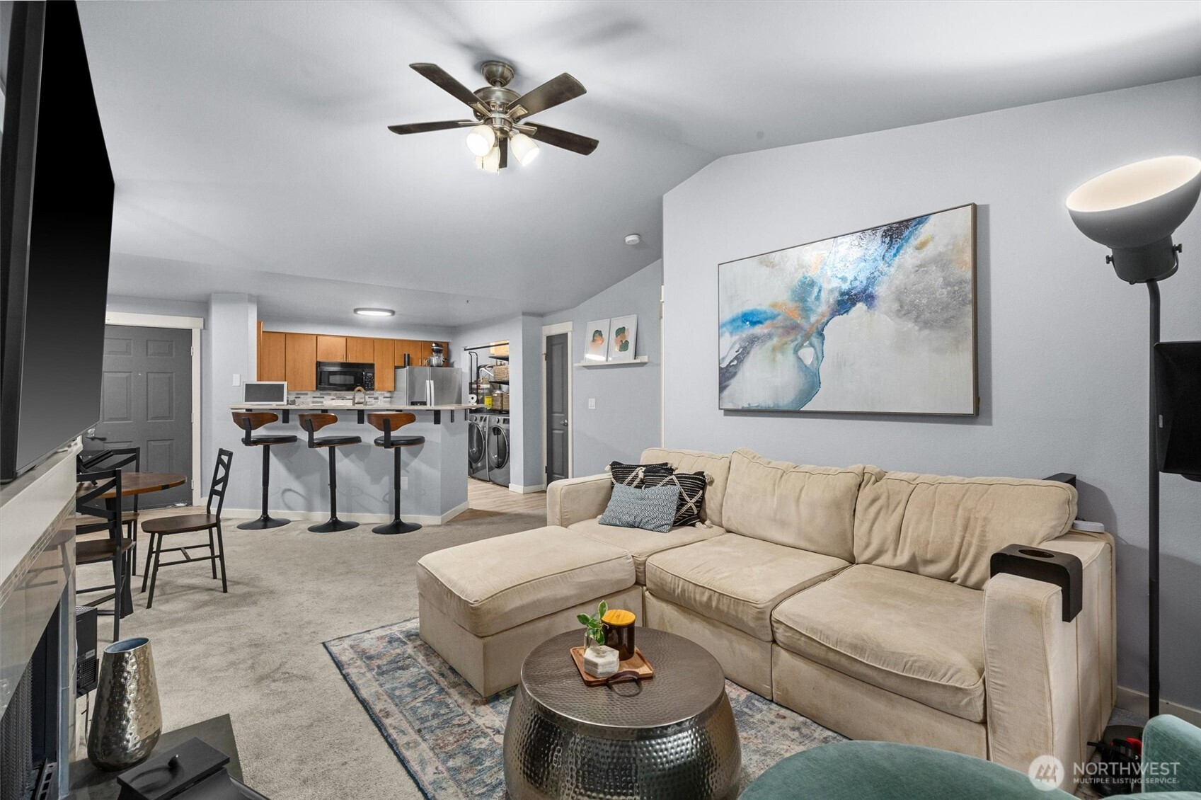 (650)533-3259Experience elevated comfort and everyday convenience in this inviting 2 bedroom, 2 bathroom home. Ideally positioned on the top floor, this residence offers added privacy, natural light, and a peaceful setting. Vaulted ceilings enhance the sense of space and openness throughout. Functional open layout with kitchen, dining, and living spaces seamlessly connected. Primary suite features a spacious ensuite with full bath, dual closets, and direct balcony access. Secondary bedroom includes a walk-in closet with nearby full bath. Recent improvements include refreshed interior paint, updated lighting, and enhanced closet organization. Full-size, updated washer and dryer located in-unit for ease of living. Cozy wood-burning fireplace and ceiling fan provide year-round comfort. Private balcony with exterior storage extends usable space. Key upgrades include a newer water heater, new windows, and exterior paint. Well-managed HOA with strong reserves and onsite maintenance. Two dedicated parking spaces add exceptional convenience. Community amenities include pool, spa, fitness center, garden space, and clubhouse. Rental cap not met. Close to local parks, trails, and outdoor recreation, with easy access to Burke-Gilman, dining, cafes, and shopping. Convenient commute options to UW Bothell and surrounding areas with nearby park & ride.