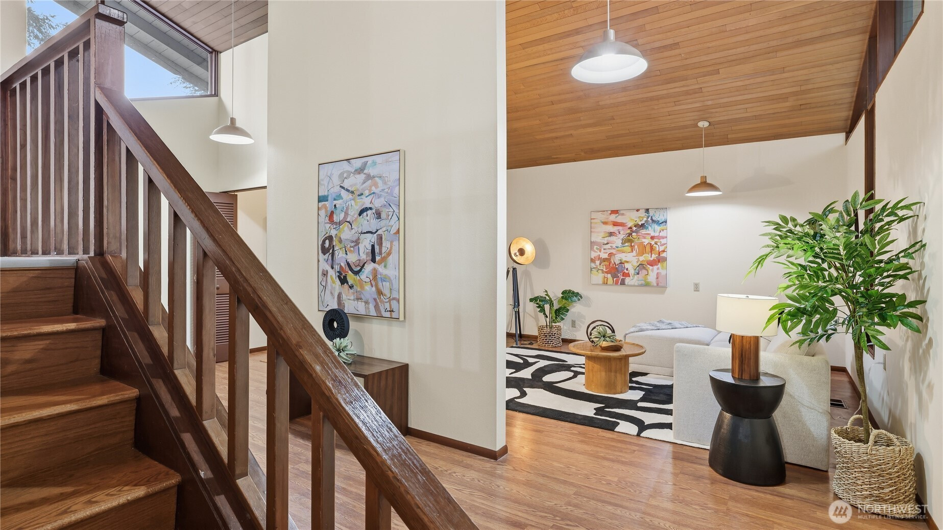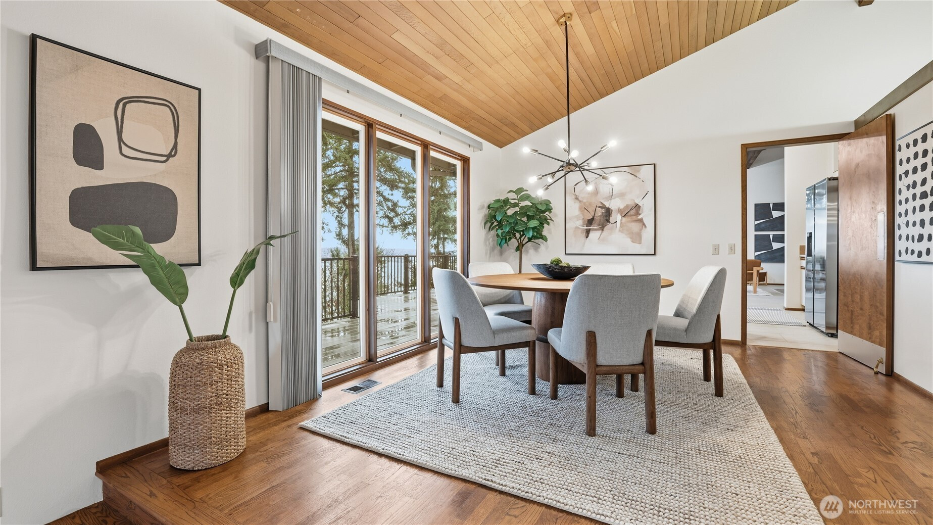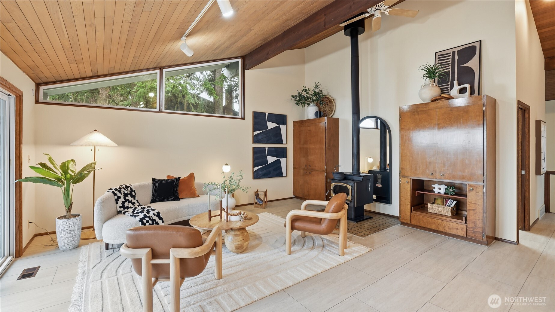 (650)533-3259Discover this timeless mid-century gem by Leo Fisher, a true embodiment of classic Pacific NW living. Perched to showcase sweeping views of Lake Washington, Mt. Rainier, Cascade & beyond from ALL rooms on the main level. Open floor plan seamlessly connects Living, Dining, Kitchen & Family rooms w/wet bar overflows to expansive deck perfect for entertaining. Flex room on split offers versatile space for recreation, play or work. All 5 bedrooms on Basement placed for privacy with access to patio w/lake view. House is freshly painted, installed with new furnace & water heater. Ample storage, 2 car garage, metal roof & wired ready for generator, this well maintained home blends charm with endless potential ready for your own personal vision.