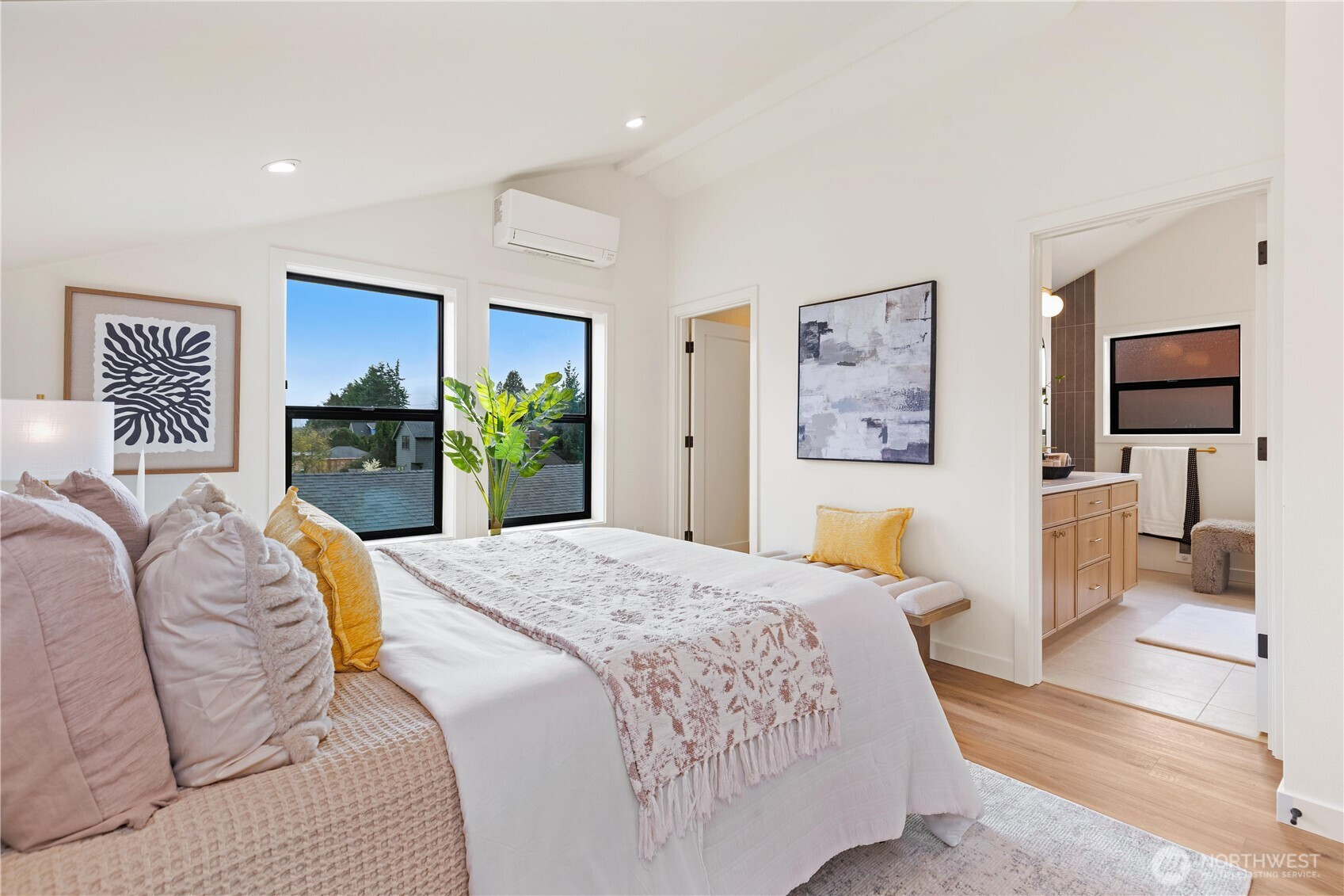 (650)533-3259High-end custom Northwest build in an ideal location just moments from Green Lake. A striking exterior sets the tone for the thoughtfully designed interior where every inch has been carefully curated and maximized for modern living. The spacious kitchen is anchored by oak cabinetry and framed by black windows that flood the space with natural light, while the exposed fir ceiling introduces warmth and architectural character that carries throughout the home. Dining seamlessly connects to the inviting living room with French doors opening to the patio and newly landscaped, usable yard—perfect for effortless indoor-outdoor living. A stylish powder room and convenient garage access complete the main level. Upstairs, a beautifully lit stairway with designer sconces and a skylight leads to the exceptional primary retreat—a true rarity. Vaulted ceilings, a generous walk-in closet, and a spa-inspired five-piece bath with double vanity and soaring ceilings create a space that feels both luxurious and serene. Two additional bedrooms and laundry on the same level provide the ideal layout. A refined custom home offering elevated design, premium finishes, and a prime location just minutes to parks, dining, shops, commuter routes, and everything Green Lake living has to offer.