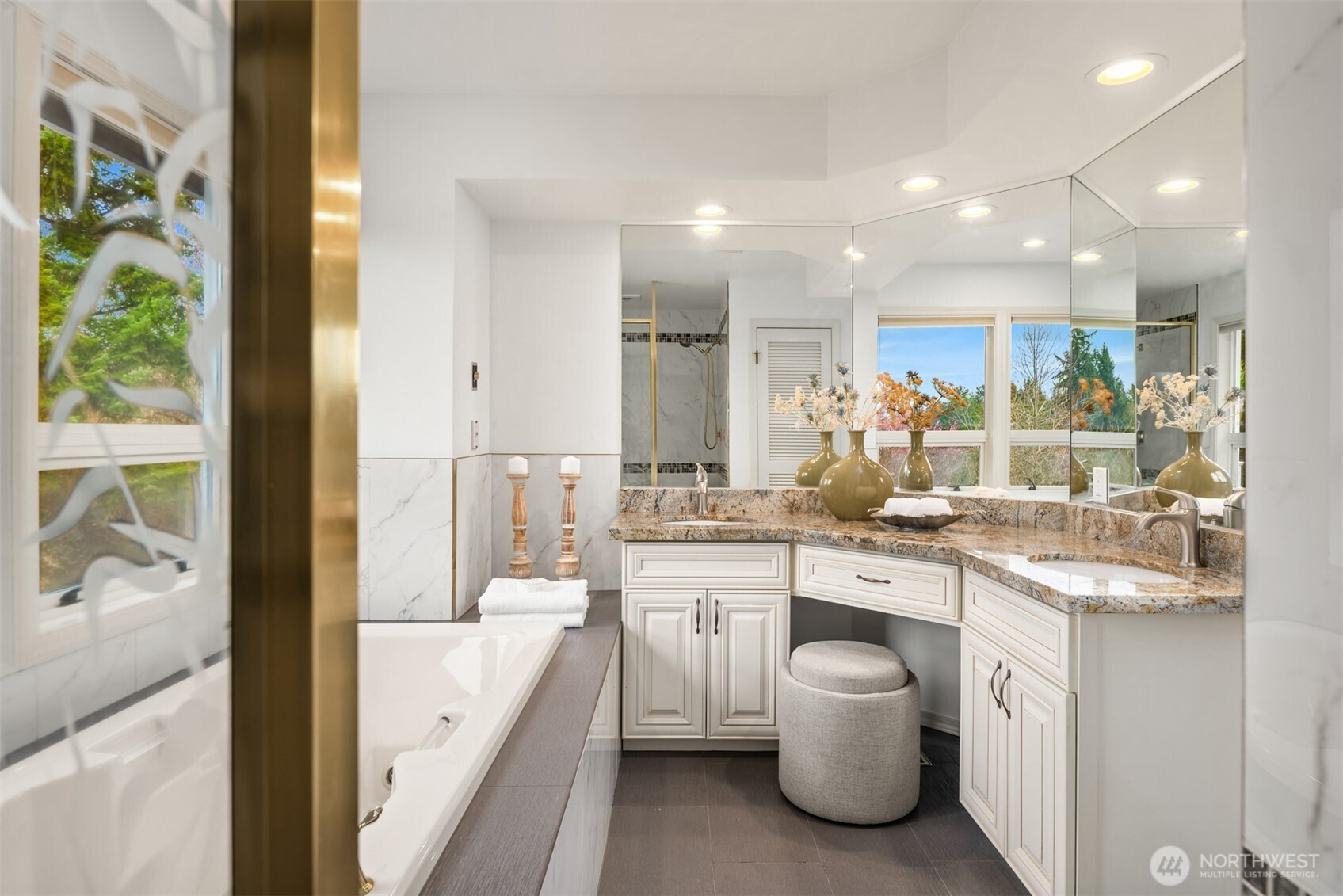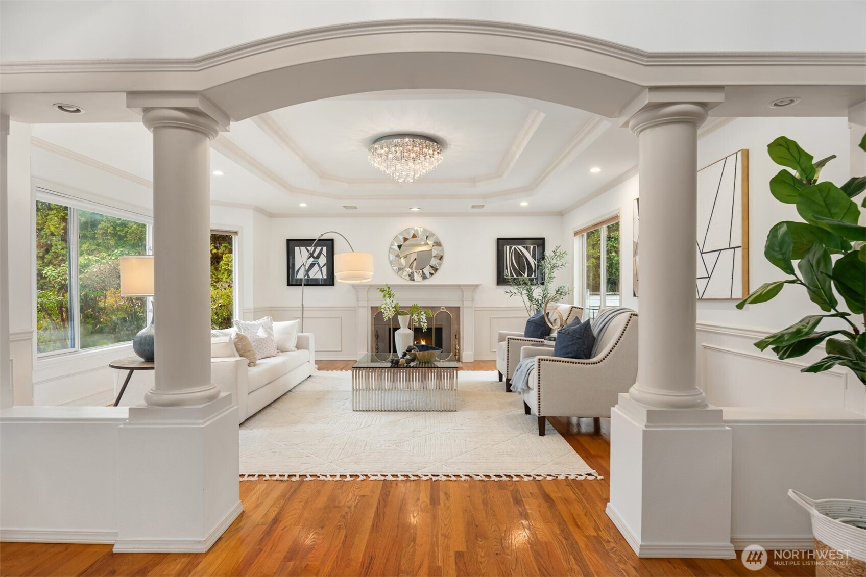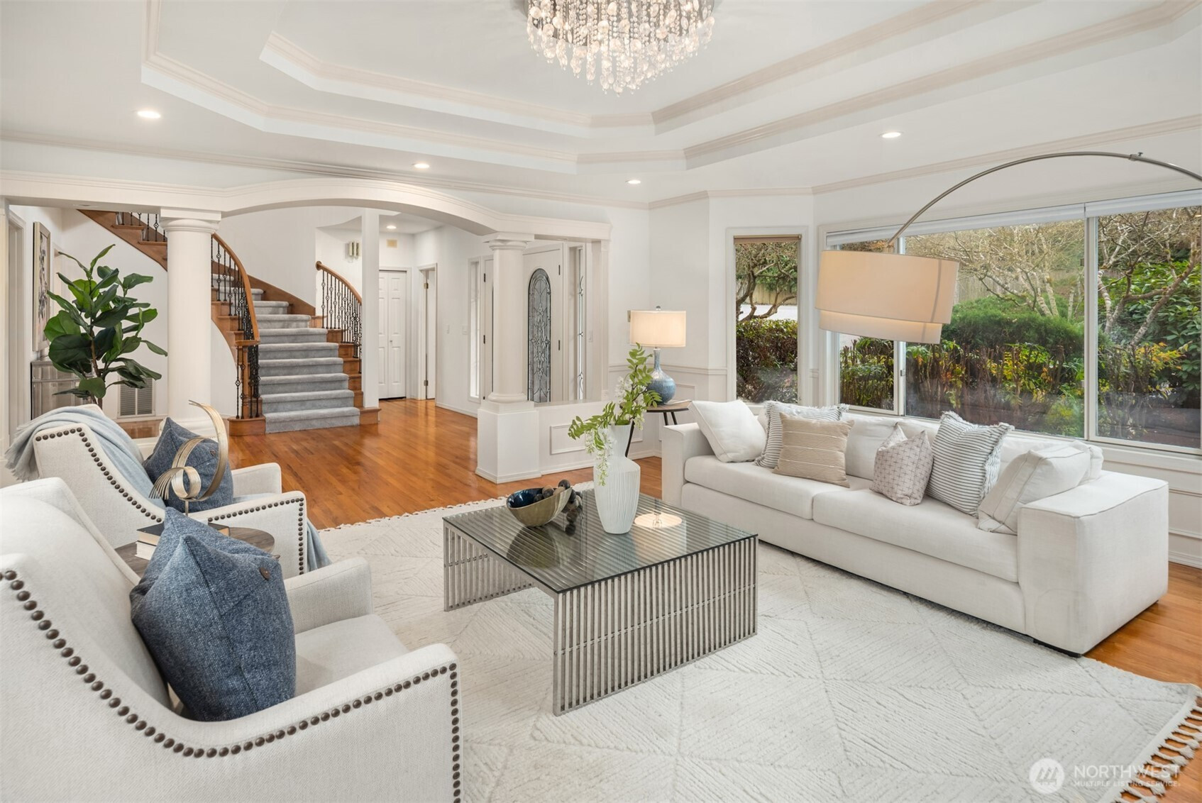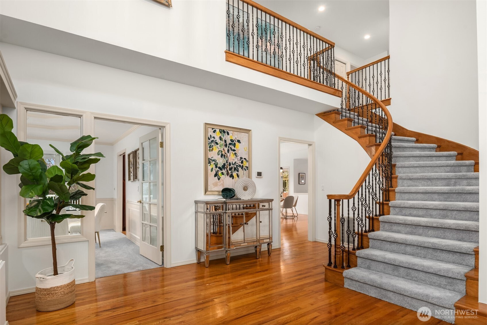 (650)533-3259Nestled in the highly sought-after Hunts Point neighborhood, this elegant 4-bedroom, 2.5-bath classic estate rests gracefully on a beautifully landscaped half-acre lot. A grand spiral driveway and mature landscaping create an impressive arrival, while a dramatic two-story foyer with soaring ceilings and a sweeping spiral staircase sets the tone for the home’s refined elegance. Filled with natural light, the residence showcases exceptional architectural details, including stately pillars, intricate millwork, and timeless craftsmanship throughout. The main level offers a sophisticated living room with rich hardwood flooring, a gourmet chef’s kitchen with an expansive island and seating area, and a spacious family room designed for effortless entertaining and everyday comfort. French doors open to an expansive deck overlooking a level, private backyard surrounded by lush landscaping—an ideal setting for gatherings or tranquil outdoor living.Upstairs, four generous bedrooms and two full baths provide comfort and privacy. The serene primary suite serves as a luxurious retreat, featuring a spa-inspired five-piece ensuite bath and generous space. Fresh interior paint and a three-car garage complete the home. Ideally located just minutes from Downtown Bellevue, Old Bellevue, parks, premier shopping and dining, major tech campuses, and top-rated schools in the Bellevue School District.