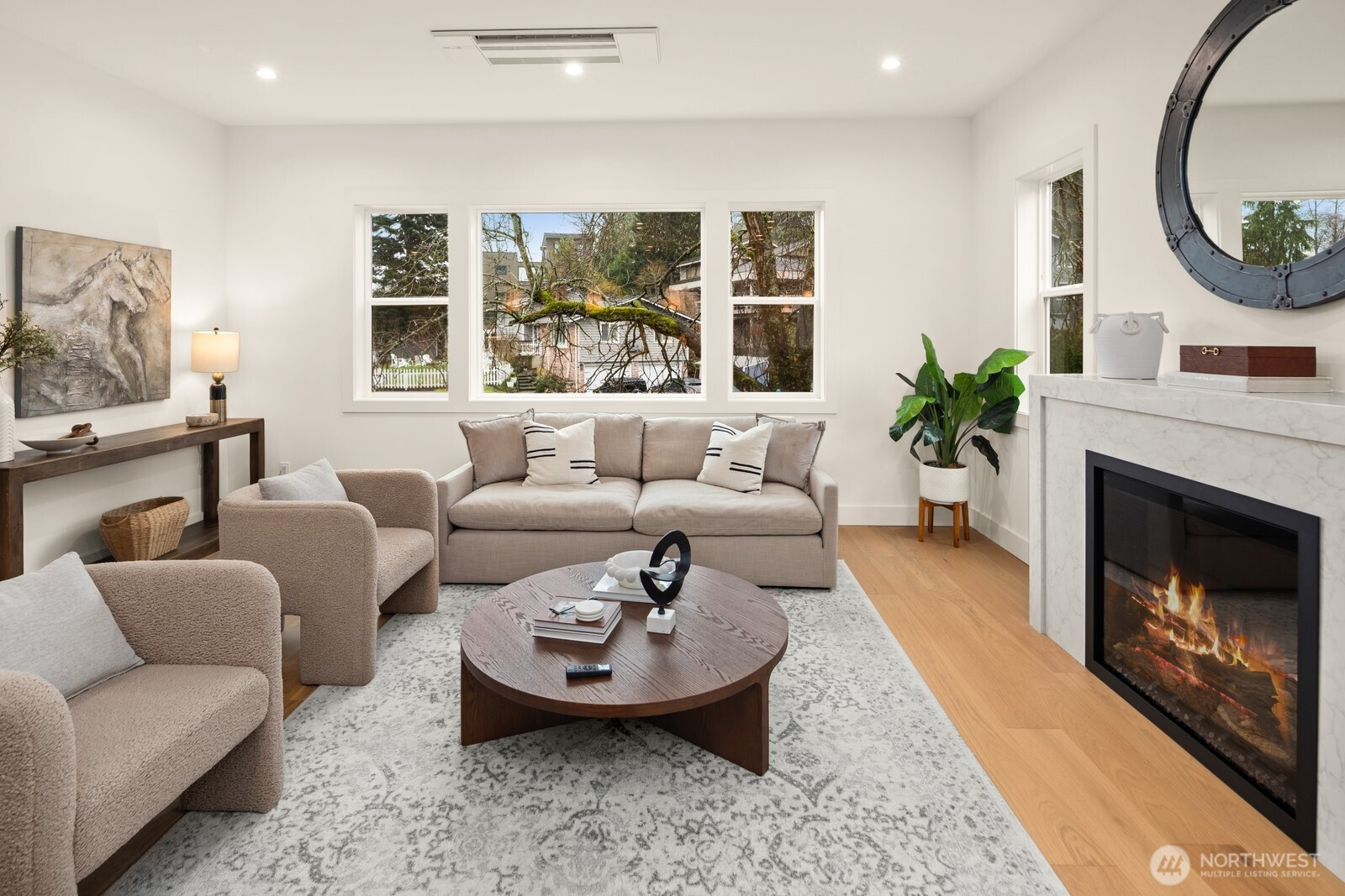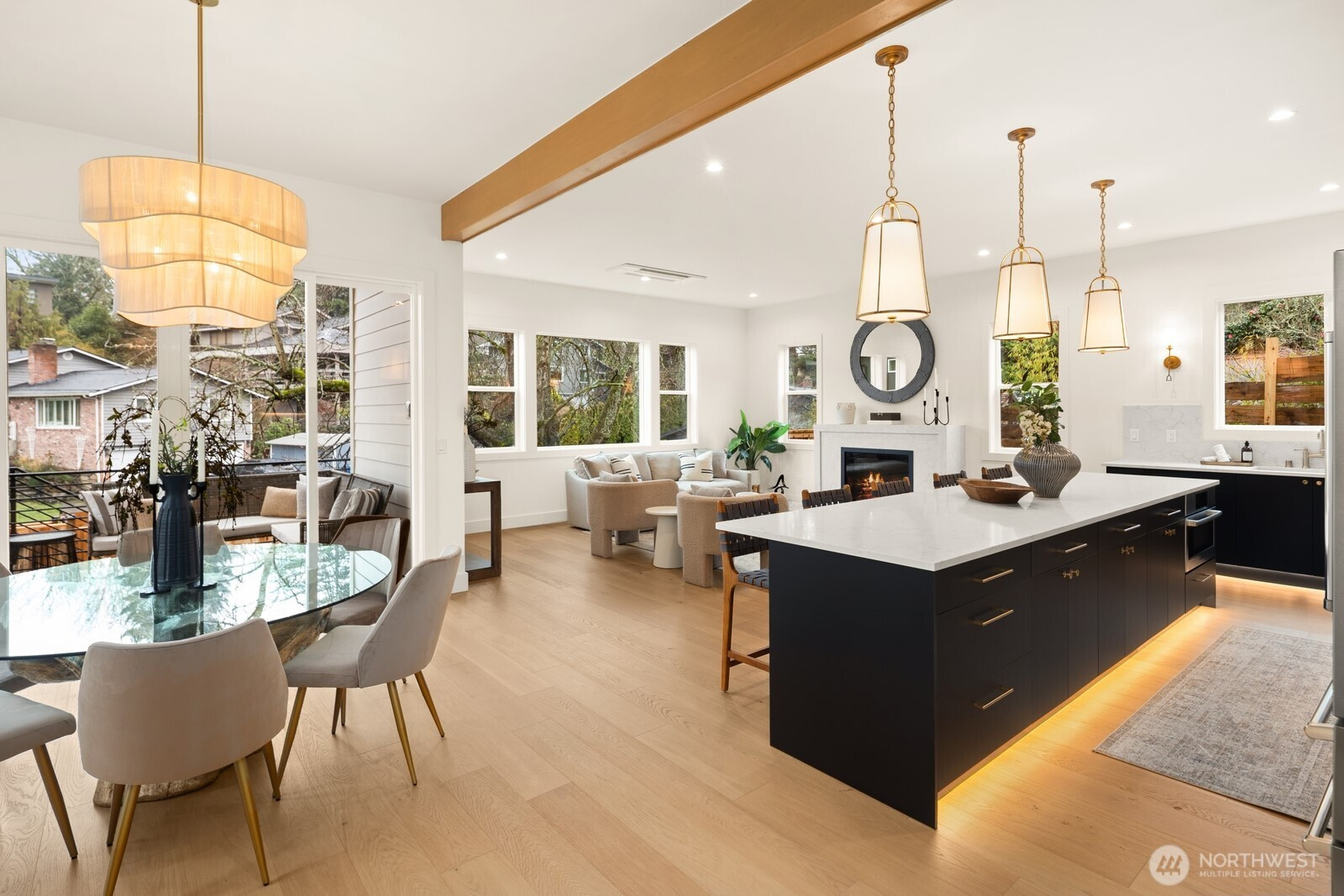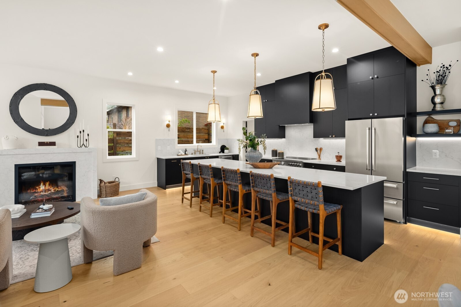 (650)533-3259Lausiva Homes presents another beautifully crafted home in Seattle’s North Beach neighborhood —thoughtfully designed with timeless style. A stunning kitchen with Bertazzoni appliances, Brizo Artesso faucet, Abodian cabinetry, butler’s pantry, and wine fridge anchors the main level and flows into the inviting living room with a custom quartz fireplace. The formal dining area opens through expansive sliders to a covered, heated deck and fenced yard—ideal for year-round entertaining. French doors lead to a main-level bedroom or office with nearby ¾ bath. Upstairs, the light-filled primary suite features soaring ceilings and a spa-inspired bath with soaking tub, frameless shower, radiant heat flooring and double vanity. Three additional bedrooms and a versatile loft provide flexible living space. Mini-splits in every room, a spacious laundry room with utility sink and storage, and an attached two-car garage with EV charger and mudroom entry complete the home.