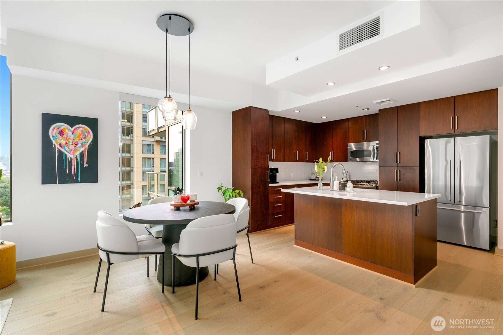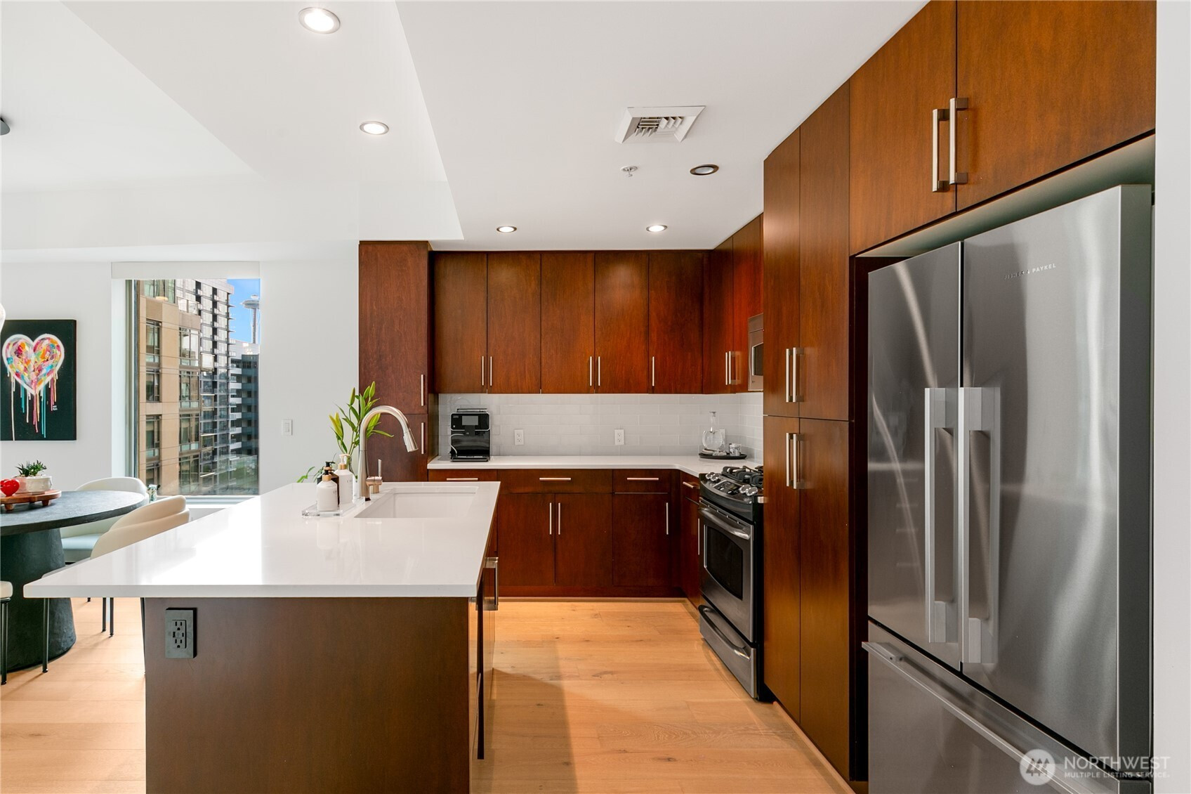 (650)533-3259Live at the center of it all in 2200 Westlake — a premier concrete-and-steel community in the heart of South Lake Union. This remodeled 1BR+den corner home offers expansive views of the iconic Space Needle, an abundance of natural light and a versatile den perfect for office or guest space. Beautiful upgrades throughout — including a sleek kitchen & bath, updated flooring, lighting, appliances and finishes. A move-in ready home that blends comfort with sophistication. Venture outside to Whole Foods, top restaurants, yoga, coffee and everything SLU offers. With friendly concierge, secure parking, luxe amenities & no rental cap, this home is vibrant city living and a smart investment.