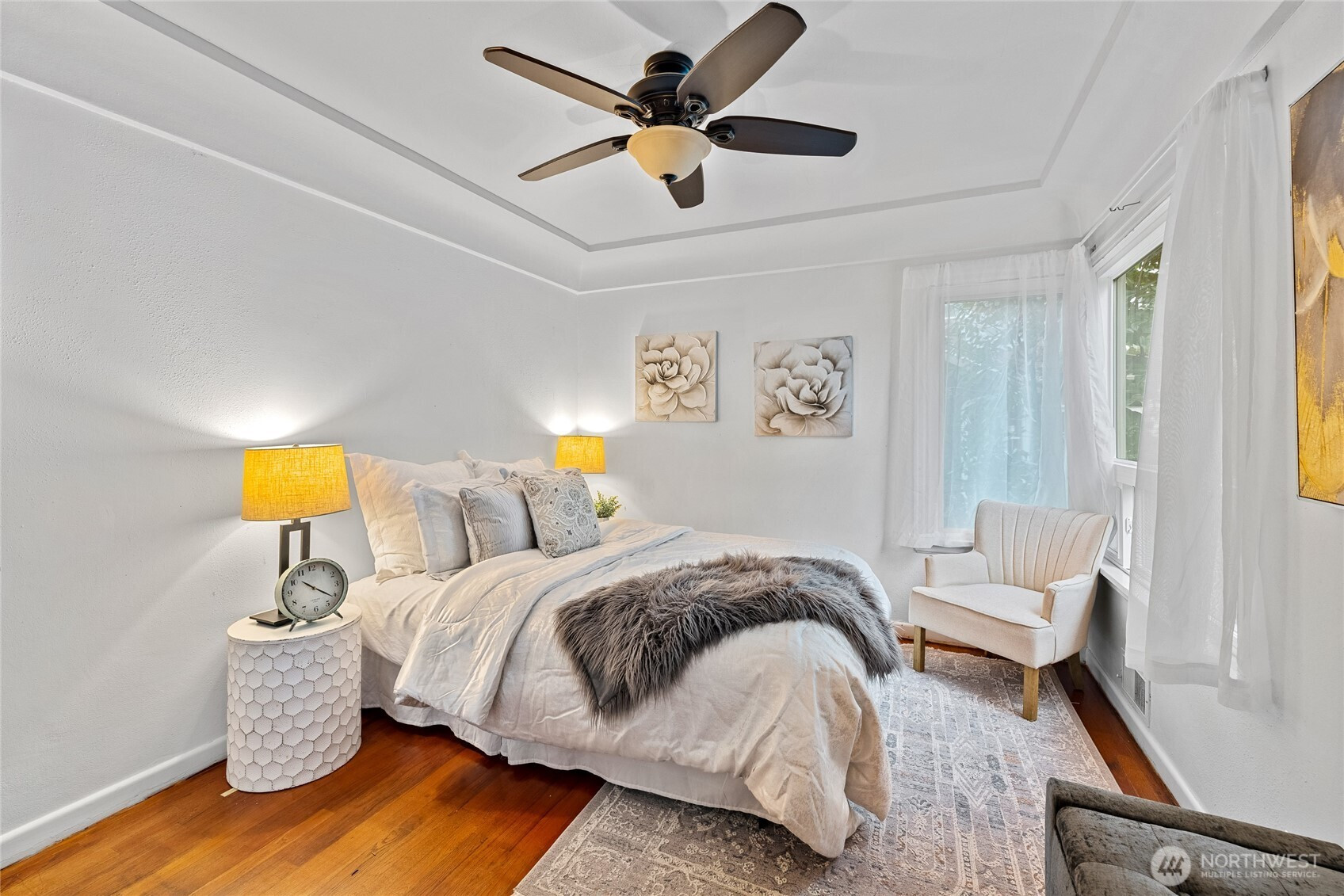 (650)533-3259Charming inside and out! Completely turnkey 1980 sqft 3 bedrooms + extra finished room and 1.75 bathrooms. Cove ceilings, arched doorways, and crystal knobs. Hardwood floors throughout the main level. Granite gourmet kitchen with a sunny eating area and a walk-in pantry. Formal dining. Lower level opens to a large rec room, Bedroom, 3/4 bath, and a huge EXTRA FINISHED ROOM- that could be the fourth bedroom, which has a private entrance. Large laundry room with loads of storage. New hot water tank. Fantastic 8951 sq ft yard with mature plantings, patio space, a gazebo, and off-street parking for two cars. Roof installed 2012—easy commute to Downtown Seattle, SeaTac Airport, and more. Move-in ready.