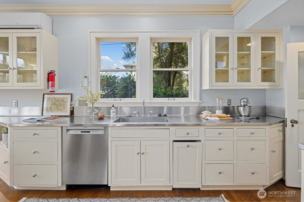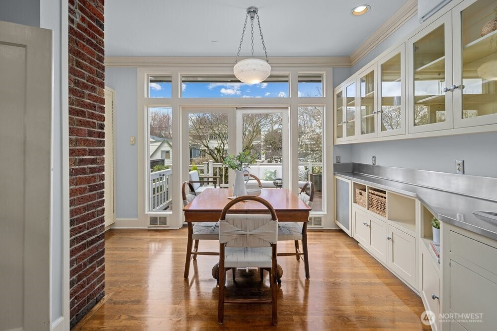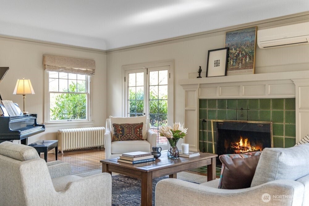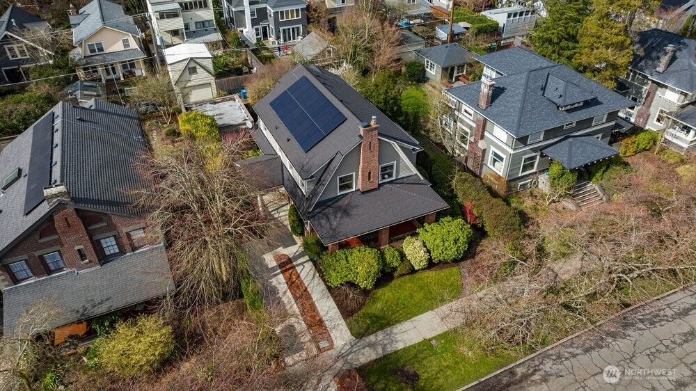 (650)533-3259This stately Dutch colonial on a truly special street lined with cherry trees in North Capitol Hill retains the character of its past while offering the modern amenities of today. A driveway leads to a covered front porch and gracious foyer where classic and well-preserved details unfold: zinc mullioned windows, hardwood floors and original millwork. The spacious living room is to your right with windows on three sides, oversized fireplace and double doors to a covered porch. To your left is the dining room. Plenty of space for living and entertaining here. The powder room and first-floor den/office are straight ahead. Large, updated chef’s kitchen with clerestory windows and French doors open to the sunny and tranquil deck and backyard. This is where summers in Seattle were meant to be spent. The open, grand stairwell passes by large stained-glass windows to four spacious bedrooms, each with abundant natural light, along with a full bath and linen closet. The expansive lower-level hosts laundry, the second full bath, and family room, along with substantial space waiting for your ideas to become reality. Maybe a home gym or TV room? There’s also direct access to the backyard. Modern updates include solar panels, newer roof and a heat pump with updated electrical panel. Close to Volunteer Park and with easy access to downtown, SLU, and UW, this special home is set to be loved for another generation. Don’t miss your chance, the last family enjoyed for over 60 years!