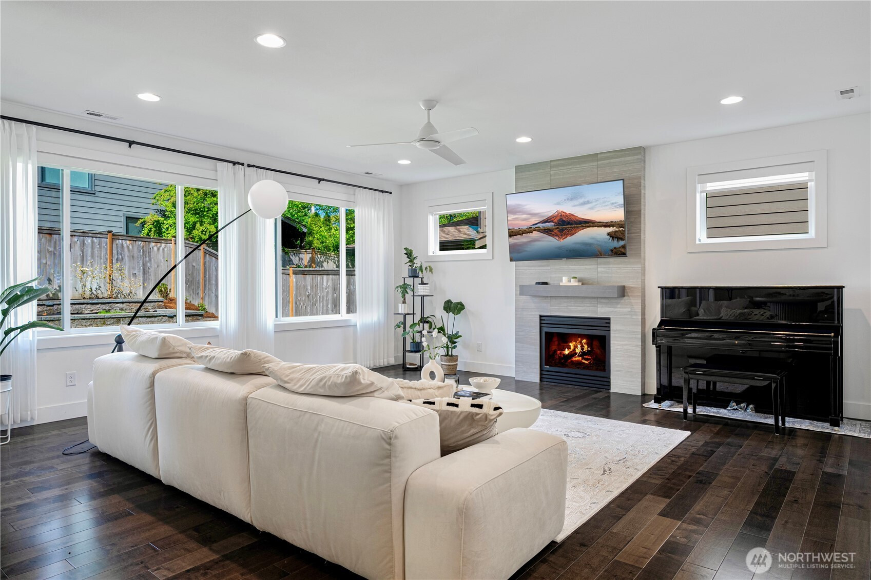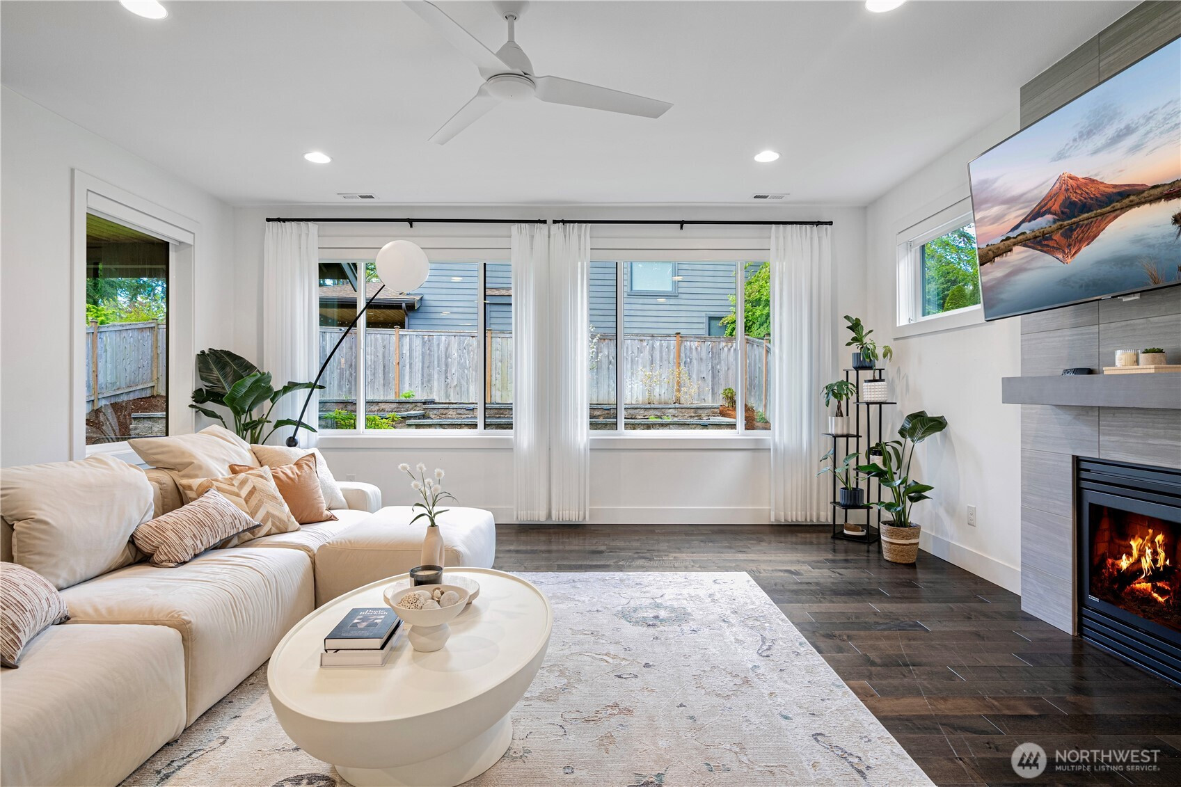 (650)533-3259Modern elegance meets everyday comfort in this sunlit 4-bed + super loft home, featuring a main-floor guest room and an airy, open layout. Soaring ceilings and expansive windows flood the space with natural light. The gourmet kitchen boasts white cabinetry, quartz counters, and a generous island—ideal for entertaining. Dining flows into a cozy family room with a gas fireplace. The spacious primary suite includes a spa-inspired bath. Enjoy designer lighting, plantation shutters, A/C, smart home features, and hardwoods throughout the main. Covered patio opens to a fully fenced backyard with raised garden beds. Ample storage! Lake WA Schools, 2 mins walk to Amzn shuttle, close to major Tech Companies and Town Centers, I-405. Pre-inspected!