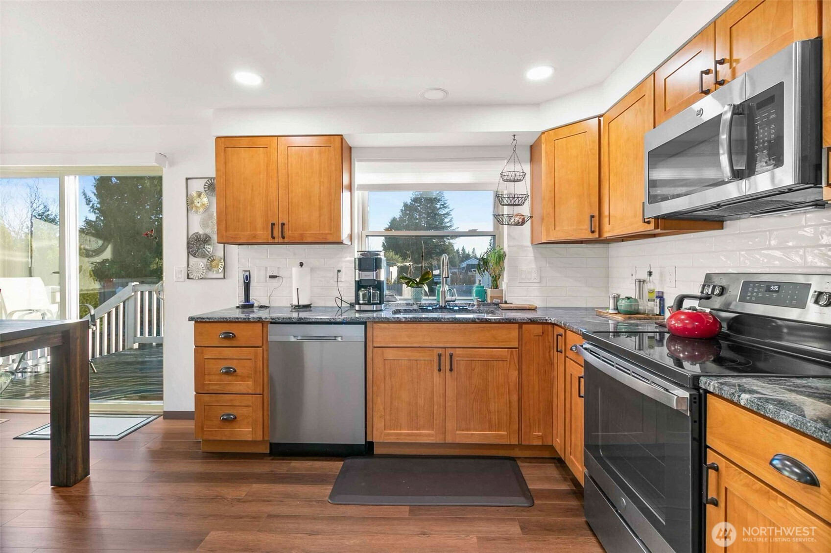 (650)533-3259Well maintained split-level home located on Kent’s desirable East Hill. This inviting property features a new roof and gutters with transferrable warranty, along with a beautifully remodeled kitchen, granete counter tops, soft close drawers, completed in 2022. The lovely flooring throughout adds to the home’s warm and welcoming feel. Located on a large cul-de-sac, the setting offers a sense of privacy and quiet living. Enjoy easy indoor-outdoor living with a deck just off the dining room, perfect for relaxing or entertaining. Thoughtful touches like ceiling fans throughout add comfort, making this home both charming and move-in ready.