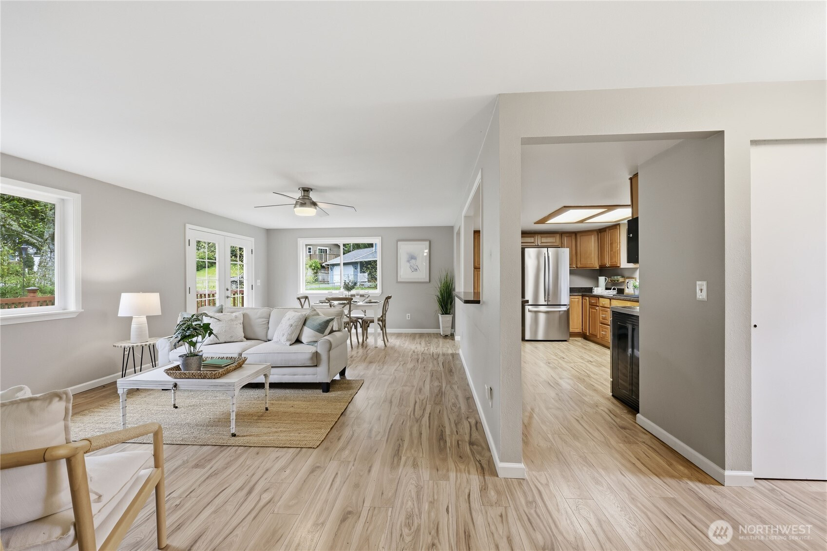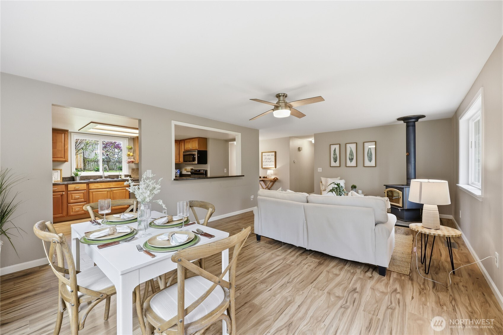(650)533-3259Move-in ready rambler on a level, sunny .21-acre lot with a fully fenced yard, fruit trees, and garden space—perfect for outdoor living. This tidy home features a new composition roof, fresh exterior paint, updated bathrooms, an updated kitchen with newer appliances, and new luxury vinyl flooring throughout. Enjoy easy one-level living with a cozy wood stove, forced air electric heat, and a two-car garage. Community beach access adds to the appeal, while the convenient location offers an easy commute to Poulsbo, Silverdale, schools, and shopping. A great opportunity for low-maintenance living with space to relax, garden, and enjoy the best of Kitsap living.