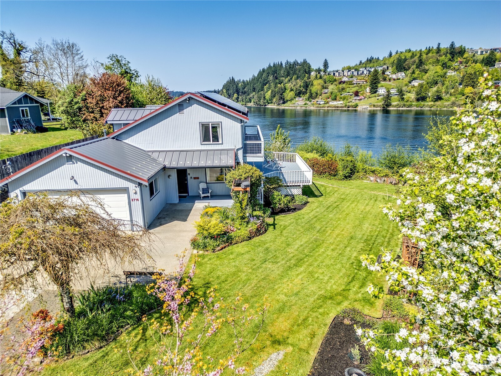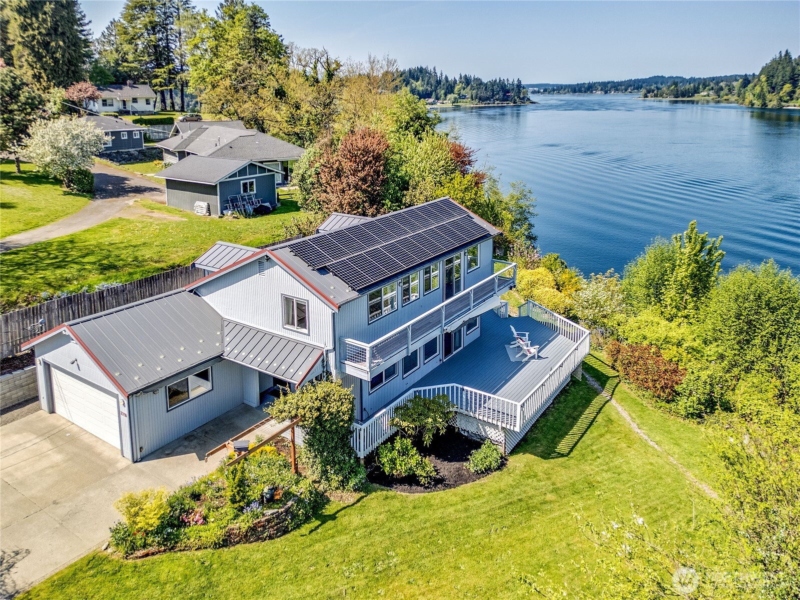 (650)533-3259Rare piece of Bremerton waterfront! Enjoy 81' of high-bank waterfront, with sweeping views of the Port of Washington Narrows & Puget Sound. This well-maintained 4-bed, 3.5-bath home offers 2015 sqft of timeless charm. Expansive deck has motorized awnings to add shade & comfort, creating a gorgeous entertaining area, large lot w/mature landscaping. Spacious primary suite features ensuite bath & incredible views from a private, second deck. Home is wired for generator-which stays. Solar panels provide ample electricity resulting in an average of $8/month power bill even with the Electric car charger! 2-car attached garage, plus plenty of parking for RVs or boats. NO HOA. Minutes to downtown Bremerton, PSNS, & Bremerton ferry for easy commute.