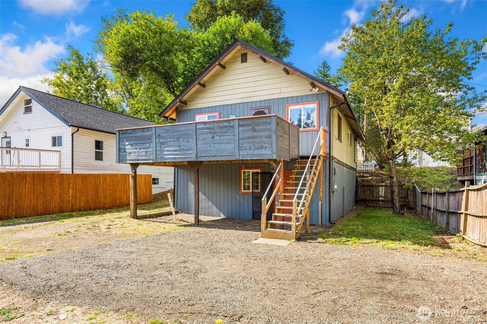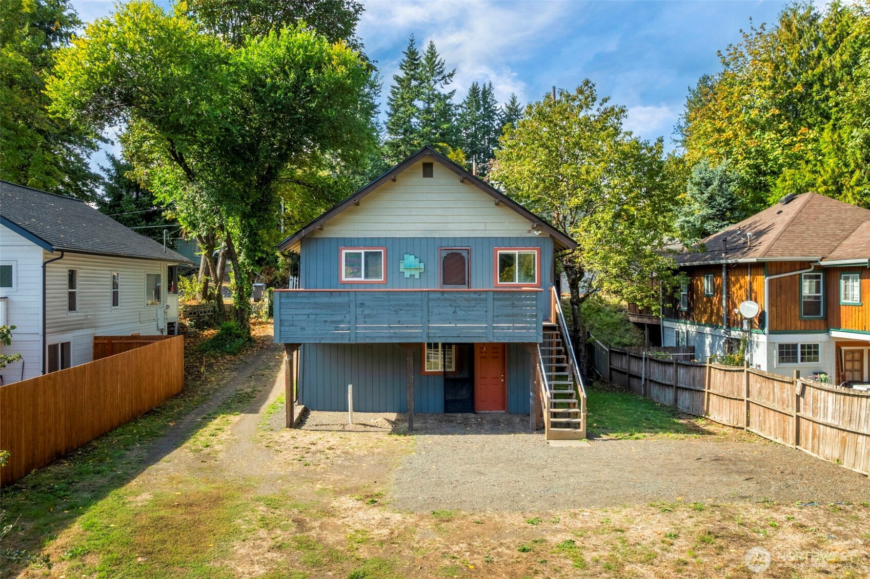 (650)533-3259First time home buyer or investor, this one's for you! Adorable ready to go 2 BR bungalow with huge investment potential. Darling covered porch entry. Charming living space w/ cozy wood stove & rustic accents. Bright & cheery kitchen, spacious layout, butcher block counters & SS appliances. Large sunny deck off kitchen w/ stairs to big backyard area. Ample bedrooms flanking updated 3/4 bath. Vinyl windows. New roof & gutters. Huge ready to finish 850+ sf basement crawlspace w/ separate access door. Neighboring homes have really maximized their value by doing the same finish work. Enormous parking area with front to back drive thru access to Loxie Eagan's Blvd. Urban Low zoning allows you to permit & finish this as a DUPLEX or build ADU.