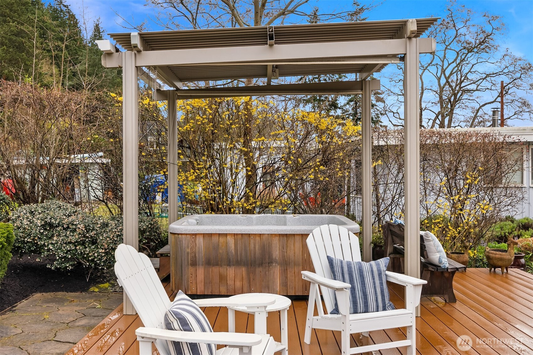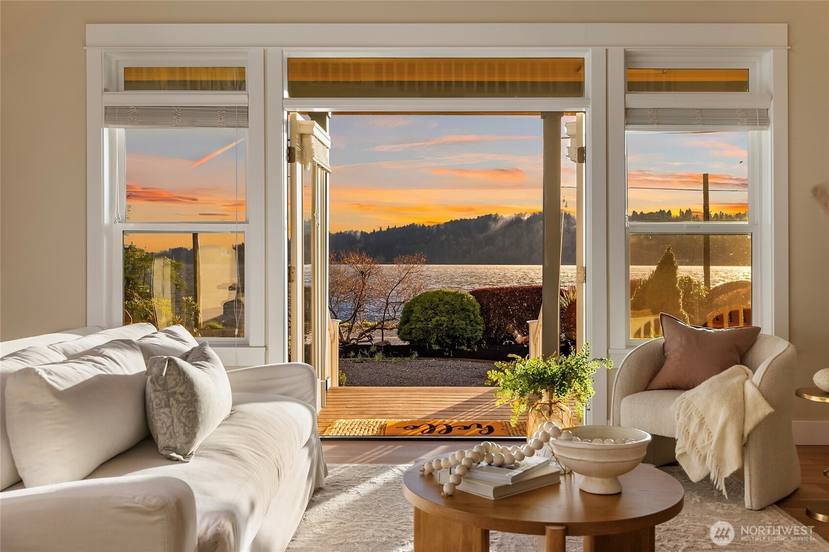 (650)533-3259Sunlit and serene waterfront living awaits at this stunning Crystal Springs retreat, perfectly positioned to capture sweeping views of the ever-changing Rich Passage. Thoughtfully designed with a comfortable floorplan, this sweet home sits on a sunny half-acre with beautifully manicured gardens in one of Bainbridge Island’s most sought-after locations. The open-concept main level features a dramatic two-story great room with expansive windows and a double-sided fireplace, creating a bright and inviting living space. French doors open to the beach-side gardens, providing seamless indoor-outdoor living.The kitchen is well-appointed with Bosch appliances, a walk-in pantry, & ample counter space- ideal for everyday living & entertaining. The main-level primary suite includes a fireplace, spa-inspired bath, dual walk-in closets, & direct access to the tranquil waterfront setting. Upstairs, two more spacious ensuite bedrooms provide comfort and privacy, each with their own balcony. A versatile loft offers the perfect space for a media room, home office, or lounge area. Exterior features include mature landscaping, fruit trees, & a private hot tub. The detached oversized 2-car garage offers workshop space & additional storage. Addt'l parking for an RV or recreational vehicles available behind the garage. Don’t miss your chance to own this sunny waterfront gem just 2 miles from Lynwood Center/Pleasant Beach w/its vibrant restaurants, shops & the historic Lynwood Theater.