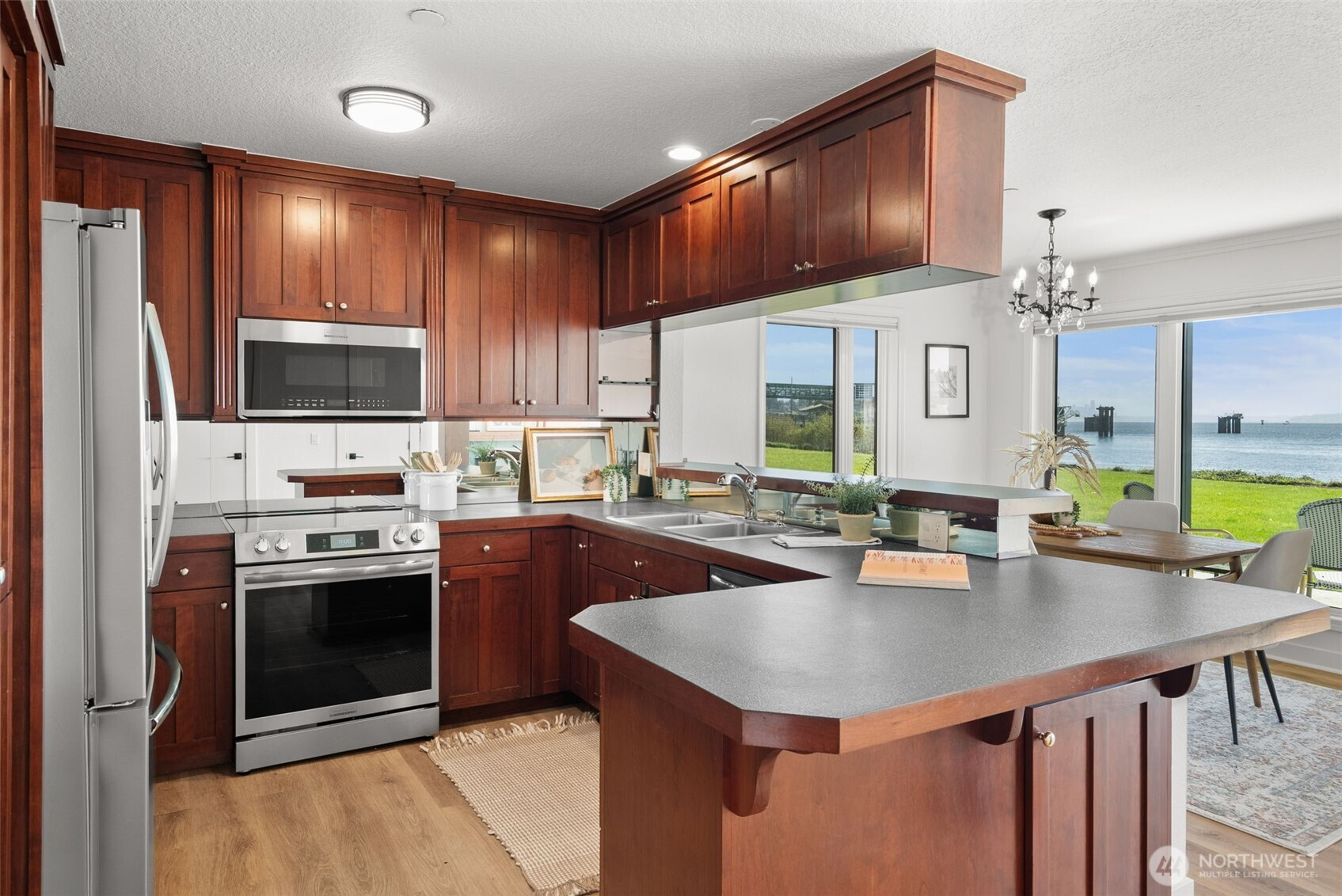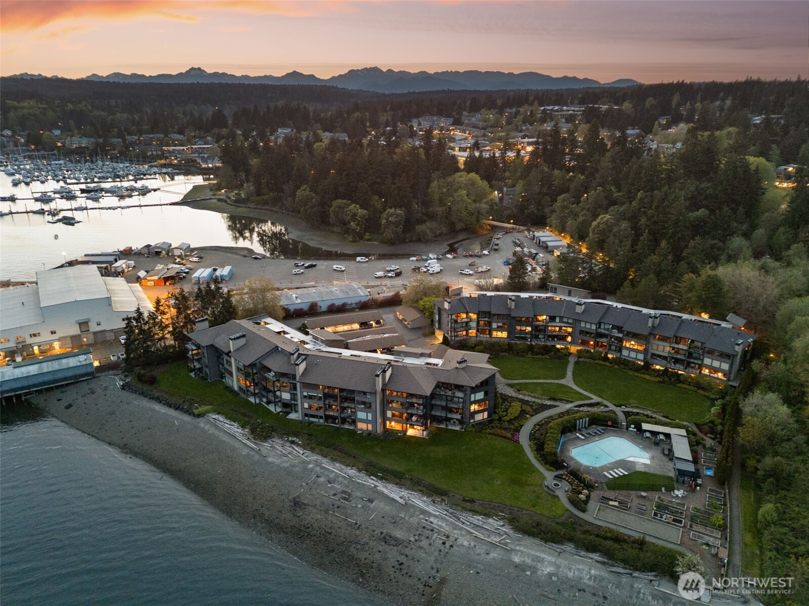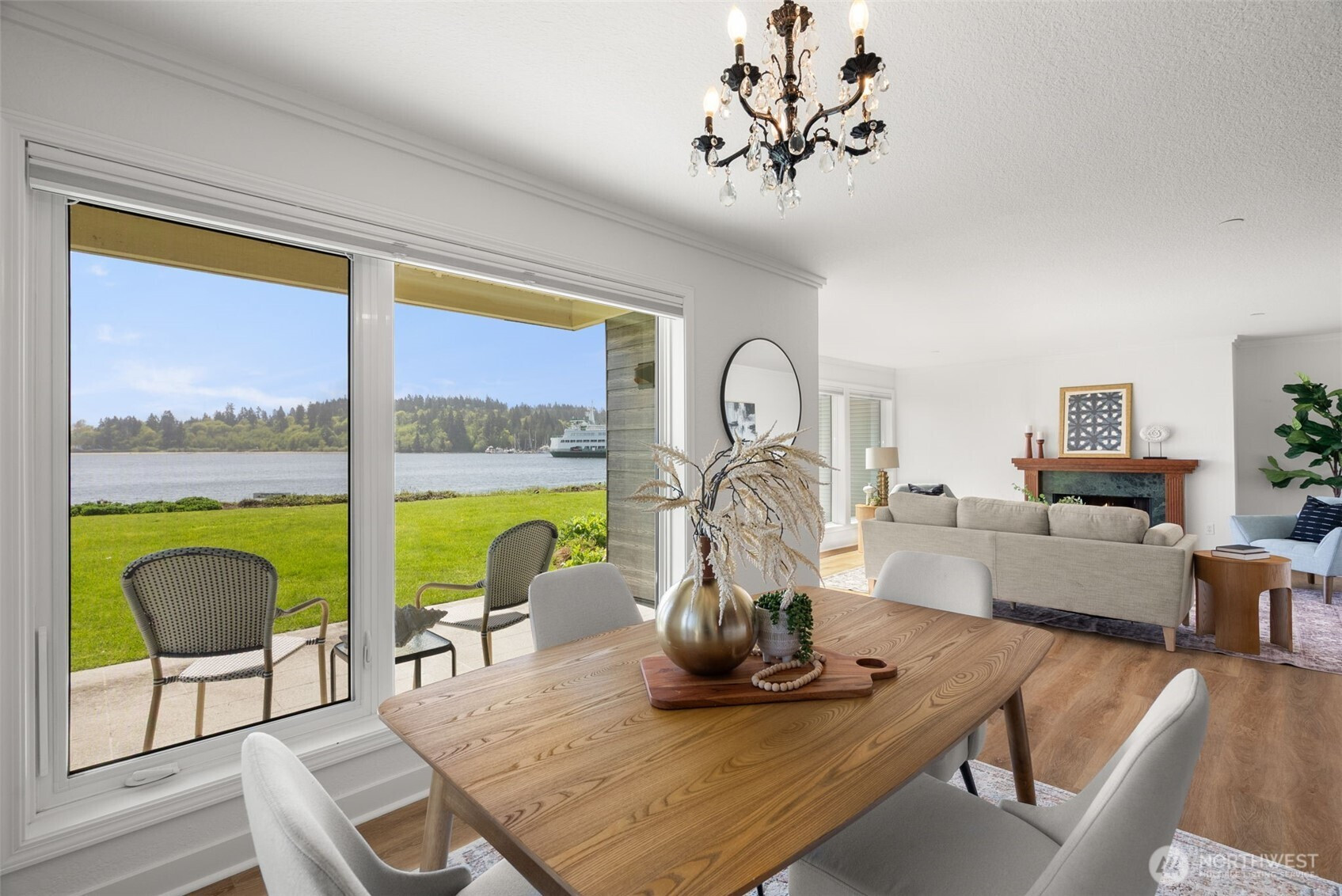 (650)533-3259Set along the shoreline of Eagle Harbor, this ground floor residence offers a rare combination of immediate waterfront access and everyday convenience in the heart of Winslow. From the living room, ferries glide in and out of the harbor, with Puget Sound and the Seattle skyline unfolding just beyond. It is a view that is both dynamic and quietly grounding, changing with the rhythm of the day.The home is positioned for ease. No stairs, direct access to the grounds, and a layout that lives simply and comfortably. Two bedrooms and 1.75 baths are arranged within an open plan, with recent updates that include refreshed interiors, remodeled baths, and new windows and doors as part of a comprehensive, design-forward exterior renovation by Coates Design. Outside, approximately 500 feet of private, no-bank waterfront extends just beyond the lawn, offering a rare sense of connection to the water. The pool, landscaped grounds, and shoreline are all just steps from the door, creating a seamless indoor-outdoor lifestyle that is difficult to replicate.What distinguishes this offering further is its proximity. The Bainbridge Island ferry terminal, downtown Winslow, and Waterfront Park are all just minutes away. Morning coffee, evening dinners, and a straightforward commute to Seattle are within easy reach, making this an ideal full-time residence or lock-and-leave retreat.