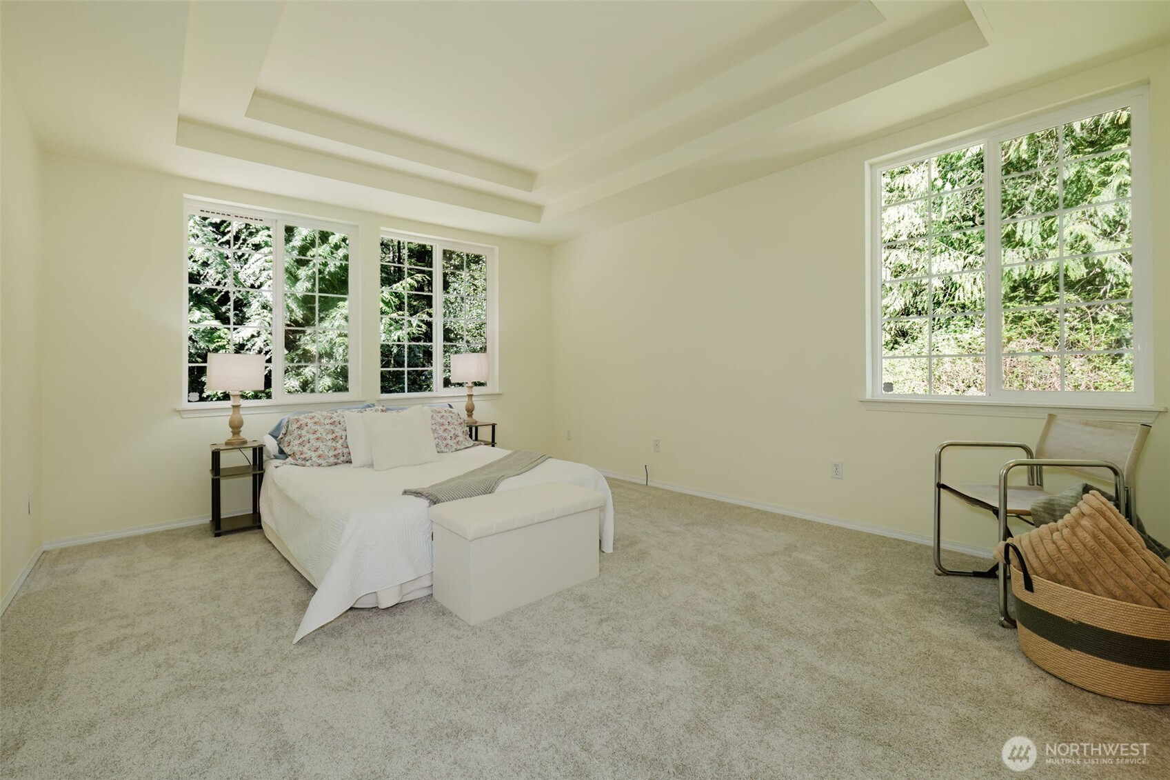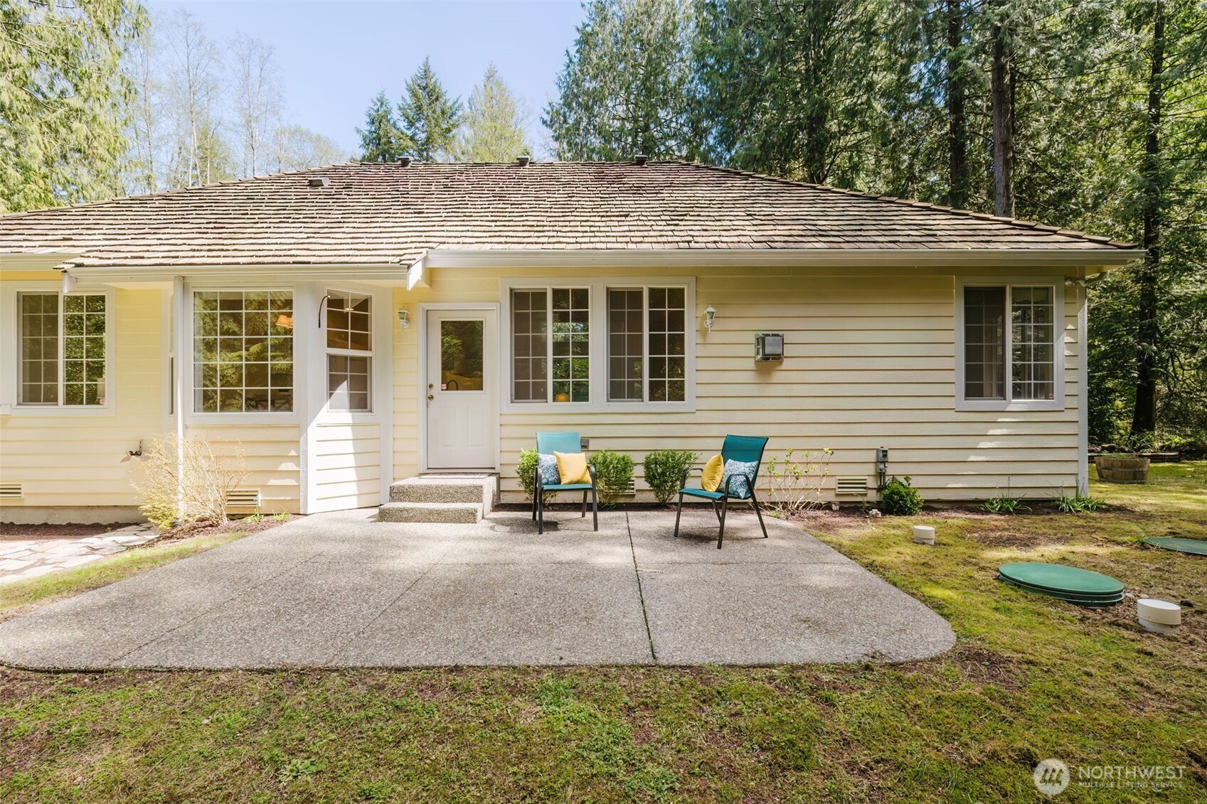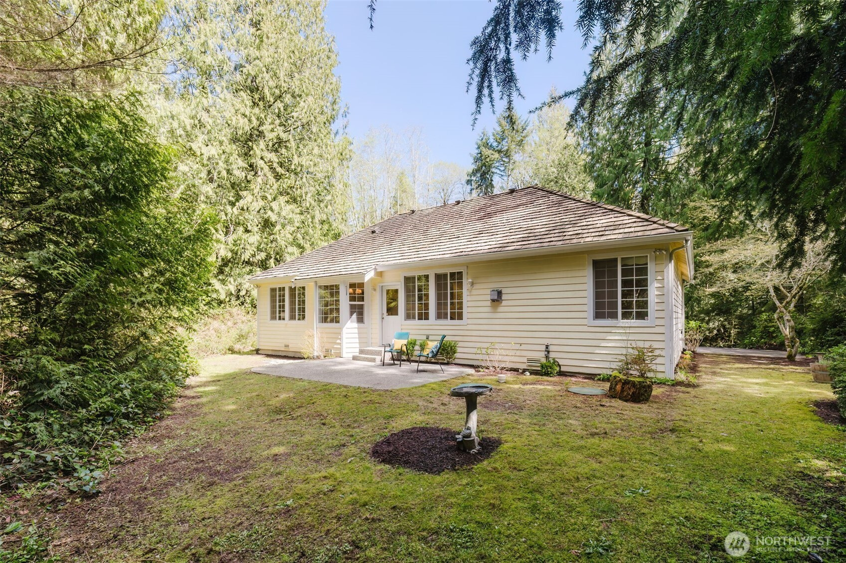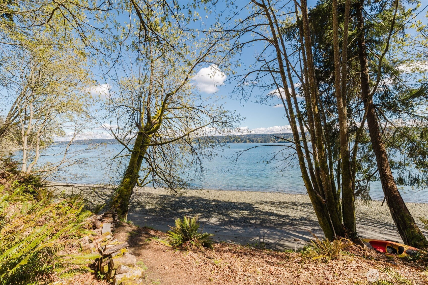 (650)533-3259Beautiful one-level home tucked off a quiet road on 5 peaceful acres in sought-after Fragaria Landing. Vaulted ceilings and open-concept living create a light, spacious feel. Fresh updates include new carpet, kitchen flooring, quartz countertops, and interior paint. The kitchen offers ample cabinetry and flows into the living area with built-ins. The primary suite features coved ceilings, abundant light, a walk-in closet, and a private bath with soaking tub and separate shower. The 5 acres includes mature evergreen forest, private walking trails, and charming outbuilding. Fragaria Landing residents enjoy private beach access. Convenient to Banner Forest and the Southworth Ferry—privacy meets accessibility.