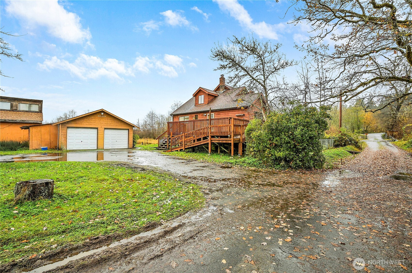 (650)533-3259Estate sale - as is. This home is occupied. 19.3 acres of true farm living! Enter your property by crossing a dreamy bridge over Blackjack Creek—yes, you can even spot salmon jumping. A charming, sturdy barn with a newer roof, 4 stalls, a tack room, and generous storage anchors the farm. See attachment for photo from it's "hay day" of horses and cattle! The 3-bedroom home blends partial updates with original hardwood floors and coved ceilings. Enjoy a woodstove insert upstairs, a freestanding stove downstairs, and two basements for endless possibilities. Detached garage, detached shop and separate 1 1/2 story bonus room. Fruit trees galore! With a smidge of barn-boot effort, this farm will become a showcase once again.