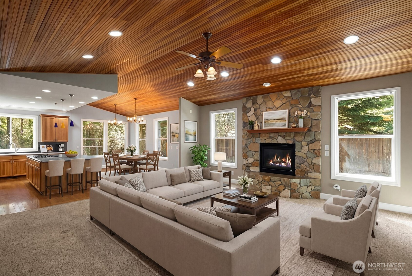 (650)533-3259Nestled among the towering evergreens on a shy acre along Leisure Land Lane, this stunning 3 bedroom, 2 bath mountain retreat offers 1850 square feet of refined living. Gourmet kitchen features an over-sized island, double ovens, hickory cabinetry, and sparkling Brazilian cherrywood floors. Spacious dining area opens to a large patio - ideal for outdoor entertaining. Vaulted great room showcases a striking river rock granite fireplace. Luxurious primary suite includes a 2 sided fireplace, jetted tub, dual sinks, Italian marble floors and spa-style shower with multiple body sprays. The detached 672 sq ft finished office/bonus room provides ample options (home office, art studio, yoga/workout space, guest space) or anything else you can think of! The over-sized 3 car attached garage has room for all your toys & if not, there is another storage building for even more of your tools and toys! Property borders State Land and Yakima river (Blue Ribbon Fly Fishing) is walking distance away as well as the Palouse to Cascades Trail for hiking and biking! Just minutes to I-90 and Suncadia for a round of afternoon golf!