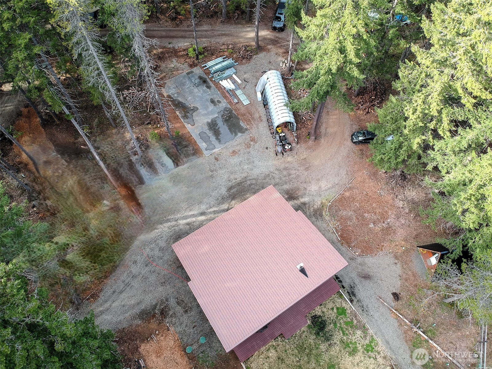 (650)533-3259This 2-bed, 1-bath cabin sits at the very end of the small Easton airstrip, offering a unique vantage point looking straight down the runway. Surrounded by forest and recreation, it’s an ideal basecamp for 4-wheeling, biking, hiking, and snowmobiling, with direct access to state land bordering the property on the east. A rare opportunity to own a true cabin-in-the-woods retreat, the property also includes a 24' x 50' concrete pad with a steel building package on site and ready to install-perfect for a future shop, garage, or storage for all your gear. Matches colors on the house. Small A-Frame dry cabin can be used for guests or storage. Close to lakes, rivers, and endless trail systems, this location is a dream for outdoor enthusiasts looking for privacy, adventure, and room to grow. Less than an hour to Seattle /Bellevue area. Most things will stay with the sale.