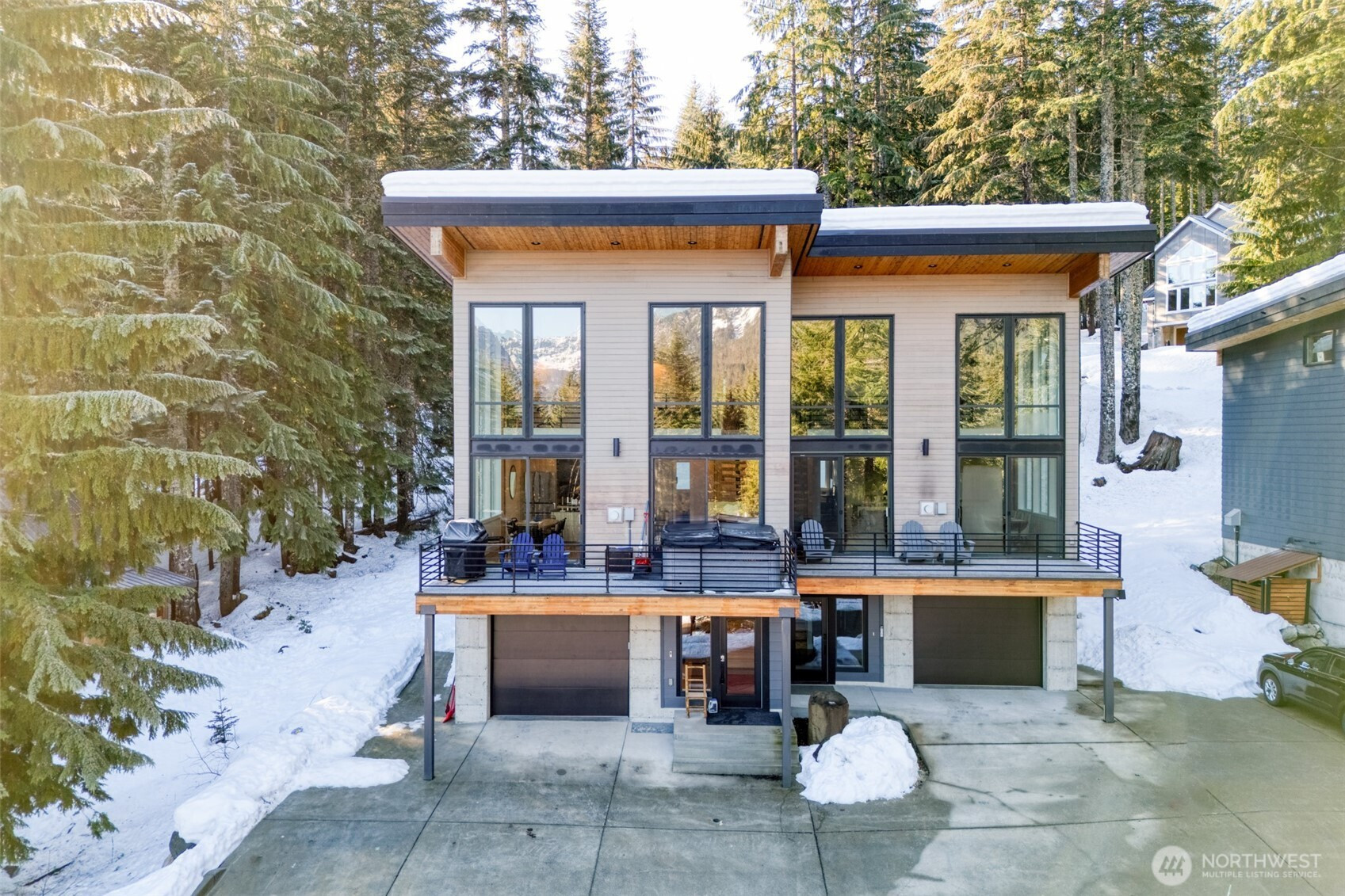 (650)533-3259This 2021 luxury mountain modern home on Snoqualmie Pass features breathtaking mountain views including Rampart Ridge and Chikamin Peak. Thoughtfully designed for mountain living, this home features a heated driveway w/efficient radiant snowmelt system, entry and mudroom with heated floors, set-up for gear storage and quick access to the outdoors. Radiant heated floors on all 3 levels, 20+’ floor-to-ceiling windows with panoramic views from the expansive open-concept living areas and high-end finishes (granite counters, custom cabinets, large gas cooktop & stainless-steel appliances) creates a warm & inviting ambiance for entertaining. This 4 bedroom + flex space, 2.75 bath retreat offers versatility – primary residence, weekend sanctuary, or turnkey set-up for home exchange or short-term rental, with locked cabinets and garage. Other exceptional features include primary en suite, and media/family room with beautiful built-ins offering additional storage. Relax by the fire or soak in the hot tub after a day on the slopes or sledding down your private hill in your backyard. Beautiful trees surround this all-season getaway. Best of all, furnishings can be included, so everything is set for you to immediately enjoy!