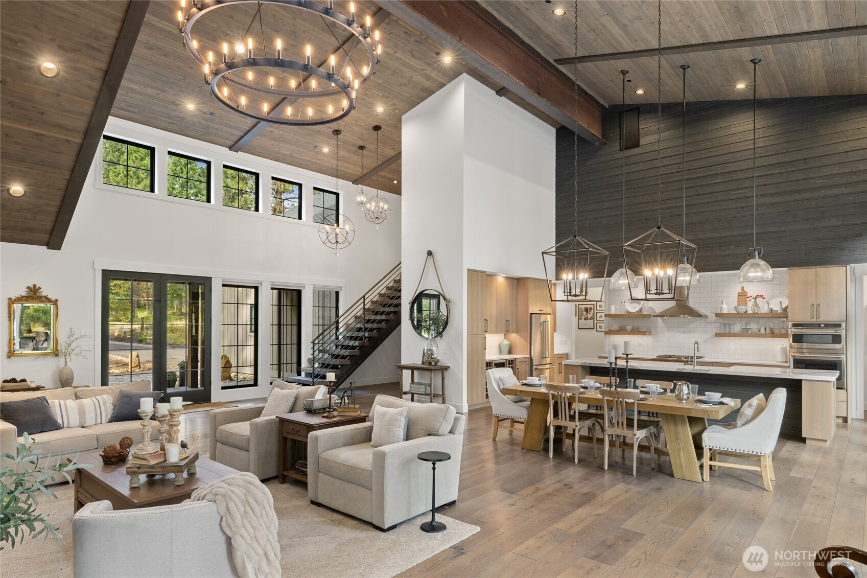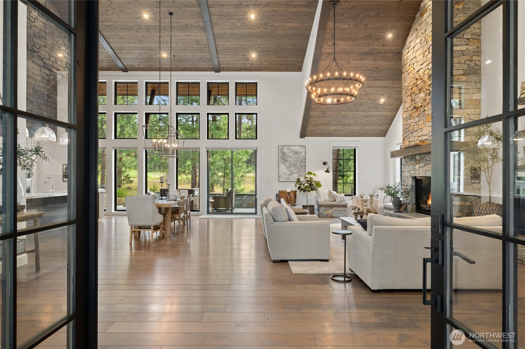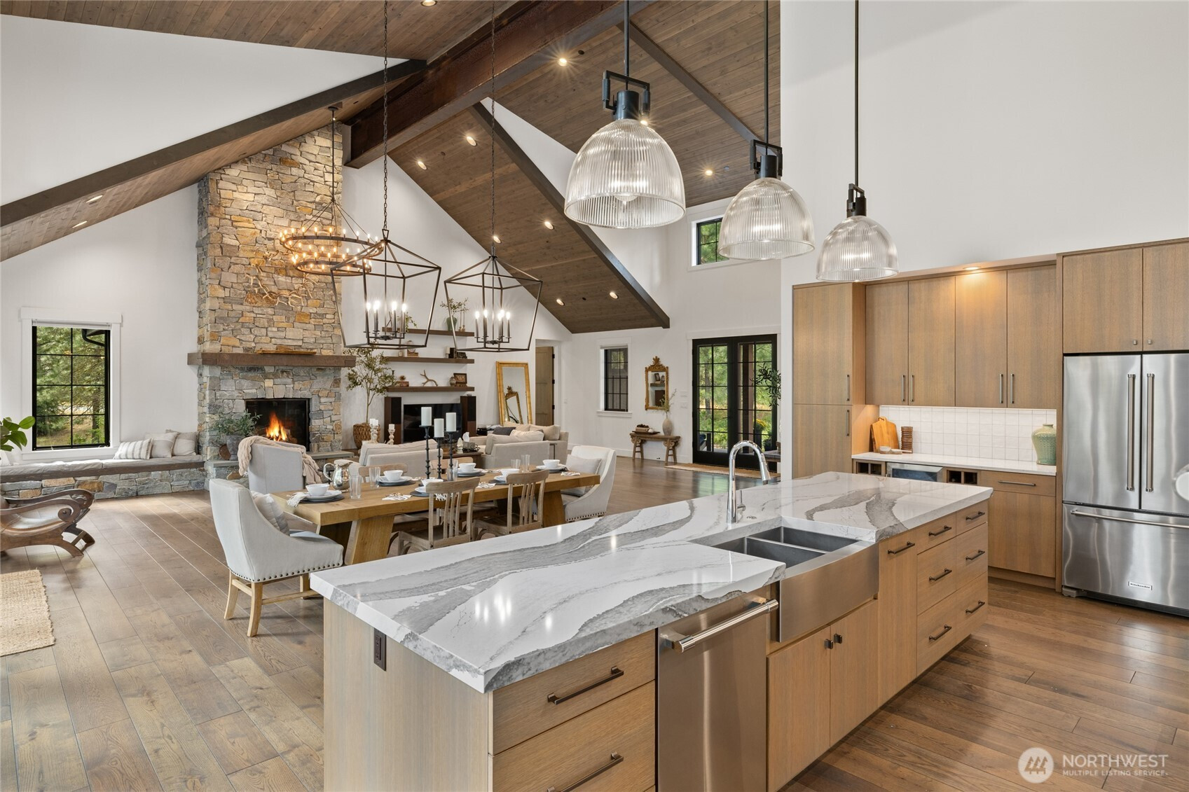 (650)533-3259Spectacular mountain masterpiece at Suncadia Resort, overlooking the 8th green of the Prospector Golf Course on a quiet cul-de-sac. Designed to capture panoramic views and natural light, this exceptional home fuses modern luxury with warm mountain character. The soaring great room features a floor-to-ceiling stone fireplace (20ft), dramatic tongue-and-groove cedar ceilings with exposed steel beams, built-in bench seating, and designer lighting, creating a striking centerpiece for entertaining and everyday living. The kitchen cabinets are rift sawn white oak and features a massive quartz island, and matching quartz countertops, perfect for entertaining in style. The main-level primary suite offers a serene retreat with a slider to the covered patio. Two additional well-appointed bedrooms complete the main level. Upstairs includes two ensuite bedrooms, and a generous TV/bonus room with an elevated deck overlooking the green. Outdoor living features a covered front porch, expansive back patio, and cozy fire pit, offering multiple spaces to relax and enjoy the surroundings. A rare opportunity to enjoy year-round mountain living at Suncadia Resort.