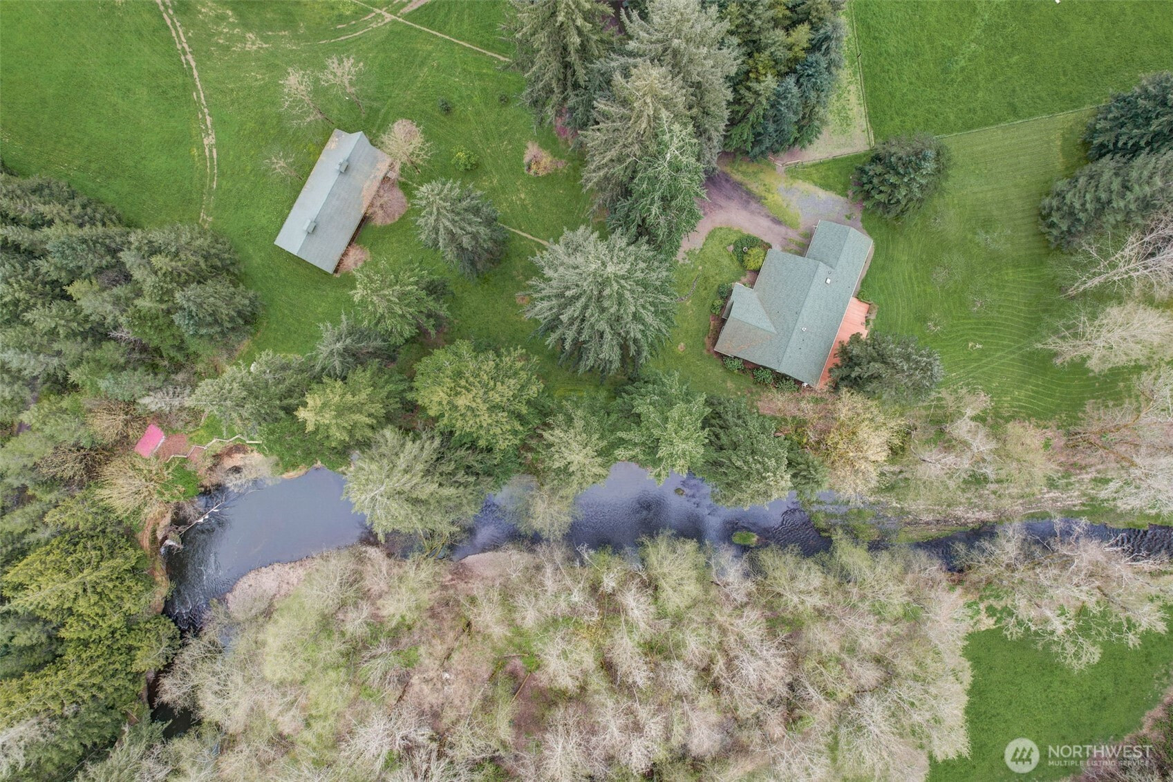 (650)533-3259Sustainable farm, equestrian delight, and recreational destination with Venue potential...! 12 minutes west of I-5, positioned halfway between Seattle and Portland, approximately 40 acres of lush pastures, peaceful forests with TOWERING trees, the Olequa and Black Dog Creeks meandering throughout. Extensive trail network suitable for hiking, biking, horseback riding, even carriage driving. Kayak, tube, wade or swim in 2/3rds of a mile of creek frontage with easy access. Produce your own meat, vegetables, and orchard fruits. Livestock of nearly every variety has been born and raised on site. Wildlife and wildflowers abound in this secluded acreage that no neighboring development can ever encroach upon. Big barn (80'x72') has 6 stalls, heated tack room, plus hay and equipment storage. Cedar barn (30'x60') has hosted events and contains a heated workshop. Well maintained infrastructure includes a comfortable, yet spacious 2,320 sq ft home, fenced paddocks, animal shelters, and more. Property cannot be subdivided and is open to ADU construction for multi-generational living. A perfect place to grow up in the out of doors! This is an absolutely unique, MUST SEE property. You will not be disappointed!