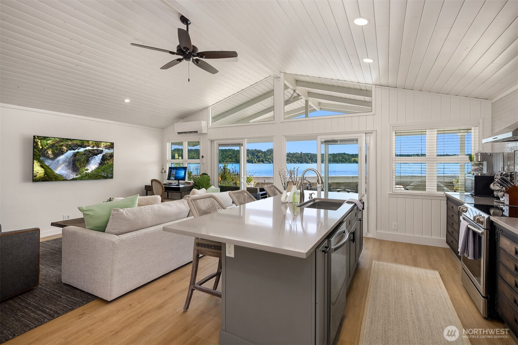 (650)533-3259There is a moment—just as you leave the city behind—when everything begins to slow. This is where it leads. A beautifully remodeled Hood Canal retreat with 50' of no-bank bulkhead frontage and owned tidelands, where weekends stretch longer and time feels different. Just an easy drive from Seattle or Bellevue, it is the kind of place you arrive Friday afternoon and instantly exhale.Wake to soft eastern light over the water. Step outside with coffee in hand, the canal just feet away. Spend your day paddleboarding, kayaking, or beachcombing, harvesting oysters and clams from your own shoreline. As evening falls, gather on the covered deck, light the firepit, and take in the stillness of the canal.Inside, vaulted ceilings and expansive windows invite light and calm. Whitewashed cedar walls and ceilings pair with warm LVP flooring for a relaxed coastal aesthetic. The remodeled kitchen is designed for effortless entertaining, while the primary bedroom offers flexibility with barn doors. A guest bedroom and updated 3/4 bath complete the home.Detached garage, ample parking, fenced yard, and option to purchase furnished create an easy lock-and-leave retreat—close to the city, yet a world away. It is the luxury of simplicity: a place to gather close friends, host effortless summer weekends, and give busy lives a beautiful reset. Rarely does a waterfront property feel this approachable, this polished, and this easy to enjoy from the moment you arrive. In every season, it delivers.