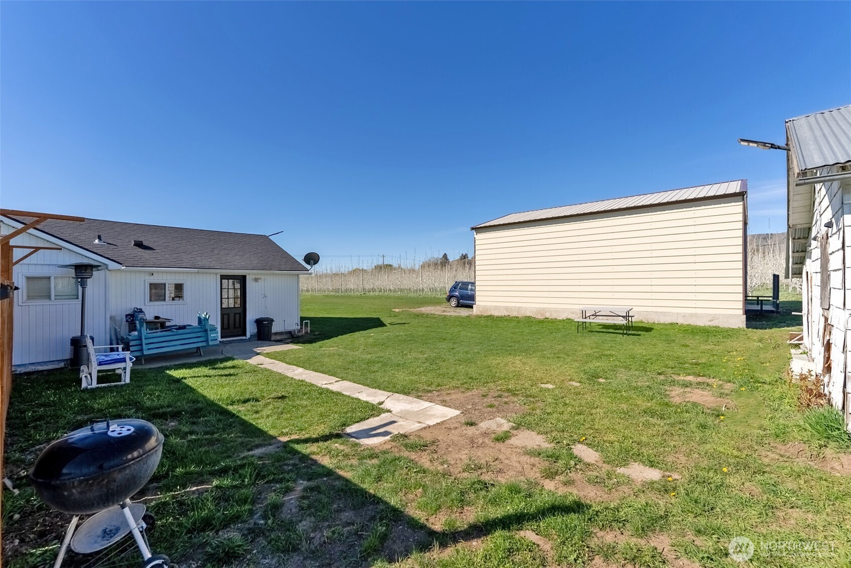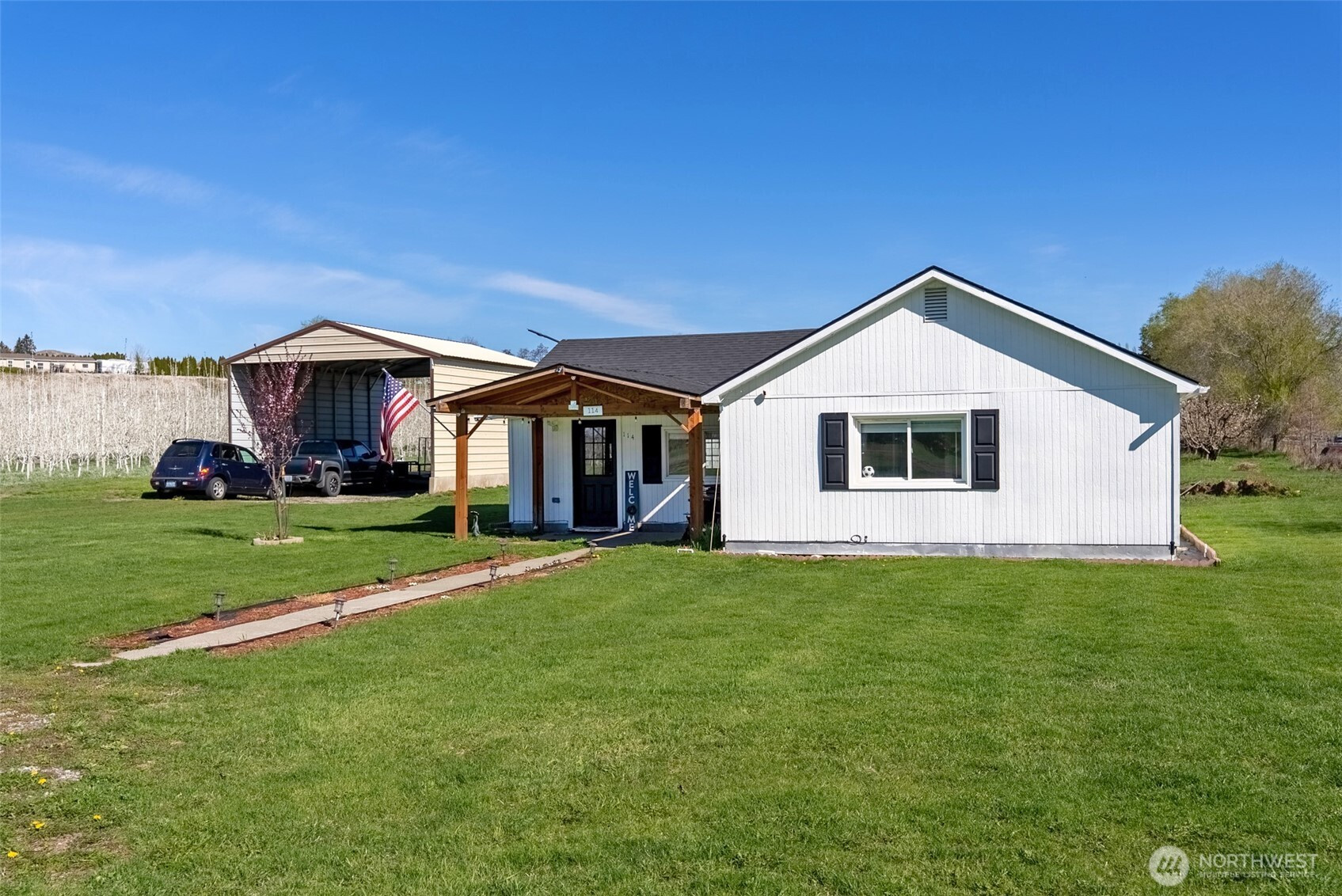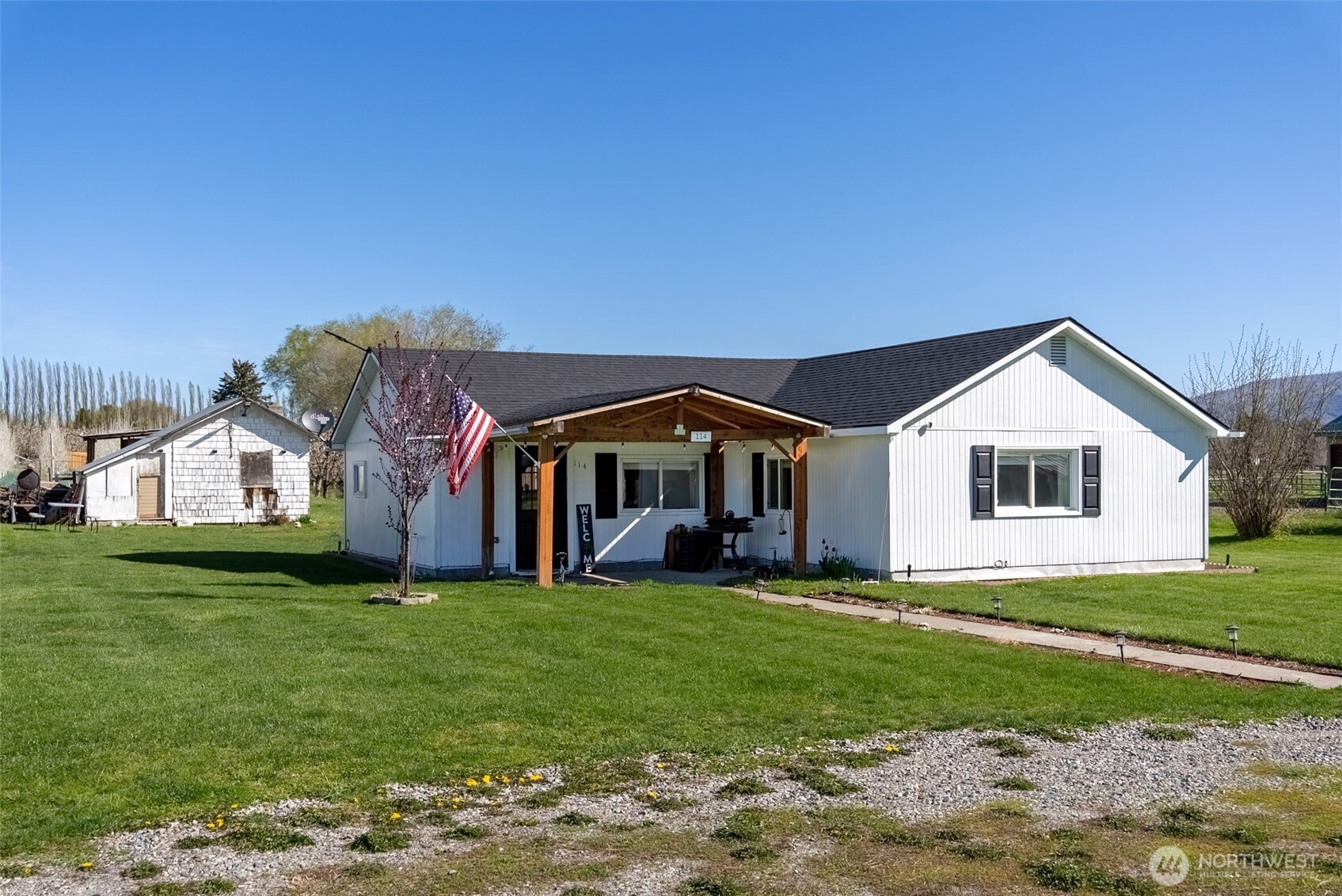 (650)533-3259Welcome to this timeless, updated farmhouse offering 3 bedrooms-1.75 baths on a lush, irrigated acre—perfectly blending farmhouse charm with modern convenience. 5 minutes to town. A covered patio entry welcomes you inside to discover newer stainless-steel appliances, butcher block counters, a private bath off the primary suite and tiled bathrooms, that elevate everyday living. The 1196 sq ft layout is efficient & equipped with laundry area & second bathroom off bedrooms. Outside, enjoy an oversized yard with a sprinkler system, two versatile outbuildings, a large carport & plenty of space to roam, garden, or entertain. This property is a rare find with room to grow, play, & relax in a peaceful country setting.