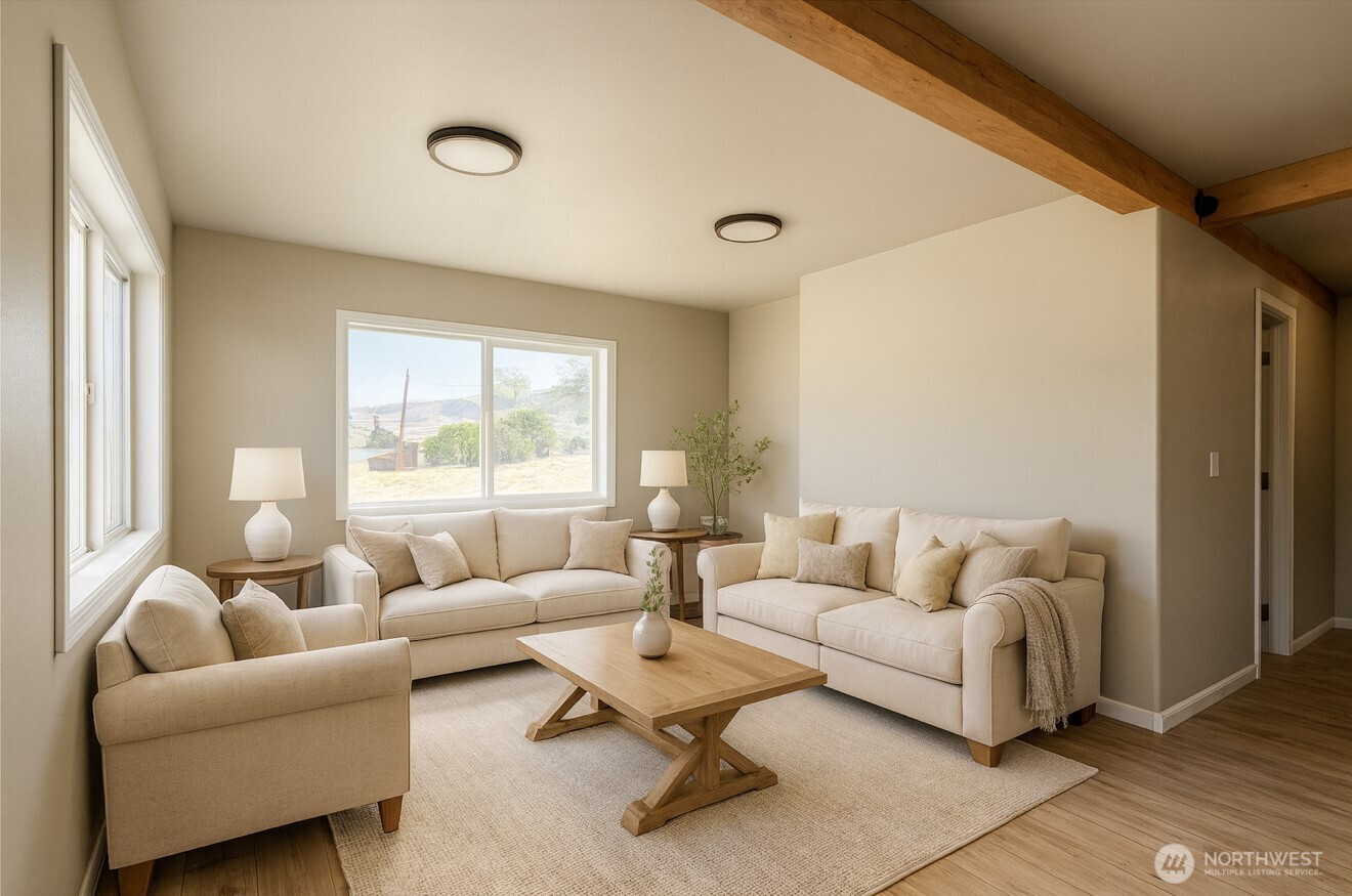 (650)533-3259Okanogan -Old Hwy 97 just over an acre! COMPLETELY REMODELED 1860sqft 3 bed/1.75 bath home w/new exterior/interior paint, fresh new vinyl flooring, & all new light fixtures! Pristine new cabinets w/oversized walk-in pantry & butcher block island/countertops - all appliances stay, dining room, vaulted ceiling living room with native rock wood stove, reclaimed wood accent pieces, beautiful beams, full size tiled bathroom w/jetted tub, primary bedroom with three-quarter tiled en-suite, oversized laundry & mudroom off back entry w/new trek deck landing. Brand new well put in 2025. Septic. Basement for additional storage/utility room. Graveled driveway & rock yard decor. Additional space for potential shop or garage! $349,900 MLS-2441531/H-3724