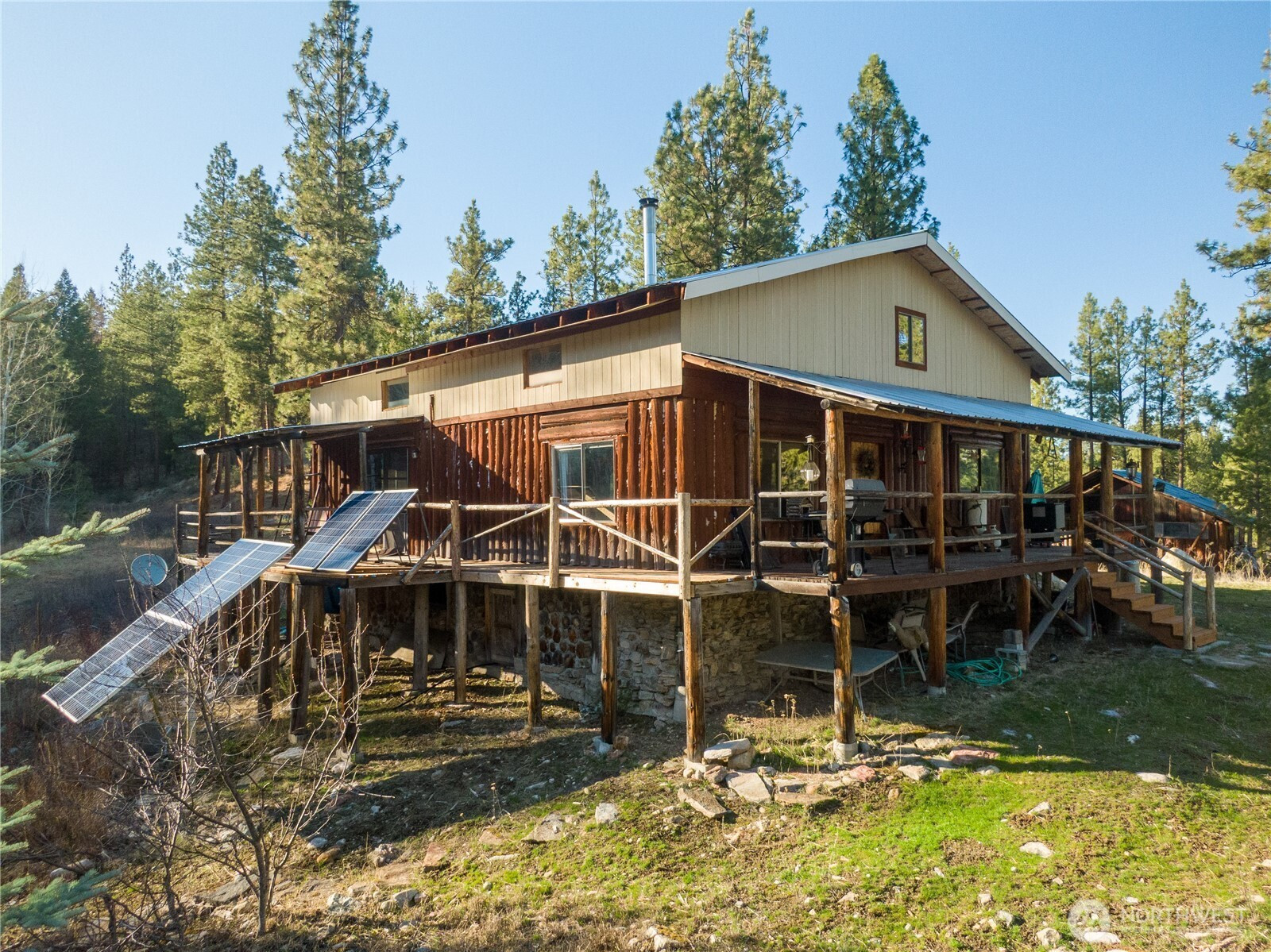 (650)533-3259This 1,869-square-foot off-grid rustic log cabin sits on 40 secluded, forested acres. This tucked-away retreat is perfect for a quiet escape, a hunting getaway, or full-time living off the grid. Inside, the cabin offers a roomy and practical floor plan, featuring a large country-style kitchen, a walk-in pantry, a comfortable dining area, and an inviting living space full of rustic character. With multiple sleeping areas, there’s plenty of room for guests. Outside, you’ll find several versatile outbuildings. The land is a nature enthusiast’s dream, covered with mature pine, fir, and quaking aspen trees that provide both privacy and natural shade. A spacious garden area is ready for growing your own food, while a seasonal pond draws in local wildlife. The property is equipped with solar power, a private well for water, and an installed septic drain field. Come check out this amazing off grid and secluded property with tons of opportunity for your next vision.