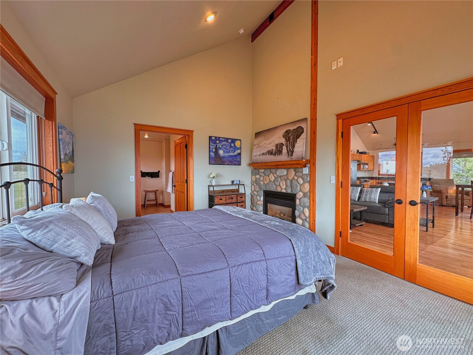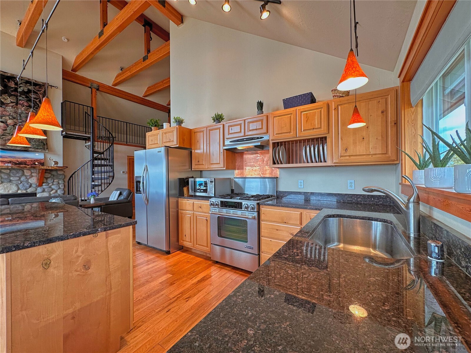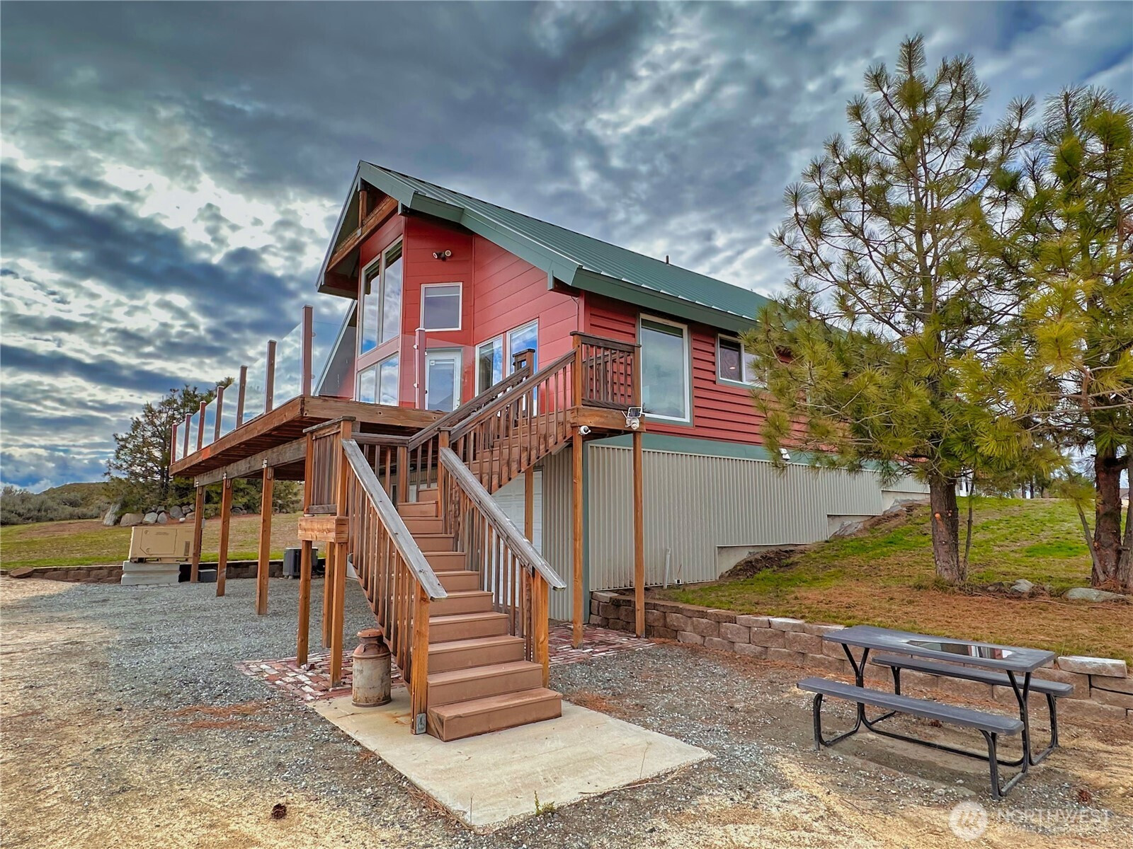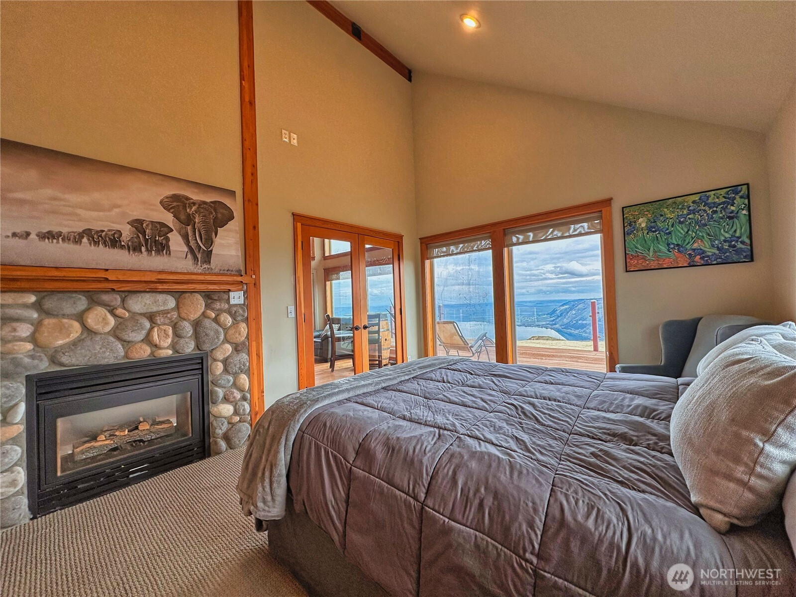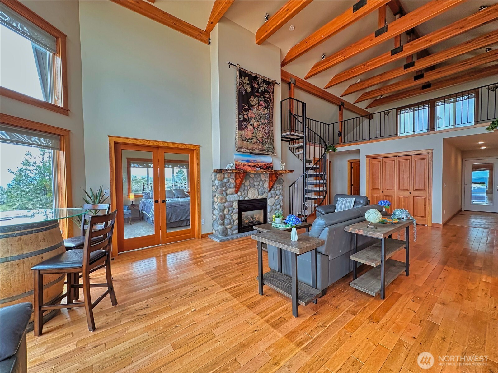 (650)533-3259Experience refined mountain living on 7 private acres with sweeping panoramic views from the Columbia River to the Cascades. This impressive 4-bedroom, 2.5-bath estate blends rustic elegance with modern comfort, showcasing soaring ceilings, exposed wood beams and expansive picture windows that flood the home with natural light. Rich wood flooring anchored by dramatic floor-to-ceiling rock fireplace shared between the living room and the tranquil primary suite. Striking wrought-iron spiral staircase leads to upper loft—perfect for guest overflow or a quiet place to unwind above the great room. The kitchen is designed to inspire, complete with a gas range, stainless steel appliances, granite countertops, and a built-in wine refrigerator—ideal for entertaining or everyday culinary enjoyment. Designed for both relaxation and recreation, the home offers a spacious rec room with hot tub, the outdoor sauna with shower and expansive deck provide the perfect setting to take in endless views. Lower-level 3-bay garage features dedicated workshop area, wine cellar and abundant storage space, offering flexibility and utility. Additional highlights include a full-home generator, private well, 4-bed septic system, and buried 1,000-gallon propane tank, ensuring comfort and reliability in this retreat. Close to DNR land offering easy access to hiking, wildlife, and outdoor adventure, 30 minutes to the award-winning Gamble Sands Resort for golf enthusiasts and 30 miles to Chelan wineries.