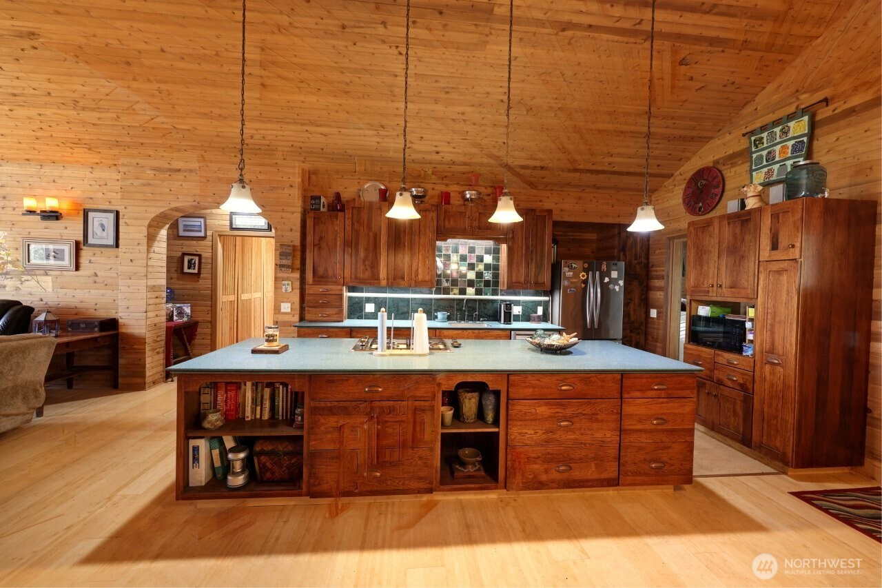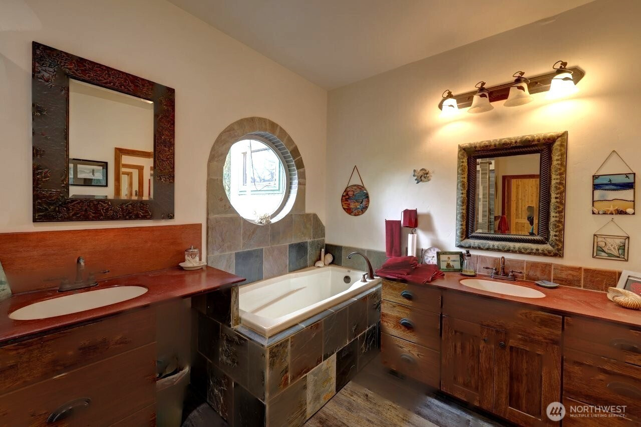 (650)533-3259Nestled amongst the trees on beautiful Willapa Bay, a truly unique craftsman style home on almost 5 acres of wooded property, nearly 500 feet of bayview. Owner built home is a testament to his craftsmanship & design. Stepping into this beautifully designed home, you are surrounded by the warmth of wood finishes throughout. The great room from front door to bayside windows provides dramatic views w/ its 13+ feet cathedral ceiling at its peak. Sharing the space, a complete chef‘s kitchen w/ 13' island, propane cooktop & oven. Countertop, easy care, solid surface. Kitchen well planned w/ storage & cabinetry that compliments Great Room design. The propane stove in the Great Room adds warmth & ambience. Split plan for BD, primary on 1 side & 2 guest suites each w/ own three-quarter bath on other side. The 2nd BD has its own private porch 6’ x 14’ /w a bay view. Primary bath has large shower, soaking tub, 2 separate sinks, water closet & large walk-in closet. The BD itself looks out on bay w/ own private deck. Off the kitchen is laundry-utility & raised office w/ forest view. Off of LV is 20’ x 20’ bayside deck. Attached 2 car garage 22.5’ x 22’ & large shop-multi use 3rd bay 20’ x 40’ w/ 9’ x 10’ door. The property has metal outbuilding 24‘ x 36‘ w/ 2-9’x 10’ doors for large equipment storage. Entrance to property, note fenced & gated entry & on bayside is a completely fenced yard. This home & property is a rare find, especially on Willapa Bay & the Pacific Ocean is minutes away.