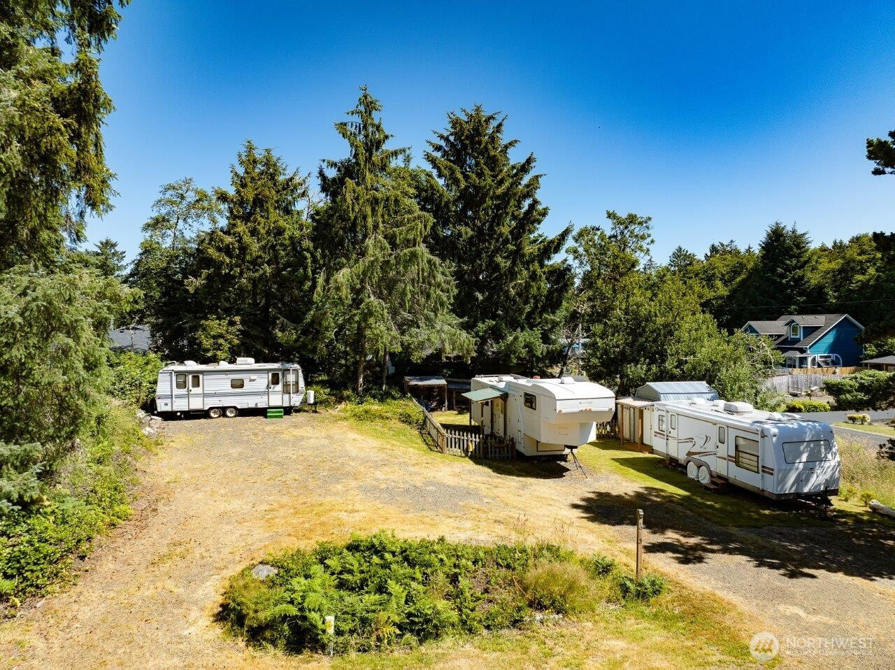 (650)533-3259PACIFIC OCEAN & WILLAPA BAY nearby, this double corner lot property w/ a 3-bdrm septic & all utilities, perfect get away or adding a house. Spacecraft 40ft 5th wheel w/ a full bath is an added bonus. Outdoor cleaning station, kitchen & storage shed all there for your fish, crabs & clams you will catch. Fenced in back and side yard for your furry companions. Backyard is large with covered wood storage for evenings around the built-in fire pit. Water included in Surfside HOA dues along w/ trash compactor & dump station. Golf course nearby. Fishing, clamming, crabbing, surf fishing on the ocean, oysters & butter clams at Willapa Bay all minutes away. Shopping & restaurants just a short drive. It is here to enjoy-beach living.
