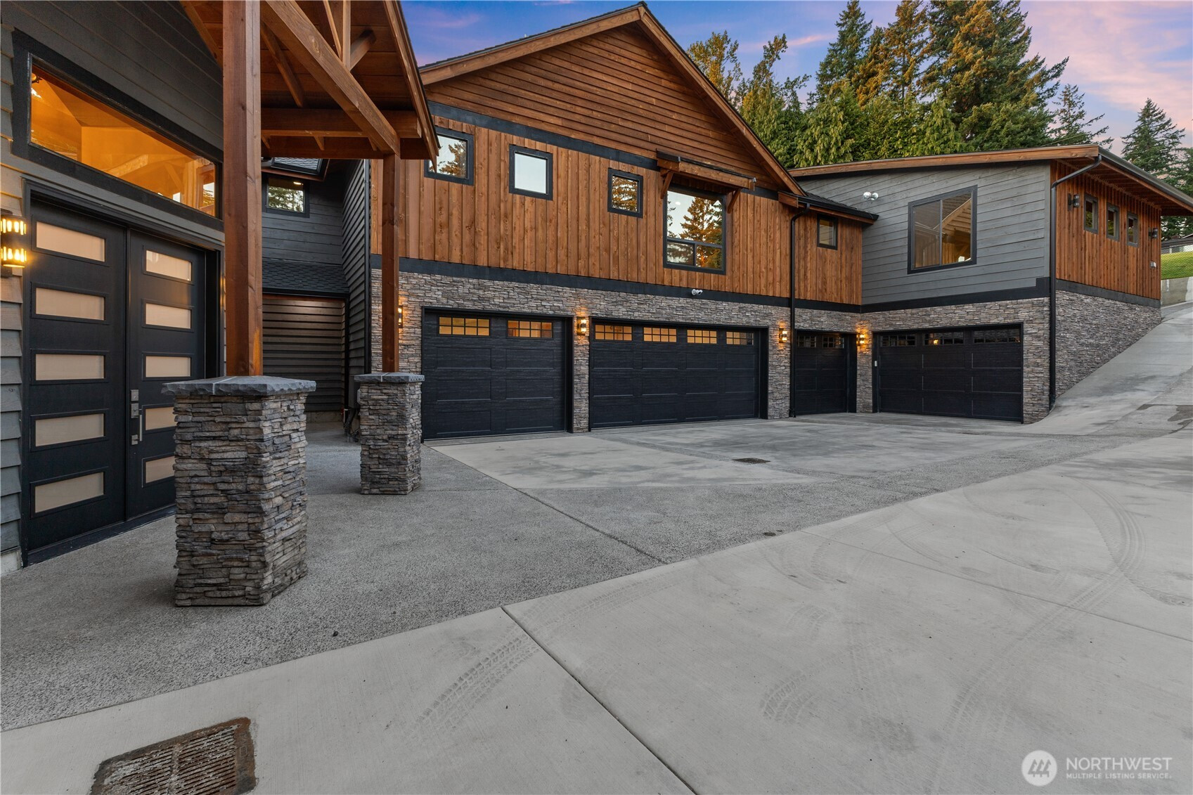 (650)533-3259Completed in 2025, this exceptional custom no-bank waterfront estate on Lake Tapps redefines luxury living. Thoughtfully designed for both comfort and entertaining, the home features two full kitchens (main & lower level), two spacious family rooms, two bonus rooms and private elevator. Gourmet kitchens showcase custom cabinetry, premium stainless steel appliances, pantry and breakfast bar. Every bedroom is a private suite, complete with WIC, TV, ceiling fan, and walk-in tile shower. A dramatic 20’ open-beam entry makes a stunning first impression. Designed for convenience, the home includes laundry on each level and generous mudroom off garage with extensive built-in storage. Quality craftmanship is evident throughout with zoned heating and AC, integrated security, sprinkler system and solid wood millwork. Car enthusiasts and hobbyists will appreciate garage space for up to 14 vehicles, plus lower garage for water toys. Outdoor living shines with covered patio and expansive stamped concrete deck - perfect for soaking in the lakefront setting. Unwind in your private custom cinema-style movie theater with all the bells and whistles or gather in the main family room featuring striking stone gas fireplace with live-edge mantle and attached TV, leading to oversized sliders with breathtaking lake views. Mirror-glazed windows and rough-cut cedar siding complete the home's distinctive NW aesthetic. Extra unfinished room and dedicated office- truly a one-of-a-kind waterfront retreat!