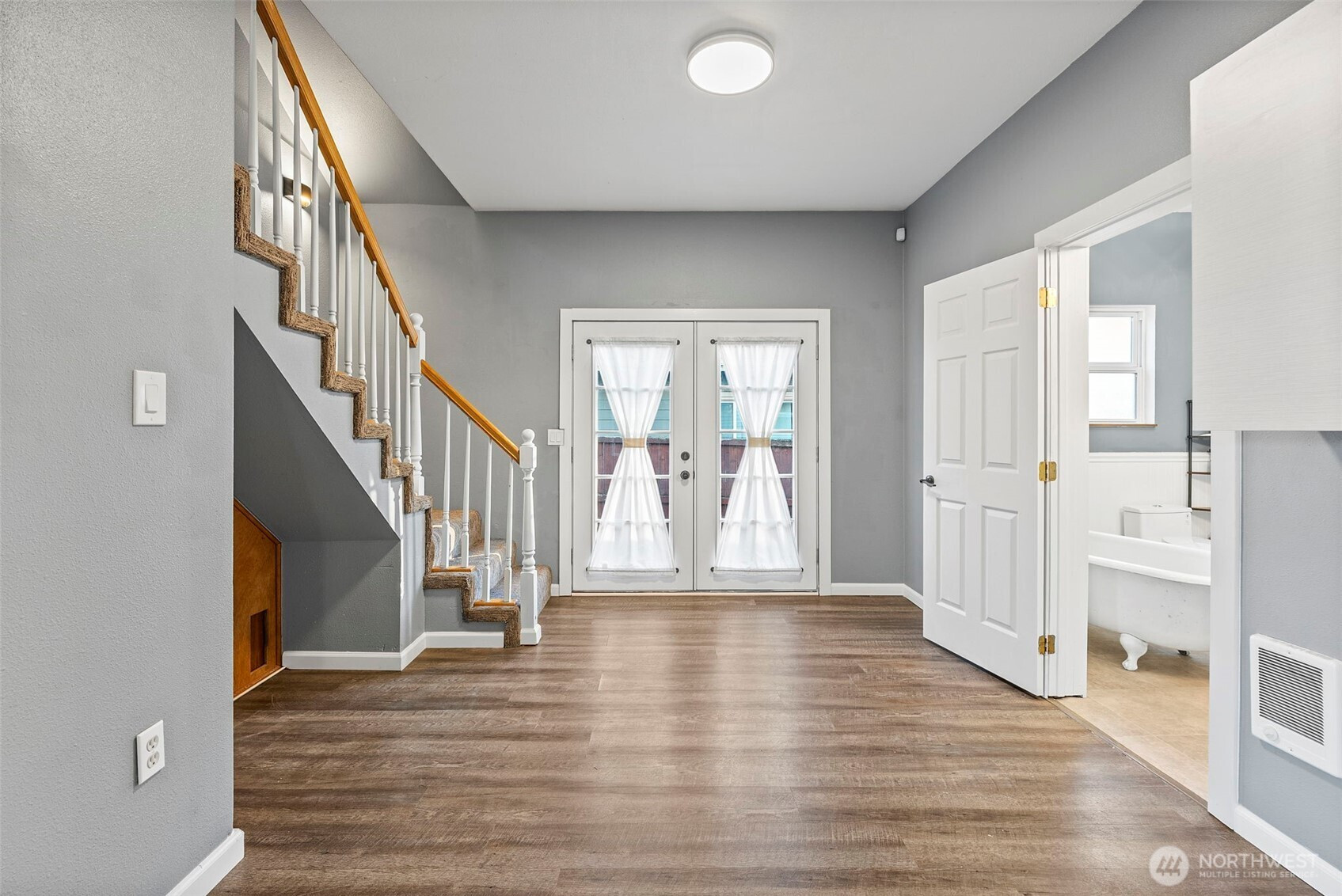 (650)533-3259Step into timeless charm and modern comfort in this beautifully updated 1921 Craftsman, just a short walk from adorable downtown Eatonville. This home blends historic character with thoughtful updates, offering three bedrooms plus a bonus room that can easily serve as a 4th bed. Main floor features an open-concept kitchen and living room, creating an inviting space for everyday living and entertaining. French doors lead to a spacious deck overlooking the fully fenced backyard—perfect for gatherings, play, or quiet evenings outdoors. Full bath w/ a classic clawfoot tub completes the downstairs. Upstairs, you’ll find two bedrooms with closets, a generous bonus room & a beautiful remodeled ¾ bath. Backyard is ready for spring & summer enjoyment, complete with a firepit for cozy nights under the stars. This charming Craftsman offers space, character, and walkability in one delightful package.