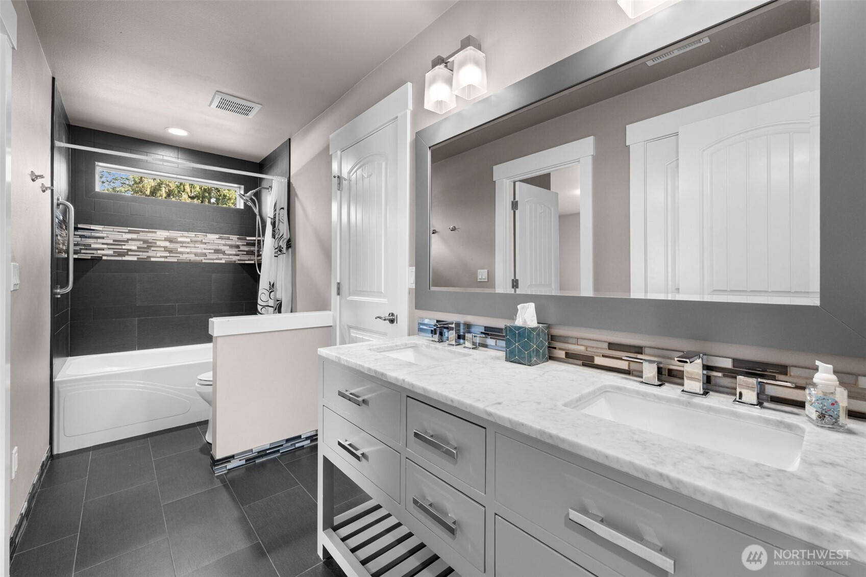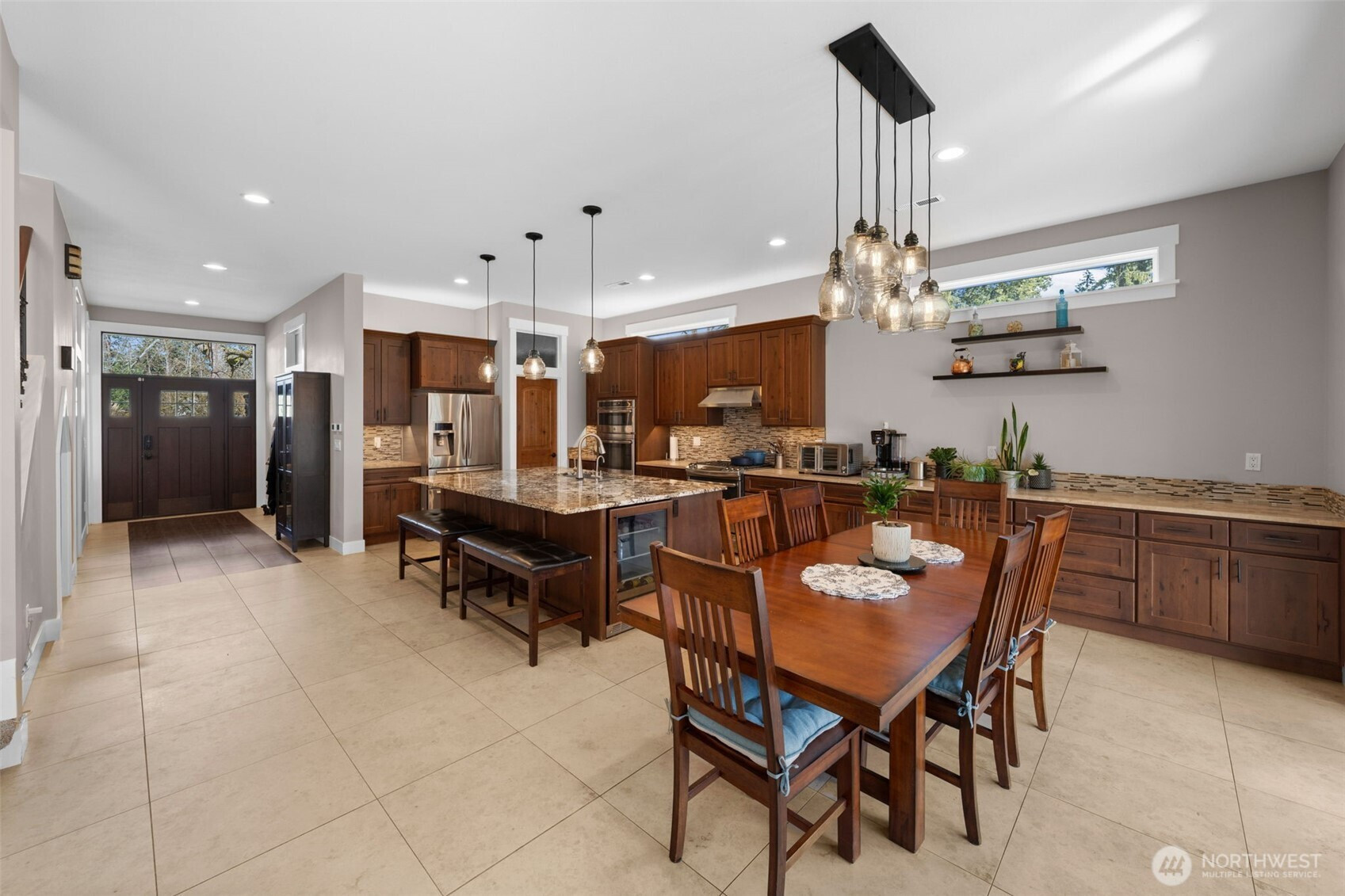 (650)533-3259Private gated estate in Clover Creek with thoughtful upgrades and flexible living spaces. Set in a unique community known for its hobby farm feel, this home blends function and comfort with radiant in-floor heat, A/C, and a well-designed layout for everyday living and entertaining. The kitchen is built for hosting with a 5-burner propane range, dual ovens (including convection), wine fridge, oversized pantry, and long prep counter. Soft-close cabinetry, pull-out storage, and under-cabinet lighting add practical efficiency. Main floor includes a dedicated office with built-ins, playroom with loft, and open living area with surround sound and Ethernet wiring throughout. Upstairs offers a spacious primary suite with dual showerheads, heated towel warmer, skylit walk-in closet, plus a second ensuite bedroom and Jack-and-Jill bath. Convenient second-floor laundry with sink and storage. Outdoor space is fully fenced with an automatic gate, landscaped grounds, garden area, and multiple patios with covered tongue-and-groove ceilings. Enjoy a hot tub with retractable awning, outdoor speakers, lighting on timers, and a powered playhouse. 3-car garage with workshop space, tankless water heater, and abundant storage including walk-in attic access. Located on a private lot with convenient access to amenities in Puyallup and Tacoma while maintaining a more spacious, semi-rural setting.