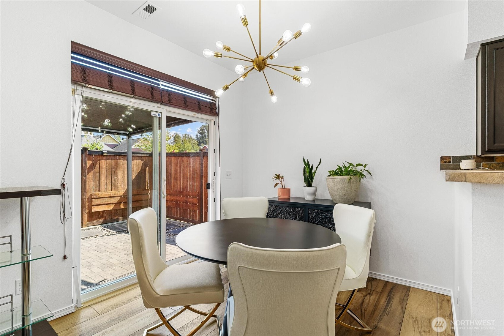 (650)533-3259Welcome to Your Serene Retreat in The Village Commons Community Nestled in a gated community with a playground, basketball court, and community center, this charming home blends comfort and style. Thoughtful upgrades include custom blinds, chic light fixtures, chandeliers, LED recessed lighting, fresh paint, a cozy fireplace, and luxury vinyl plank flooring. The main bath features a brand-new shower and California closet, plus a remodeled half bath. Outdoor living is a dream with a built-in gazebo, fire pit, and freshly stained fence, while the exterior will soon be painted by the HOA. All appliances, A/C units, and a new water heater are included, along with a spacious two-car garage. Conveniently close to I-5, 167, 512. Don’t miss out!