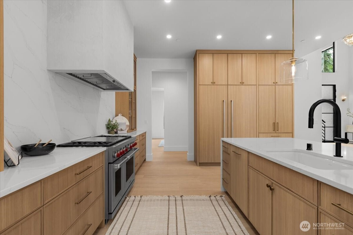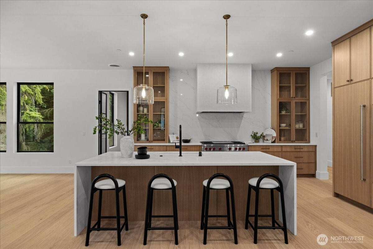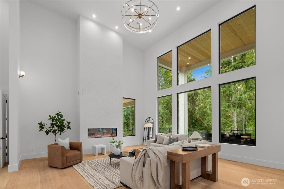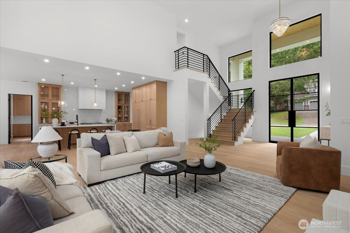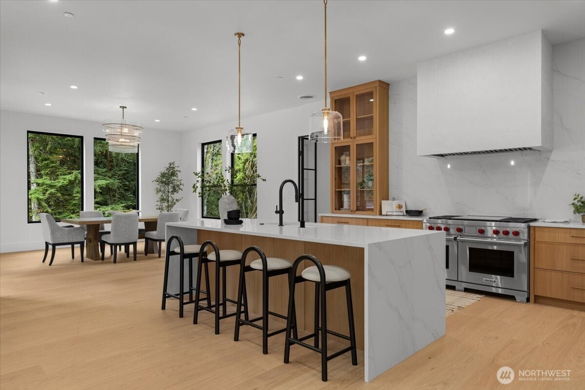 (650)533-3259Luxury new construction in Canterwood Country Club. The grand entry opens to a soaring 20-ft ceiling living room with wide-plank oak floors, plaster fireplace, and oversized picture windows. Chef’s kitchen showcases a 9-ft waterfall island, Sub-Zero and Wolf appliances, plus a second prep kitchen with high-end appliances and Gaggenau wine fridge. Main-floor primary suite offers vaulted ceilings, steam shower, spa bath, walk-in closet, and private deck. Upstairs includes three bedrooms, one serving as a second primary suite with private deck. The lower level adds 2,000 sq. ft. with full kitchen, private entry, and covered patio. The .47 acre lot backs to a protected green space. Enjoy Canterwood’s gated golf, clubhouse, pool, and amenities.