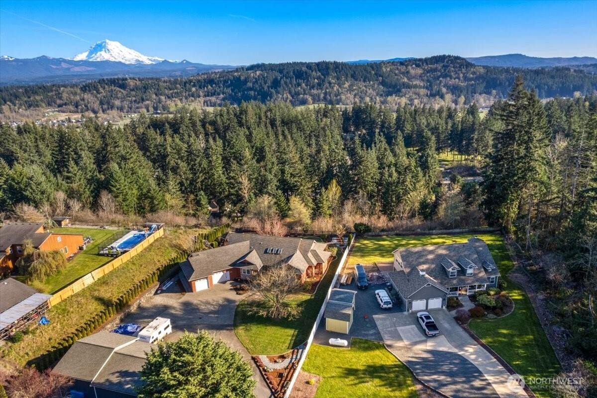 (650)533-3259Experience the pinnacle of Pacific Northwest living in this gorgeous, custom, 2,800 sq ft, 3 bed, 2.75 bath RAMBLER on a picturesque 1.24-acre estate. Breathtaking mountain views provide a serene backdrop to a home designed with attention to detail and modern comfort. Step inside to hardwood flooring, living room with striking dimensional accent wall, kitchen boasts a chef’s baking center and cozy gas fireplace, making it a perfect hub for morning coffee or holiday gatherings. Main bath updated w/exquisite boutique ceramic tiles. Oversized utility room offers incredible flexibility. Could be used as a home office, a hobby room, or partition for another bedroom. Insulated interior walls. For year-round comfort and efficiency, the home features a brand-new oil heat pump and furnace (installed in 2026). Exterior is an entertainer’s dream. Relax on the back deck, w/built-in sunshade and fan, or stroll over to the adorable gazebo. The soothing sounds of the custom waterfall feature enhance the park-like atmosphere of this pristine acreage. For the hobbyist or collector, the property features a MASSIVE 27’x60’ three-bay shop built on a solid foundation, featuring a 12-foot high door and a separate storage room. Attached garage has been upgraded with high-end epoxy flooring. Home is pre-wired for generator (ready for panel connection), ensuring you are never left in the dark. Conveniently located near trails and amenities. Do not let this opportunity pass you by!