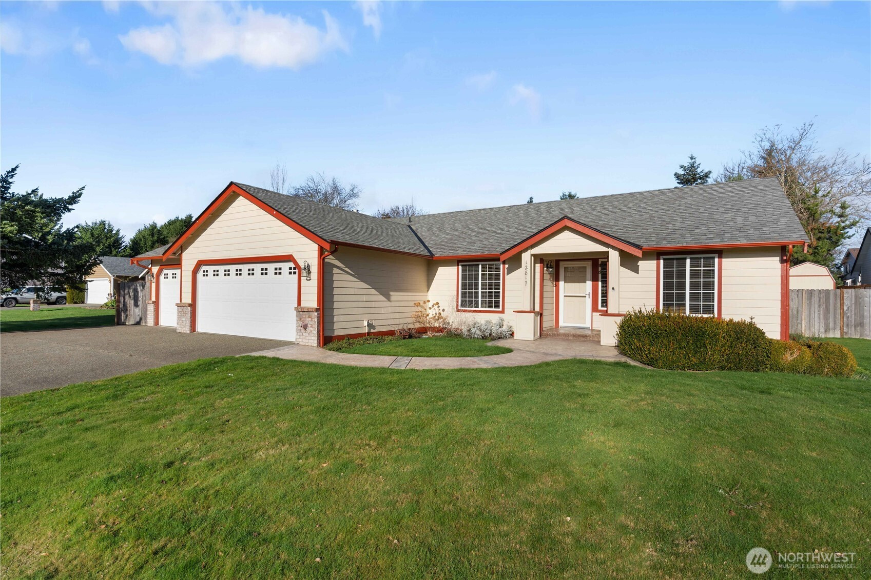 (650)533-3259Tucked away on a quiet cul-de-sac, this charming one-story Craftsman offers comfortable living on an expansive, level lot. Inside, enjoy an open and functional layout with 3 bedrooms, including a primary suite with private bath and great sized closet. The kitchen features ample storage with large pantry, useful peninsula with bar seating, additional dining space, and an open concept flowing into the main living areas. The living room is completed by a cozy fireplace + the family room with large picture window for all the PNW sunlight! Step outside to a fully fenced yard with garden space, patio, designated RV parking slab, sprinkler system, fire pit, & storage shed — perfect for entertaining or hobbies. Attached garage, central A/C, & wired for a generator as well. This tasteful home offers plenty of room to relax and grow - perfect for the first time buyer!