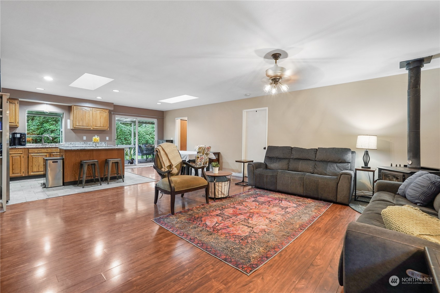 (650)533-3259Welcome to your new-to-you rambler on over 1/3 of an acre located in Lake of the Woods community! Offering 3 bedrooms and 1 3/4 baths this functional layout offers open-concept living with a spacious kitchen & dining area. Step out back to the expansive covered porch, fully fenced backyard, fire pit, and stocked woodshed. Easily add new paint and install already purchased LVP floors in the primary to make this home yours! Incredible opportunity to add your own touches to this spectacular home.