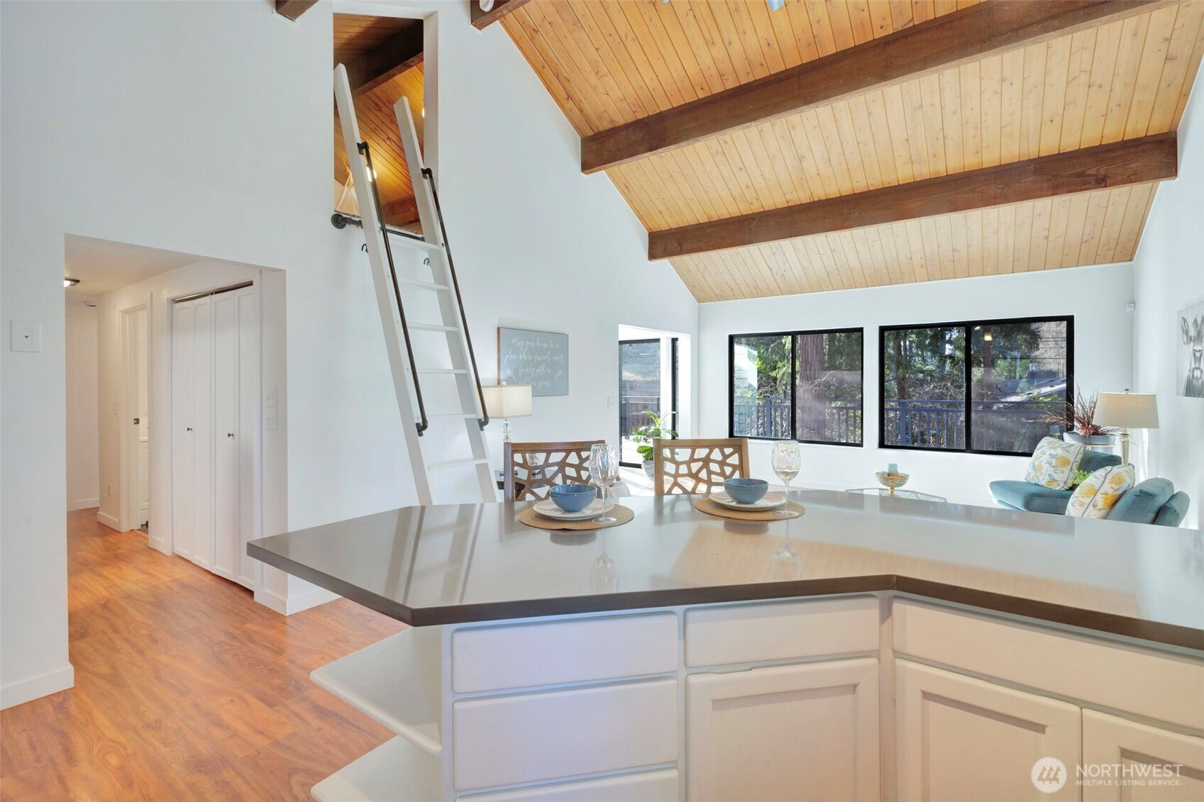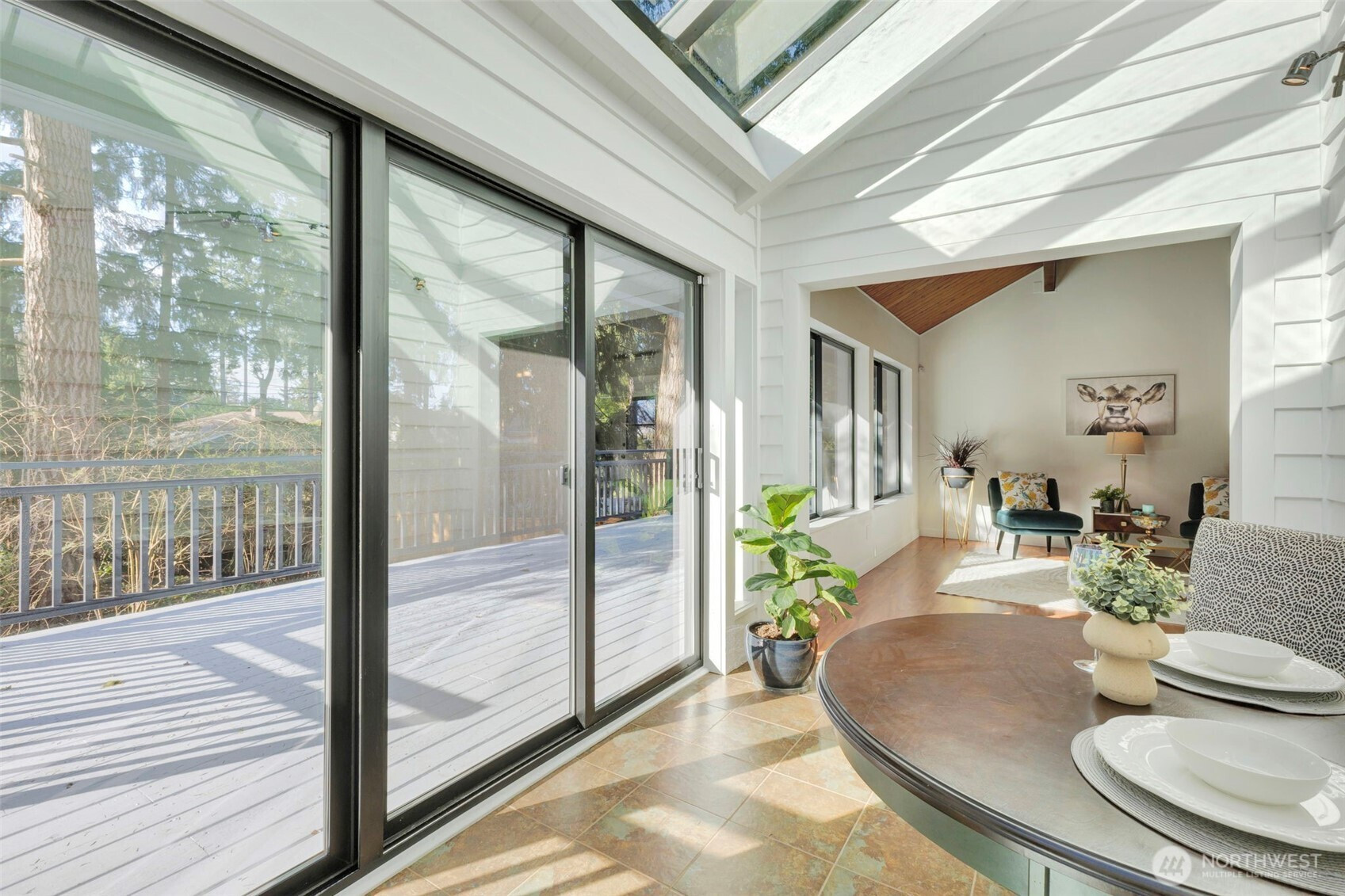 (650)533-3259Welcome home! From the moment you arrive, the beautifully manicured lawn and inviting entry set the tone for this Northwest-inspired retreat. Step inside to soaring ceilings accented with stunning solid wood millwork that reflects the character and charm of the Pacific Northwest. The open-concept living, dining, and kitchen spaces are designed for effortless entertaining, featuring laminate flooring, quartz countertops, and newer kitchen appliances.Just off the main living area, a light-filled sunroom with skylights creates the perfect flex space—ideal for relaxing year-round—with access to the wraparound porch and convenient connection to the primary suite. The primary retreat offers a spa-like soaking tub room and a unique connecting door to the second upstairs bedroom, perfect for an office, nursery, or additional sitting area.Downstairs, you’ll find a second bedroom, full bathroom, and spacious rec room—great for guests or multi-generational living. Additional highlights include a two-car garage with newer garage doors, a mini-split system for efficient comfort, and a 40-year roof installed in 1999.Enjoy a fully fenced, wooded backyard offering privacy and space to unwind—all with NO HOA. Located in desirable Fircrest, you’ll have access to a community pool, golf course, and country club amenities.A rare opportunity to enjoy comfort, character, and community all in one!