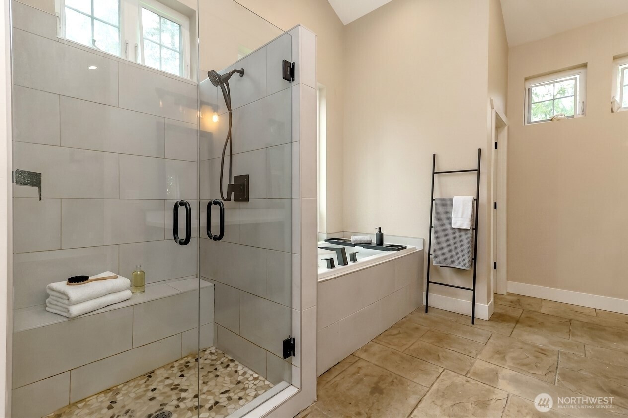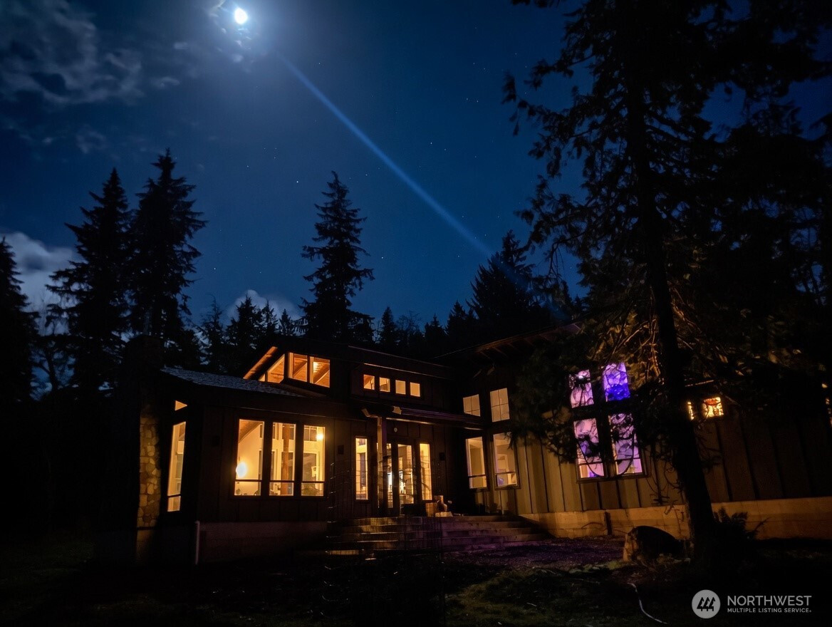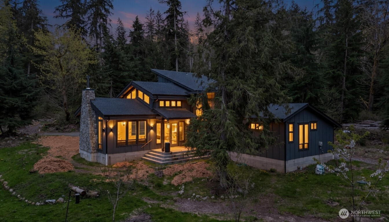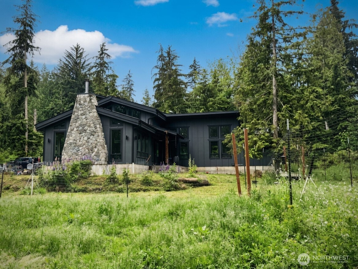 (650)533-3259Welcome to this exceptional 2021 custom-built NW Contemporary estate on 20 ac w/ South Prairie Creek frontage. Offering 3,258 sq ft, this thoughtfully designed home features 2 bdrms, 3 bths, flex space w/ built-in desk, ideal for home office or gaming. 5-bdrm septic design offers future expansion potential. The great rm & kitchen showcase soaring cathedral ceiling w/ exposed tongue-and-groove cedar, creating a warm yet dramatic living space. Custom stamped concrete floors w/ radiant heat runs throughout the main level. Chef’s kitchen is anchored by a 48" ZLINE propane range, complemented by butcher block counters & spacious island, perfect for entertaining. Primary suite offers a huge walk-in closet w/ stackable W/D, jetted soaking tub, & large walk-in shower, your private retreat. Laundry rm includes utility sink & side-by-side W/D. Upstairs features 3/4 bth & expansive loft, ideal for media, theater, music, hobby, or fitness space. Additional features include home sprinkler system, LED lighting throughout, & generator-ready wiring. Hardie board & batten siding for lasting beauty. Outdoors offers plenty of space for gardening, pets, and livestock, including goat pen w/ custom mural, tranquil spring-fed pond perfect for campfires, & ample space for entertaining. Sunbathe on your own beach, fish, or cool off in the creek on a warm summer day. Privacy, comfort, & NW beauty come together in this rare 20-ac sanctuary. Come experience it for yourself. Some photos virtually staged.