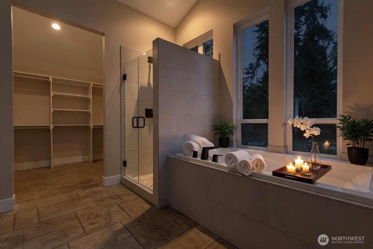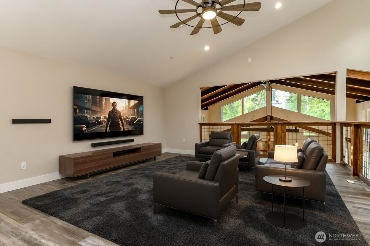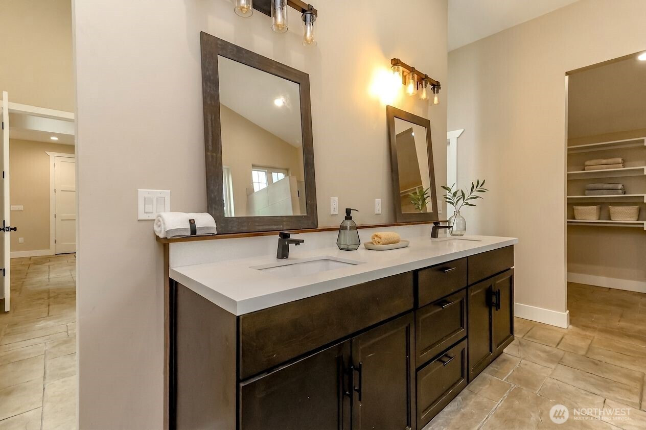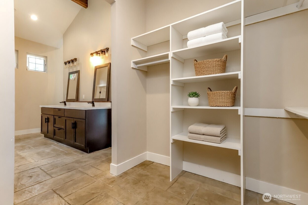 (650)533-3259Welcome to this exceptional 2021 custom-built NW Contemporary estate on 20 ac w/ South Prairie Creek frontage. Offering 3,258 sq ft, this thoughtfully designed home features 2 bdrms, 3 bths, flex space w/ built-in desk, ideal for home office or gaming. 5-bdrm septic design offers future expansion potential. The great rm & kitchen showcase soaring cathedral ceiling w/ exposed tongue-and-groove cedar, creating a warm yet dramatic living space. Custom stamped concrete floors w/ radiant heat runs throughout the main level. Chef’s kitchen is anchored by a 48" ZLINE propane range, complemented by butcher block counters & spacious island, perfect for entertaining. Primary suite offers a huge walk-in closet w/ stackable W/D, jetted soaking tub, & large walk-in shower, your private retreat. Laundry rm includes utility sink & side-by-side W/D. Upstairs features 3/4 bth & expansive loft, ideal for media, theater, music, hobby, or fitness space. Additional features include home sprinkler system, LED lighting throughout, & generator-ready wiring. Hardie board & batten siding for lasting beauty. Outdoors offers plenty of space for gardening, pets, and livestock, including goat pen w/ custom mural, tranquil spring-fed pond perfect for campfires, & ample space for entertaining. Sunbathe on your own beach, fish, or cool off in the creek on a warm summer day. Privacy, comfort, & NW beauty come together in this rare 20-ac sanctuary. Come experience it for yourself. Some photos virtually staged.