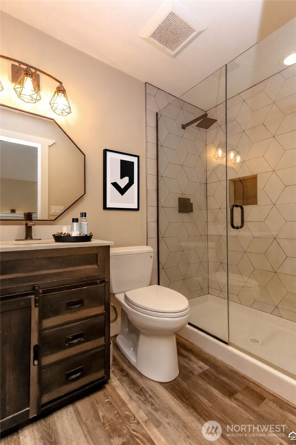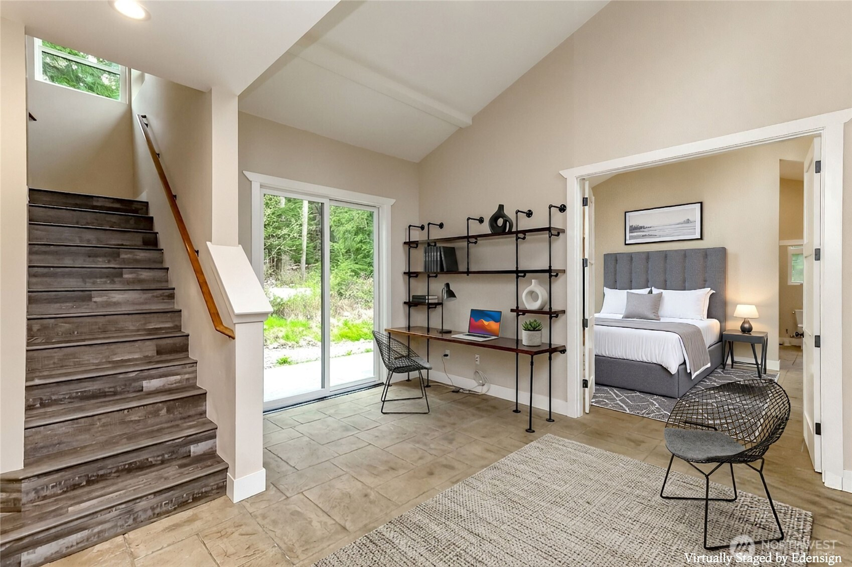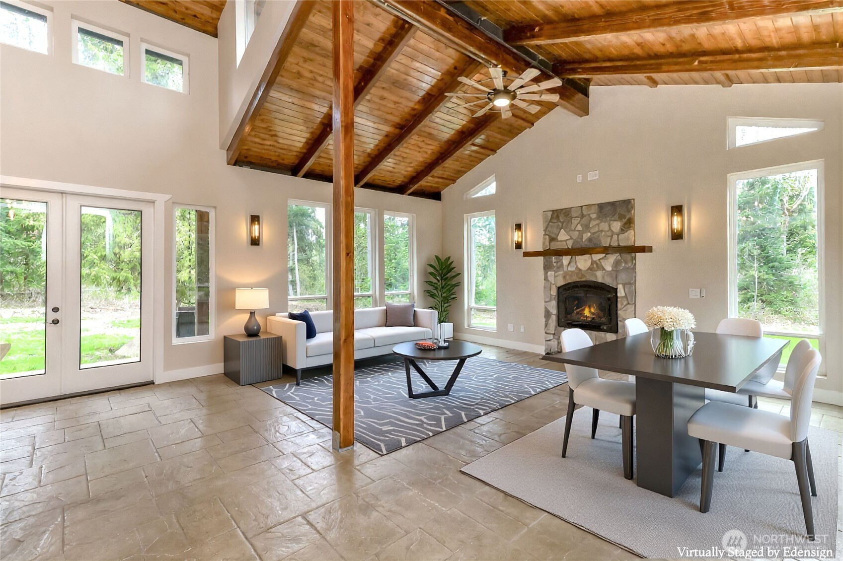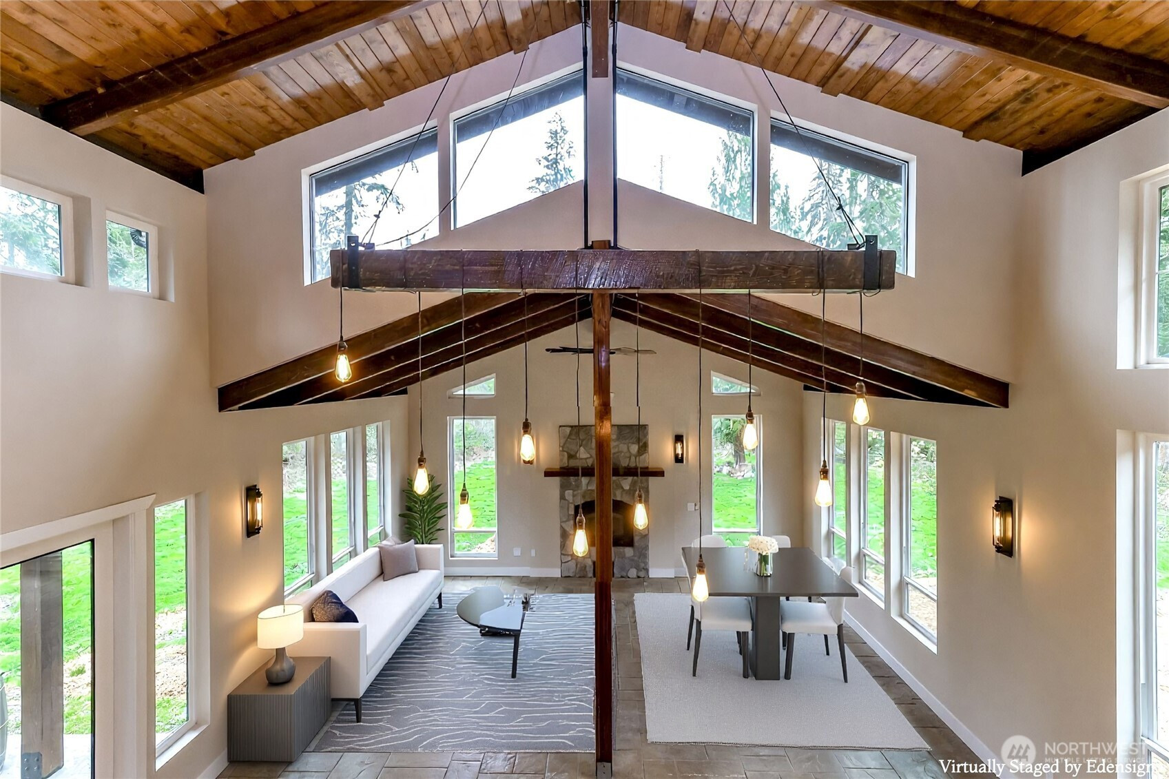 (650)533-3259Welcome to this exceptional 2021 custom-built NW Contemporary estate on 20 ac w/ South Prairie Creek frontage. Offering 3,258 sq ft, this thoughtfully designed home features 2 bdrms, 3 bths, flex space w/ built-in desk, ideal for home office or gaming. 5-bdrm septic design offers future expansion potential. The great rm & kitchen showcase soaring cathedral ceiling w/ exposed tongue-and-groove cedar, creating a warm yet dramatic living space. Custom stamped concrete floors w/ radiant heat runs throughout the main level. Chef’s kitchen is anchored by a 48" ZLINE propane range, complemented by butcher block counters & spacious island, perfect for entertaining. Primary suite offers a huge walk-in closet w/ stackable W/D, jetted soaking tub, & large walk-in shower, your private retreat. Laundry rm includes utility sink & side-by-side W/D. Upstairs features 3/4 bth & expansive loft, ideal for media, theater, music, hobby, or fitness space. Additional features include home sprinkler system, LED lighting throughout, & generator-ready wiring. Hardie board & batten siding for lasting beauty. Outdoors offers plenty of space for gardening, pets, and livestock, including goat pen w/ custom mural, tranquil spring-fed pond perfect for campfires, & ample space for entertaining. Sunbathe on your own beach, fish, or cool off in the creek on a warm summer day. Privacy, comfort, & NW beauty come together in this rare 20-ac sanctuary. Come experience it for yourself. Some photos virtually staged.